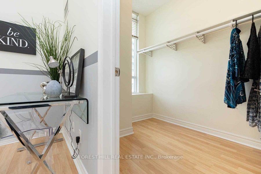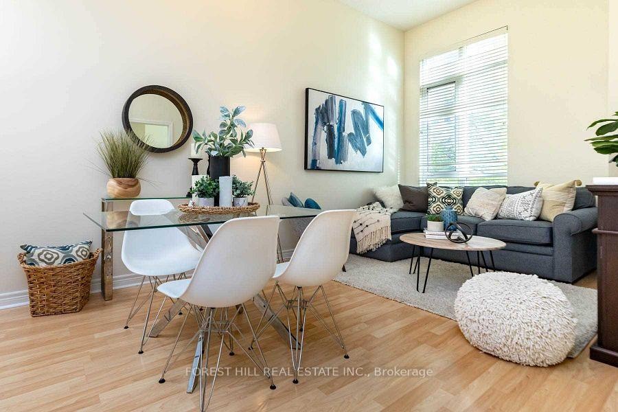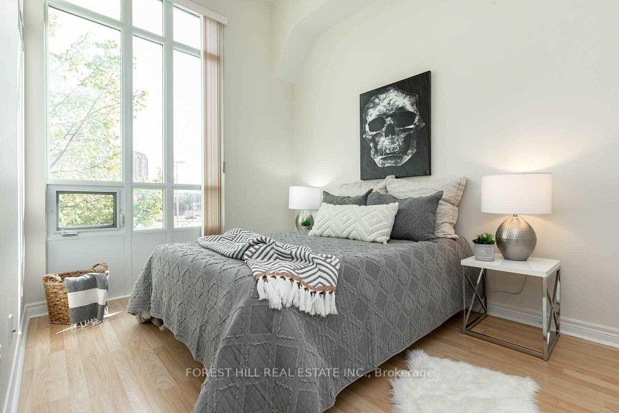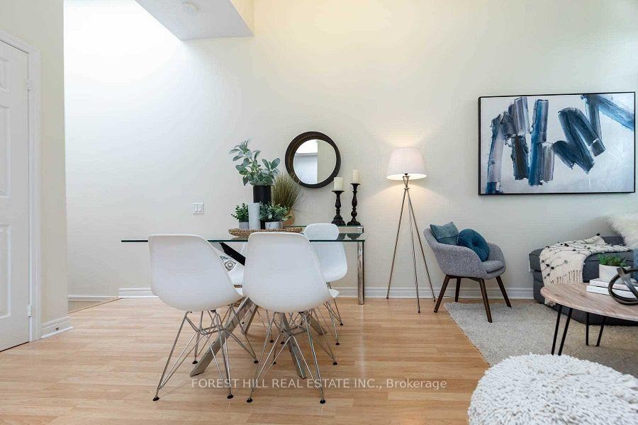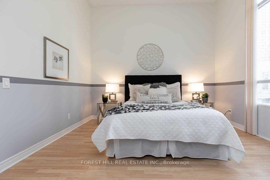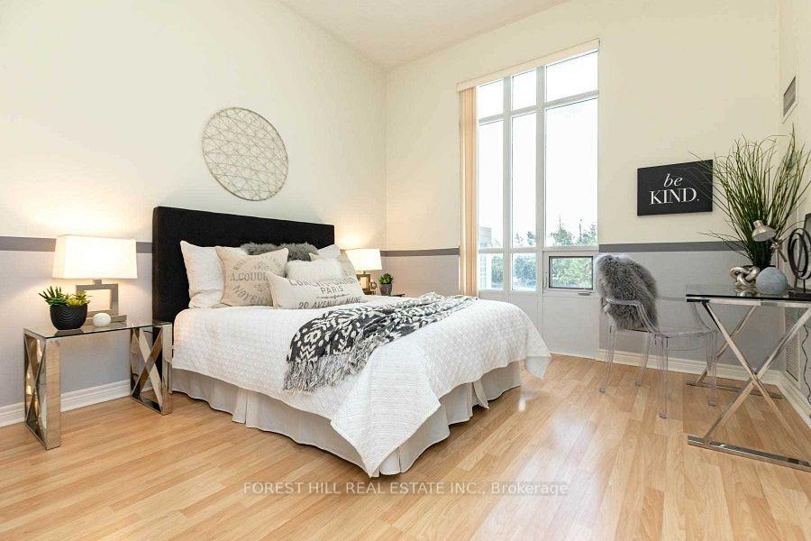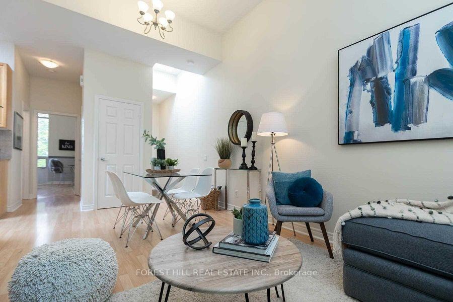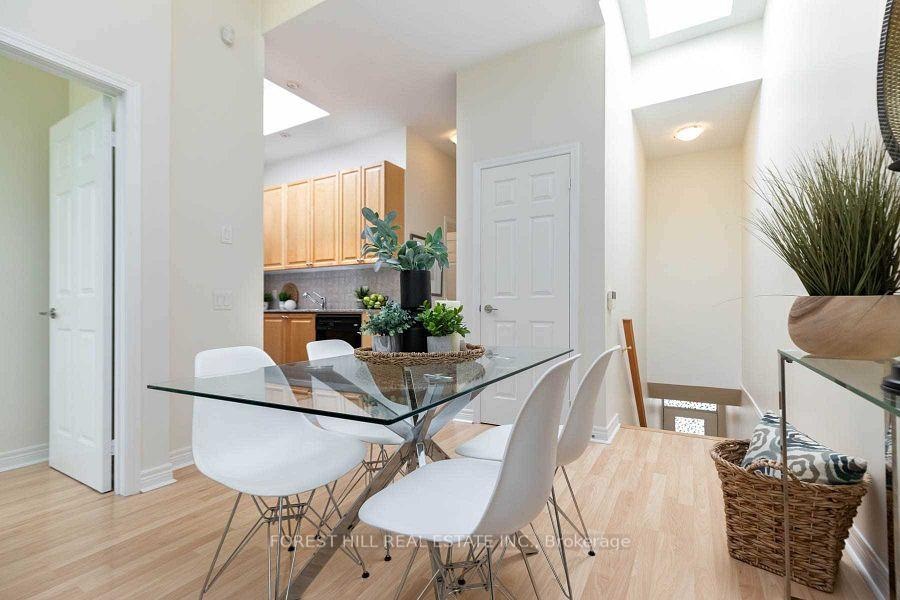 Discover this exceptionally rare stacked condo townhouse boasting direct entrance from the ground level, East/West exposure, two skylights, and soaring 11-foot ceilings. Expansive windows fill the home with natural light year-round, creating a warm and inviting atmosphere. The spacious primary suite features a walk-in closet with a window and a den area perfect as a serene retreat or a bright home office.Surrounded by lush gardens and mature trees, this home feels like a private oasis while keeping you connected to everything you need. Just 2 minutes to Hwy 401, a 5-minute stroll to the subway, and steps to vibrant theatres, dining, and shops. You'll fall in love even more when you see it in person! Building amenities include: 24-hr concierge, fitness centre, indoor pool, party room, and plentiful visitor parking right outside your unit door.