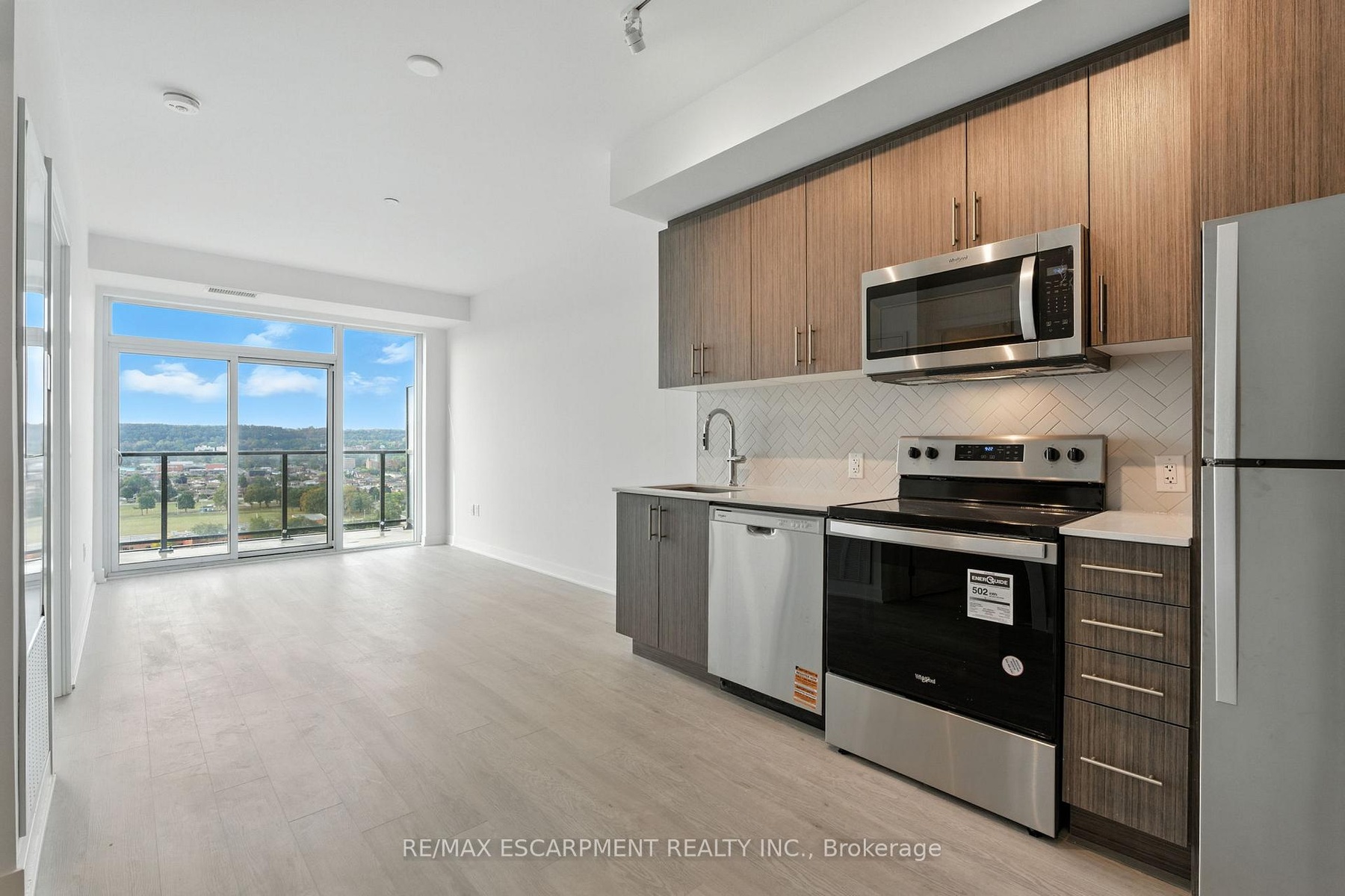 Be the first to live in this brand new south-facing penthouse-level 1 bedroom, 1 bathroom suite in an exciting new condo development in Stoney Creek. Thoughtfully designed with modern finishes throughout, this unit features an open-concept layout with sleek stainless steel appliances, stone countertops, and in-suite laundry for your convenience. From the top floor, enjoy panoramic views of the Niagara Escarpment, offering a serene and elevated living experience. Perfectly located with easy access to major highways, transit routes, and everyday amenities, making commuting or getting around the city a breeze. Please note: No parking or locker included.