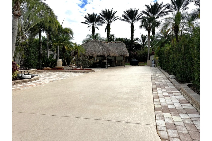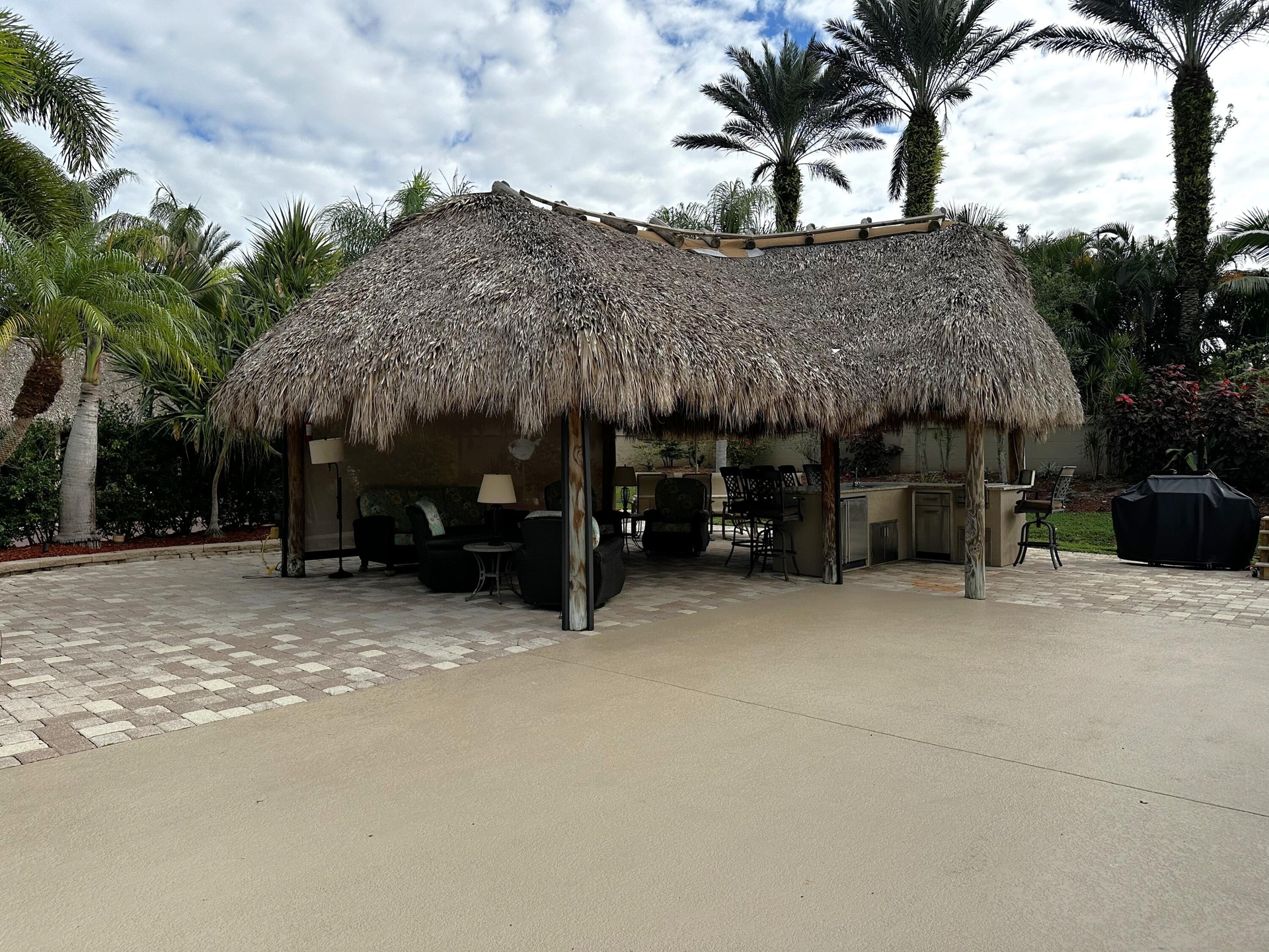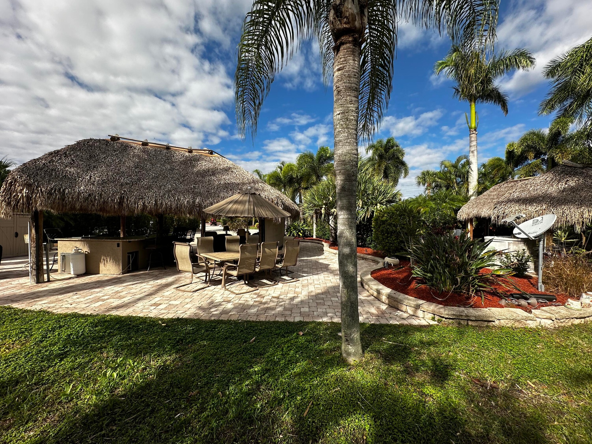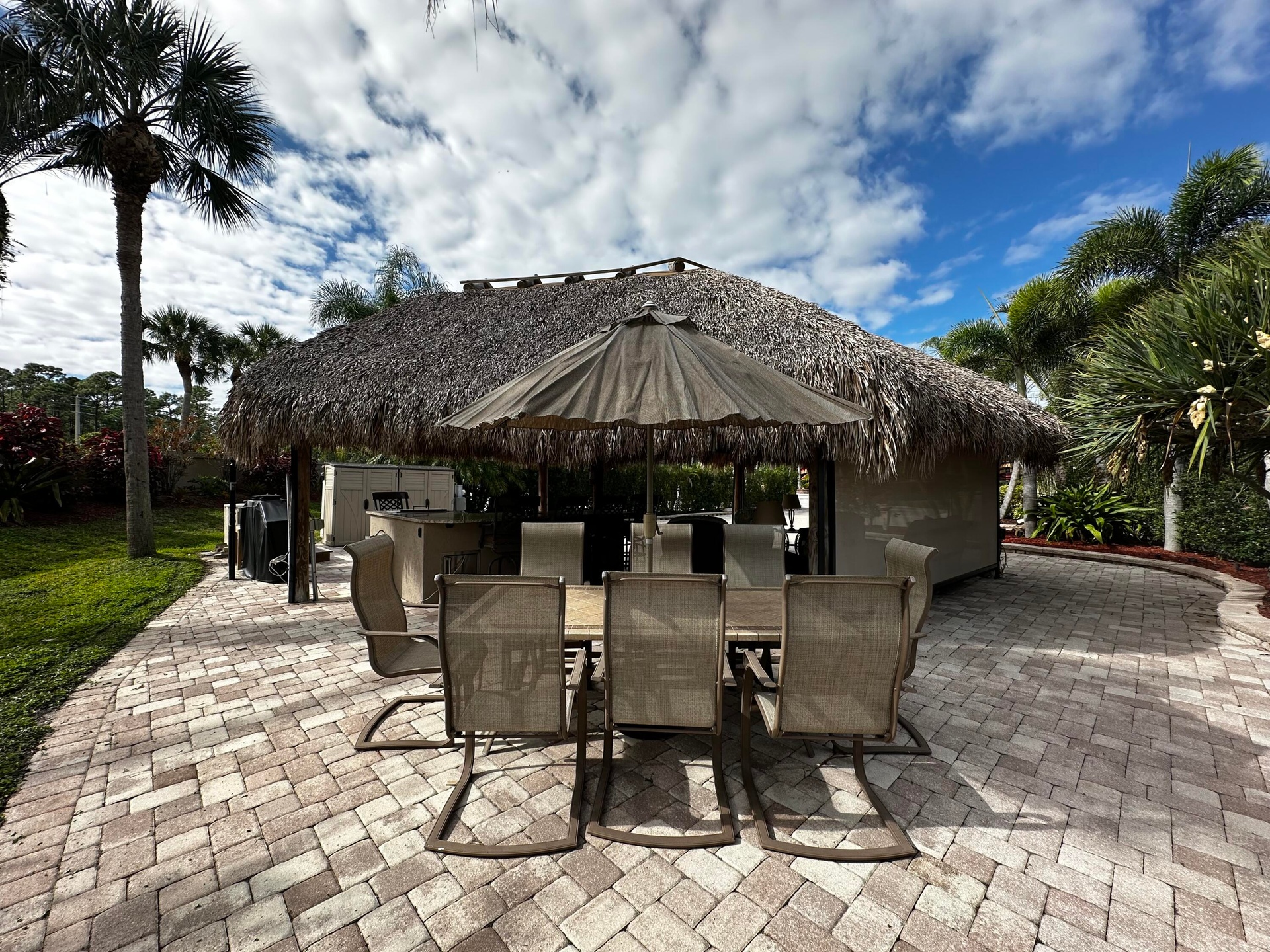 DescriptionWell priced! Large lot! Motorcoach Resort St Lucie West! One of the largest lots in Phase One with no RV lot opposing view! Easy back in access! Newer refreshed LARGE Tiki with new kitchen, granite and appliances including water heater. This large lot has a nice balance of concrete and pavers in all the entertaining areas! Nicely landscaped with thoughts for golf cart area parking and uncovered entertainment space! Electric screens help keep the elements out. Includes furnishings and storage units. Plenty of room for your 45' rig, vehicles and golf cart. Green space for pets. Currently in the rental program. Close to the main entrance, clubhouse and pool. ''Class A'' Paradise!