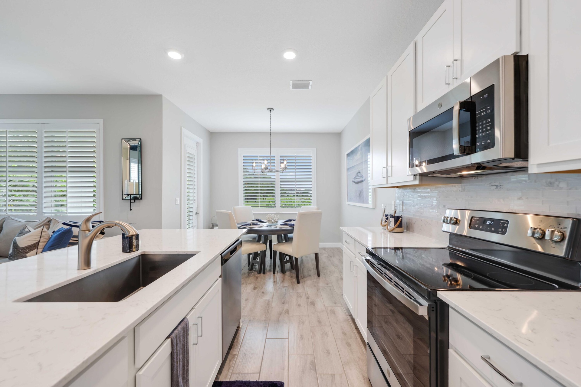 This premium end-unit townhome offers long lake views and the added privacy with a green space beside you, setting it apart from the rest. The first floor is designed for entertaining with a formal dining room, spacious living area, and an eat-in kitchen that all flow together. The gourmet kitchen features white cabinetry, quartz countertops, stainless steel appliances, a large island, upgraded backsplash, and modern lighting, and a pantry. Upgraded plantation shutters throughout make the perfect design appeal. The primary suite is a private retreat with lake views, a custom walk-in closet, and a bath with dual sinks. Two additional bedrooms and a versatile loft provide flexibility for work, play, or relaxation. This townhome is immaculate with all of the upgrades that you desire.