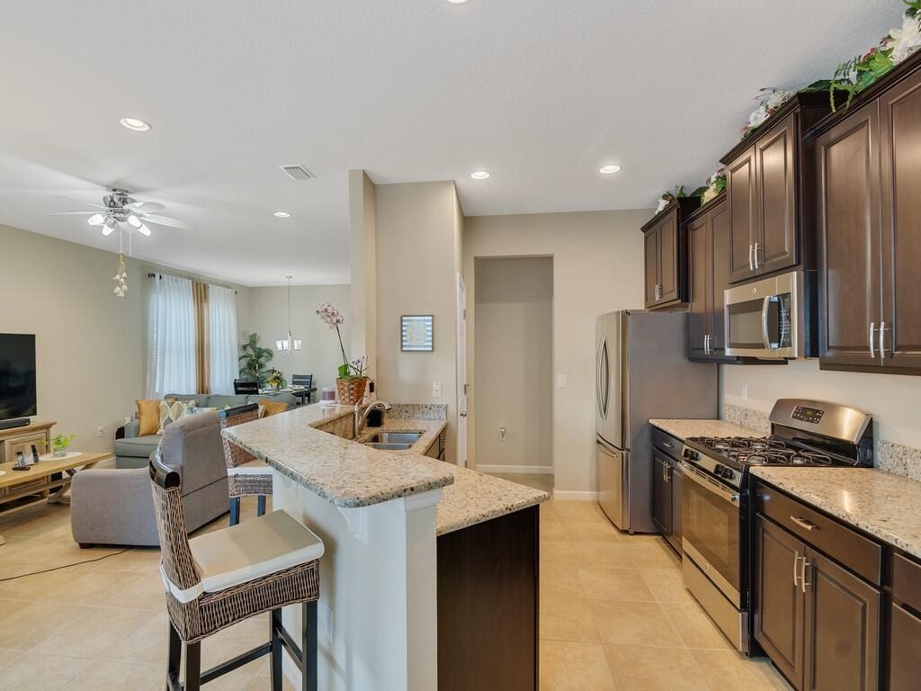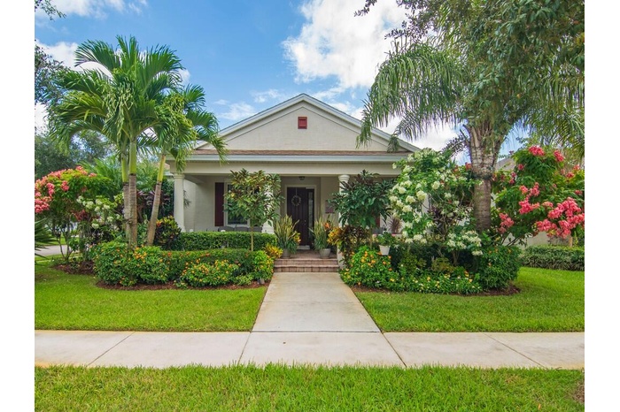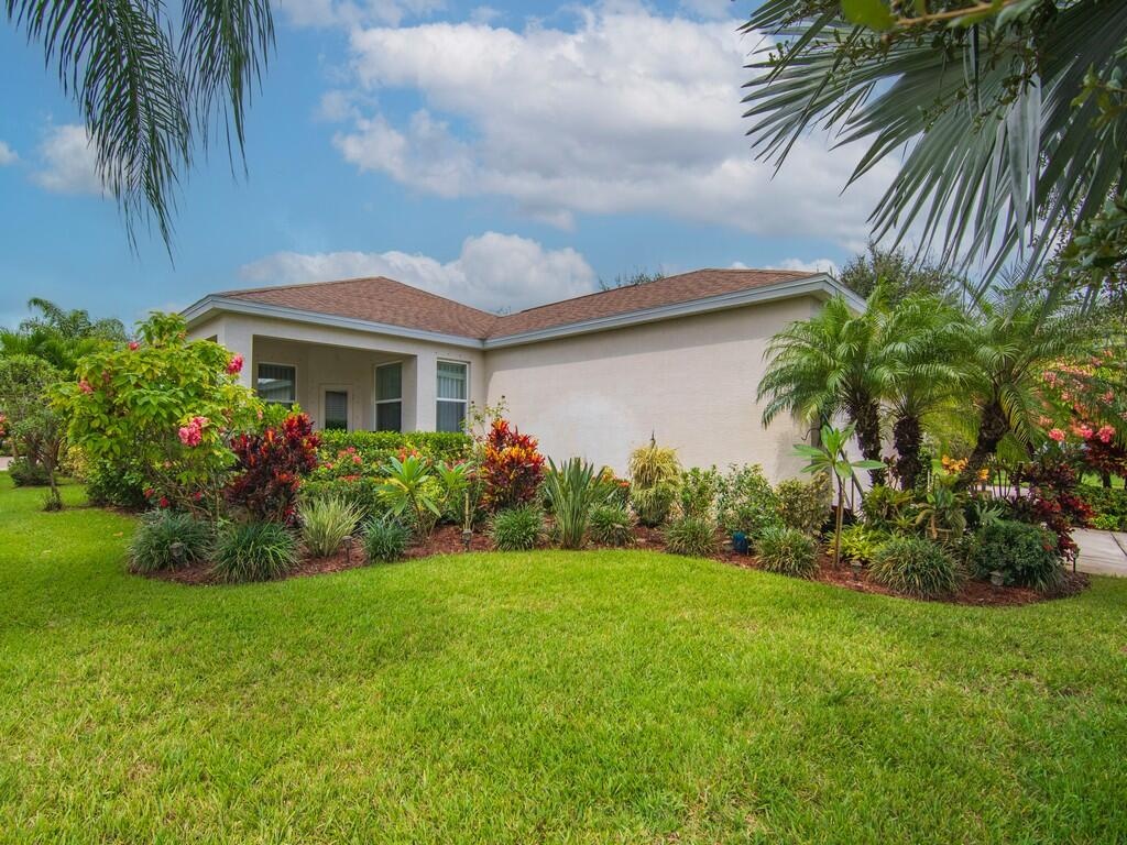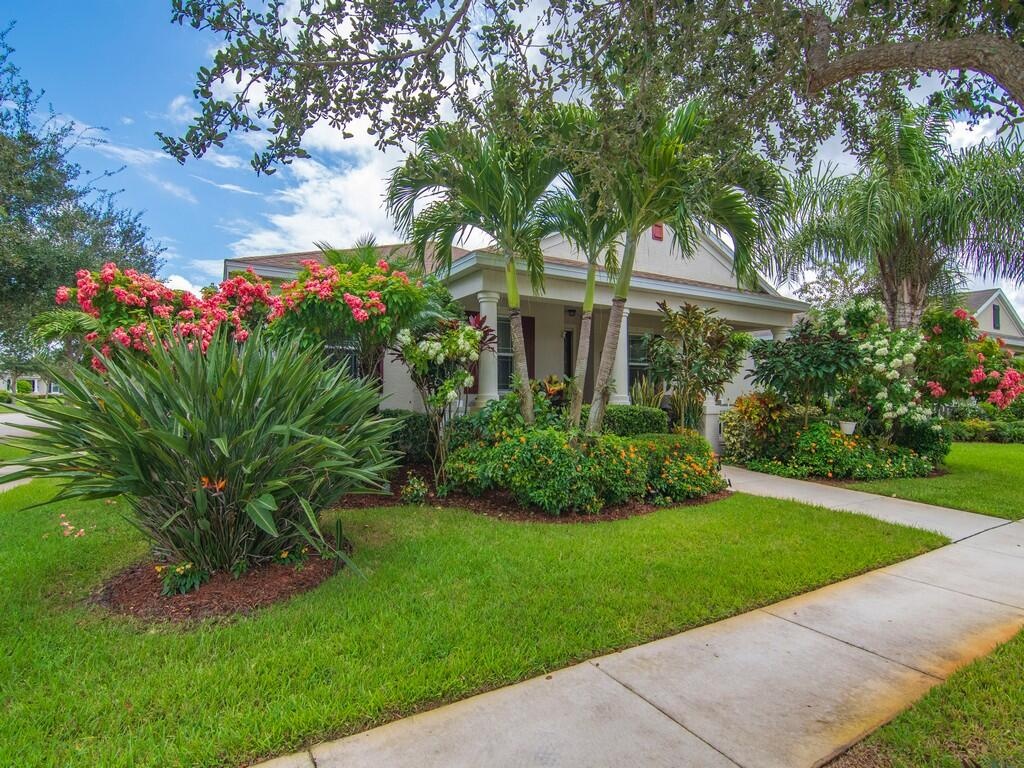 A gardener's dream! The landscaping is abundant and varied. Natural gas cooking, dryer and water heater. Popular Amalfi floor plan with 4 bedrooms, abundant storage and an oversized garage. All tile flooring throughout home with granite tops and stainless appliances in the open kitchen. Traditional neighborhood design community with county water, sewer and natural gas. Front porch living to wave to your neighbors and dog walkers stolling by. Social and golf memberships available. Low HOA fees include lawn maintenance and heated community pools. 5 minutes to shopping and restaurants and 15-20 minutes to the beach.