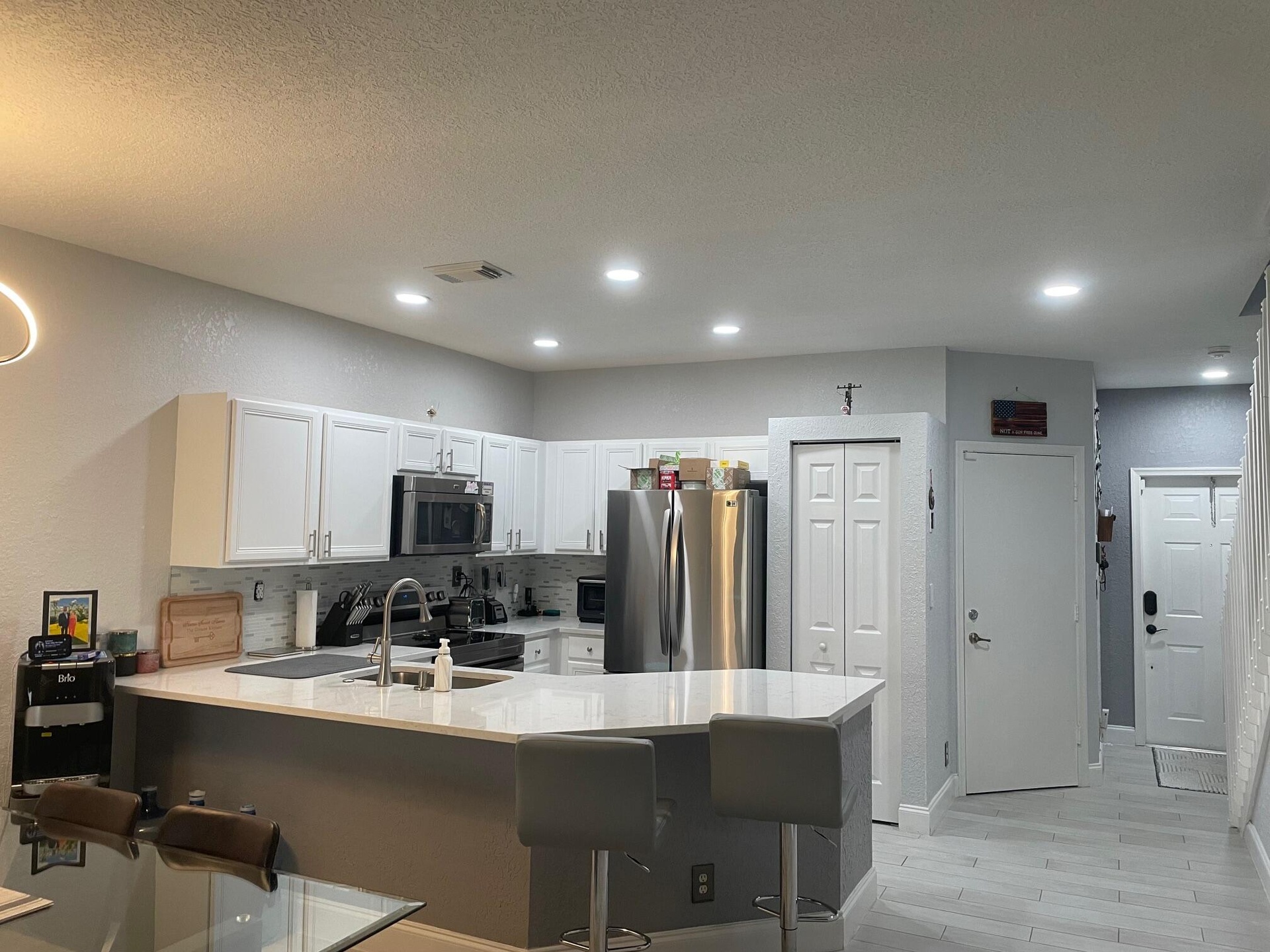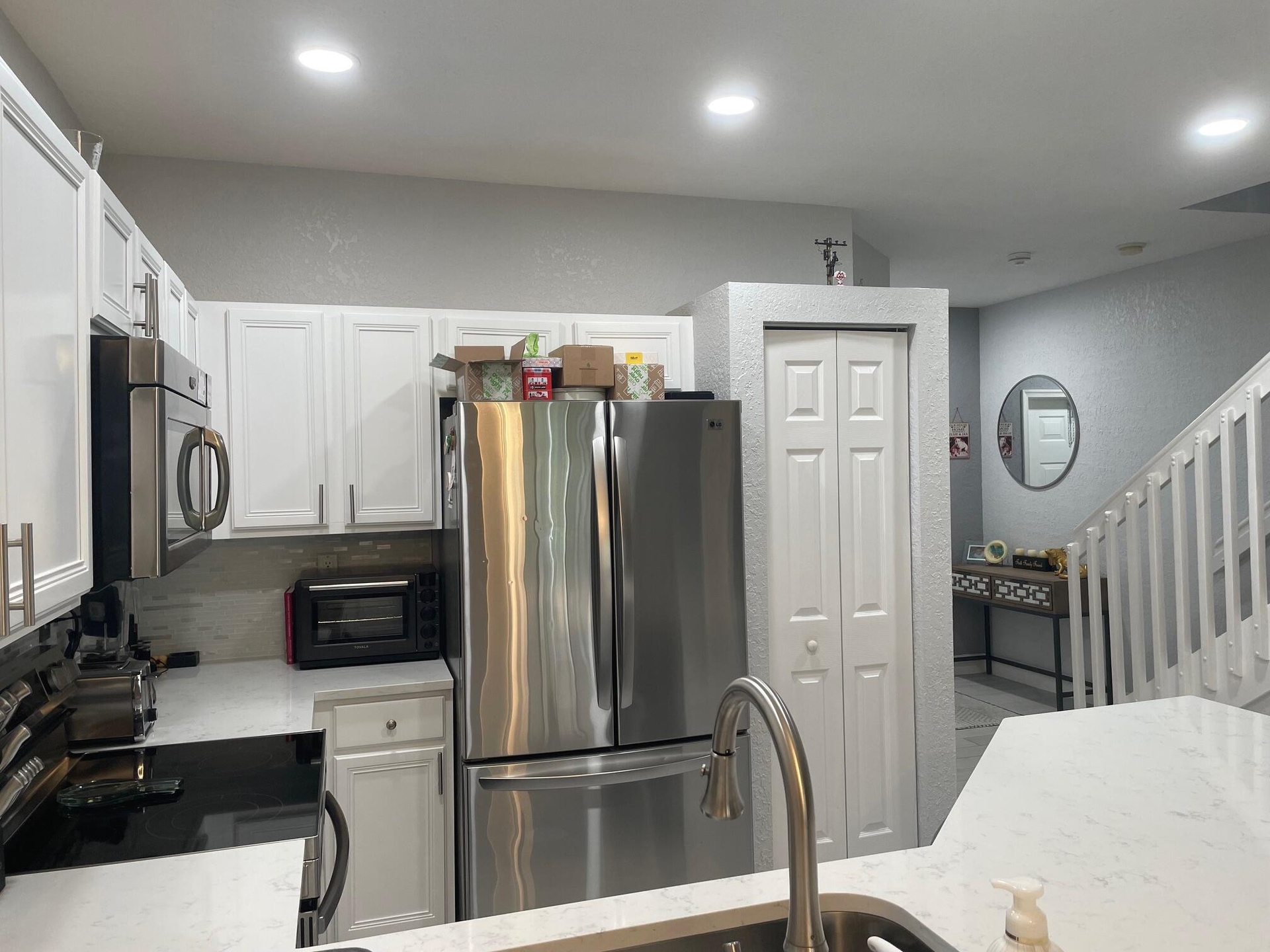 DescriptionMajor price reduction!! Such a beautiful, move-in ready all ages TH in Wellington. Hurricane protection. OPEN, light and bright, white kitchen with SS appliances with large countertop, great for entertaining and for bar stools. Pantry included. Coffee/liquor bar. Gorgeous tile floors on the first floor. Half bath on the first floor for guests. Newer luxury window treatments. Screened patio with storage. Second floor loft/home office/playroom/exercise room. Guest bedroom could have private bathroom. The primary suite is bright and large. White and bright bathroom, double sinks, shower with window. Pet friendly community. Low maintenance. Short walk to pool. Easy access to all that is Wellington.