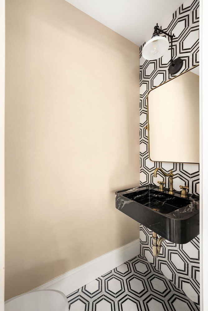 Ascend the dramatic stoop or enter through the garden-level entrance and be greeted by a formal vestibule dressed in checkerboard marble floors, hand-carved wainscoting, and designer wallpaper that evokes a quiet elegance.
