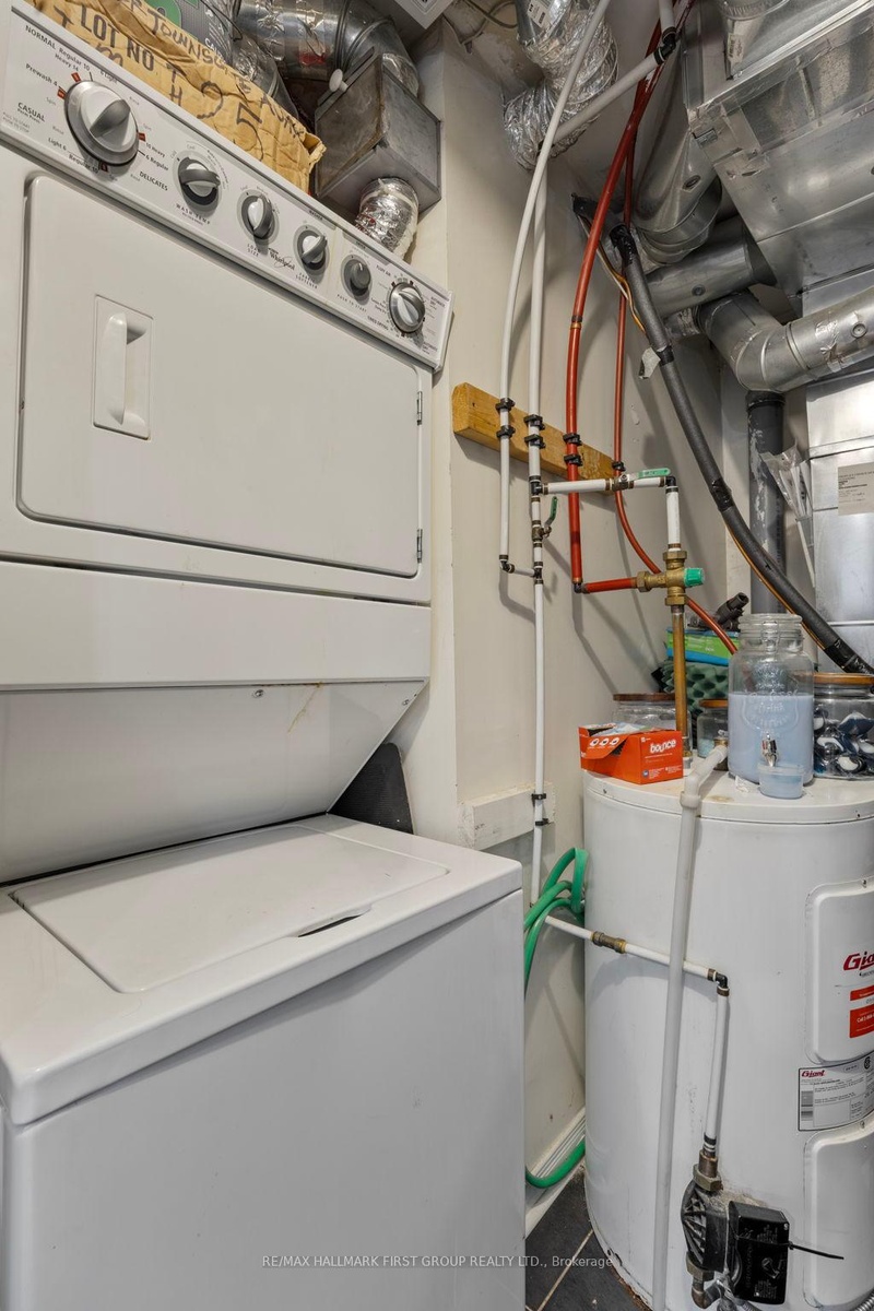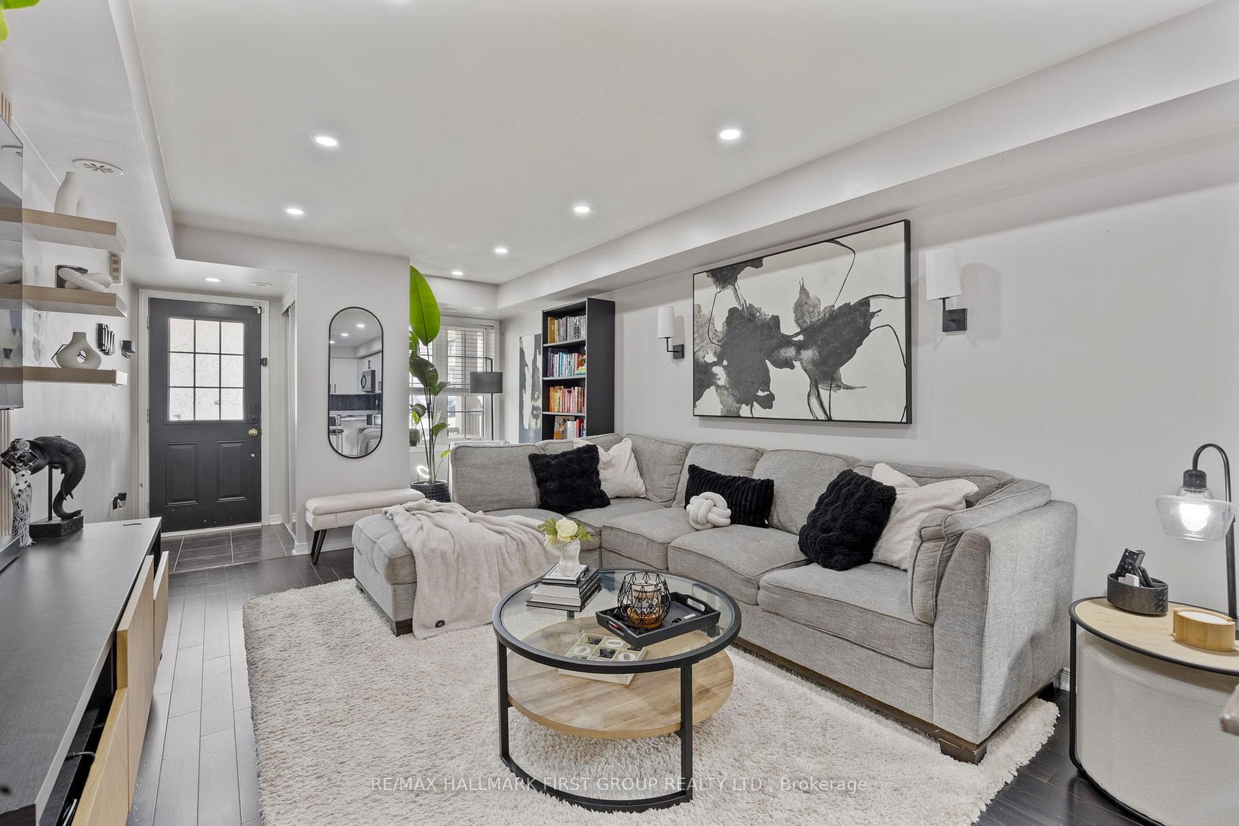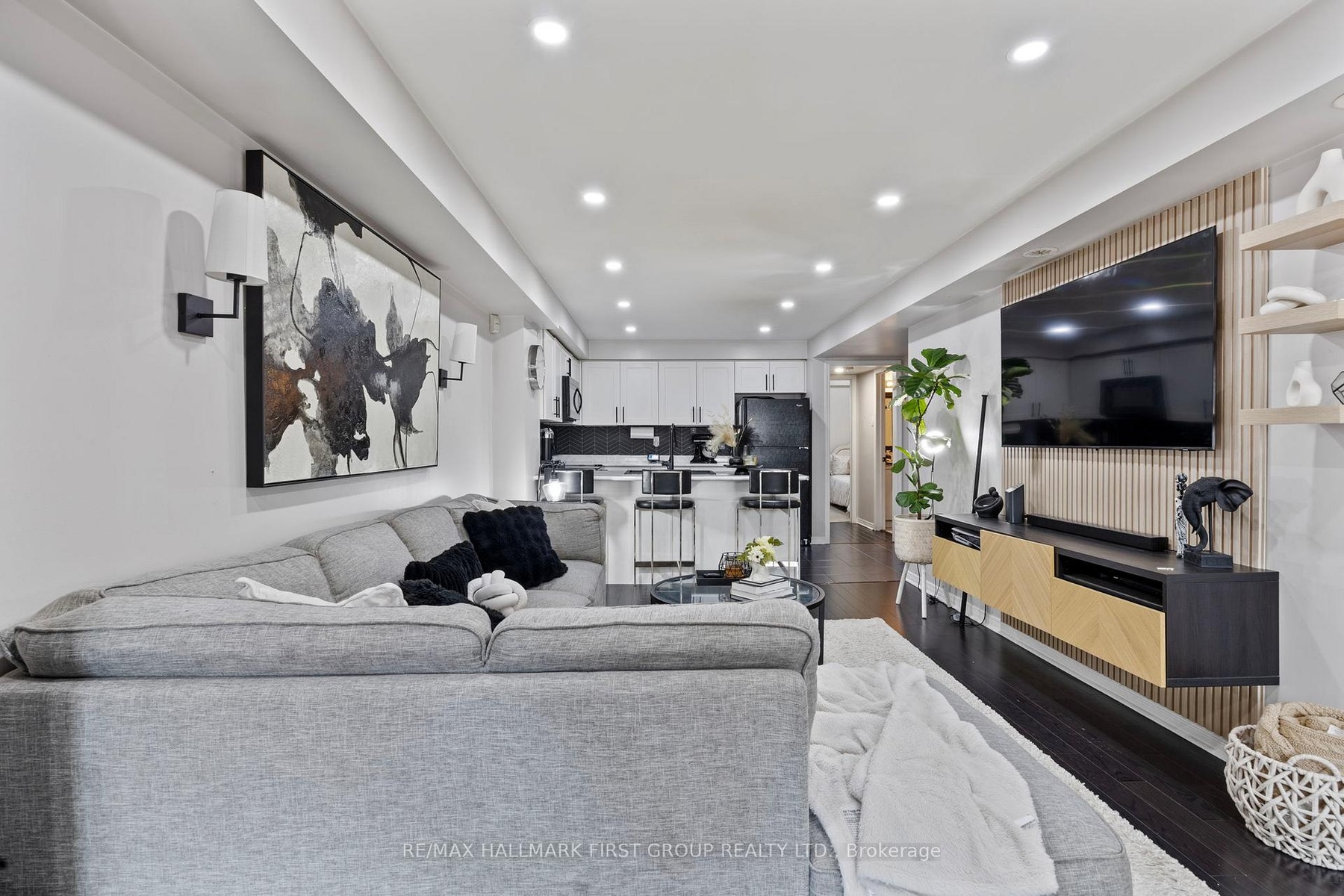 This modern 2 bedroom, 1 bathroom stacked condo townhouse offers sleek black finishes, hardwood floors, pot lights, and a stylish kitchen with stainless steel appliances, a sleek backsplash, and updated ...