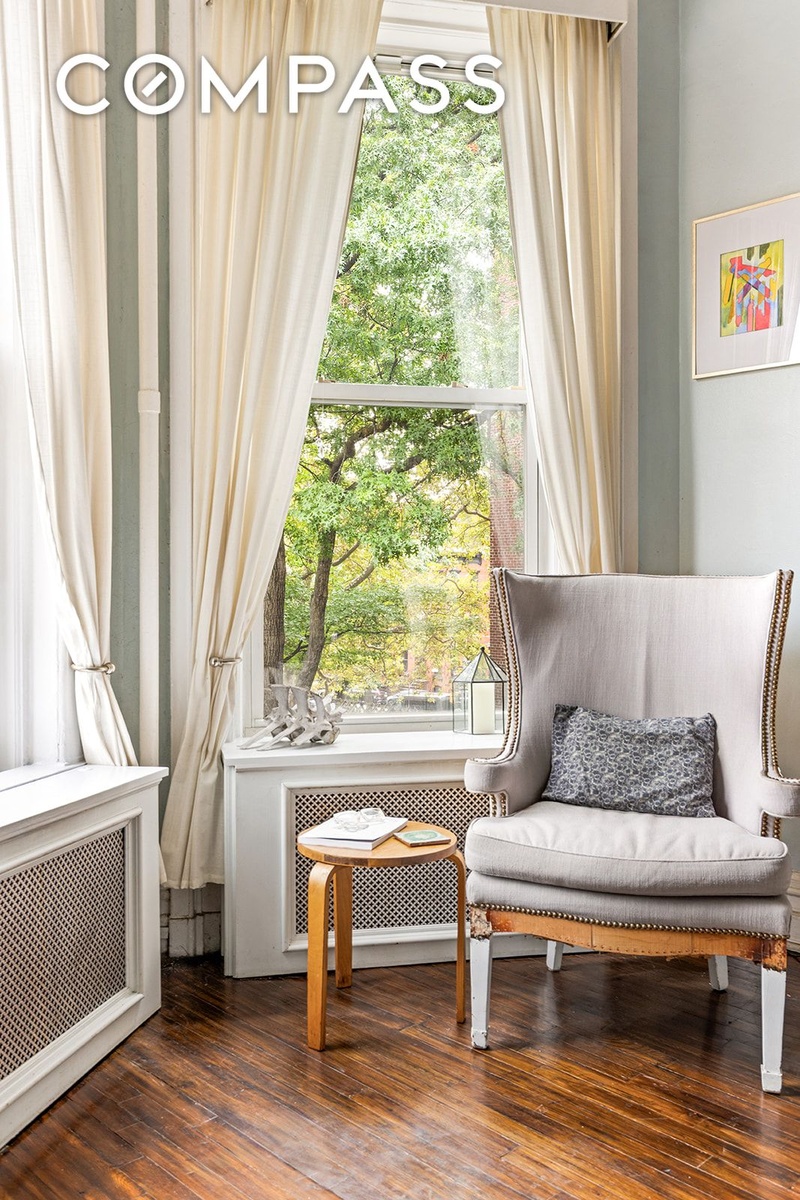 Relive the 2nd grade in this former mansion turned schoolhouse turned co-op building on the "Gold Coast" of Clinton Hill, Brooklyn. This unique duplex apartment features the charm of Victorian Brooklyn throughout. High ceilings, a gorgeous wood-burning fireplace, original floors, decorative moldings adorn the space facing the quiet back of the building. With three exposures the lower level gets exceptional lighting and has lovely tree-lined views. The windowed kitchen has butcher block countertops, abundant cabinet space and a charming farmhouse sink. The large living room is centered on the ornate fireplace, yet has room for a home office space as well. A dining area adjacent to the kitchen boasts stylish lighting and room to host friends and family. An outdoor terrace off the living room allows for lovely al fresco dining or lounging. The secondary bedroom is located off of the living room and features two exposures with extra large windows. An en-suite full bathroom has been recently renovated with classic Carrara marble tile.