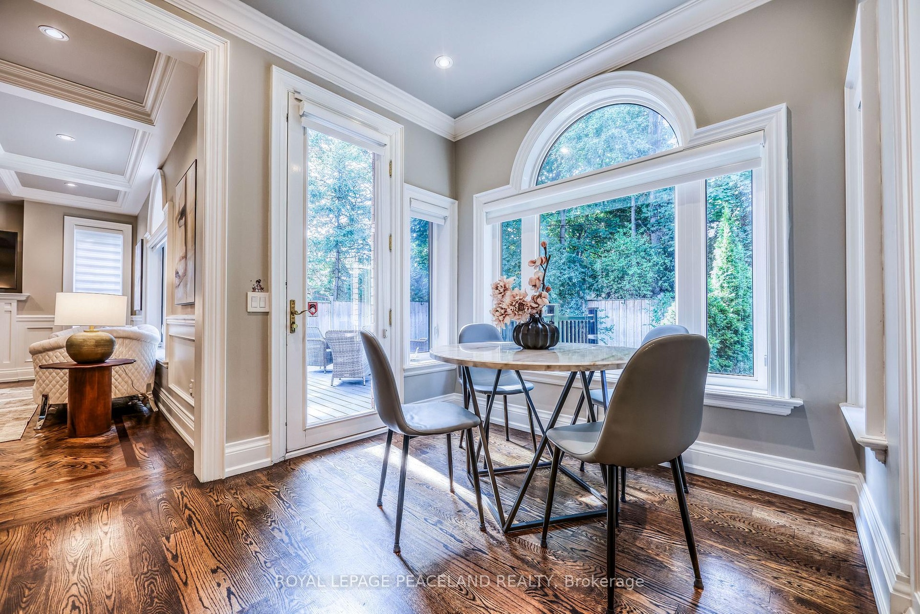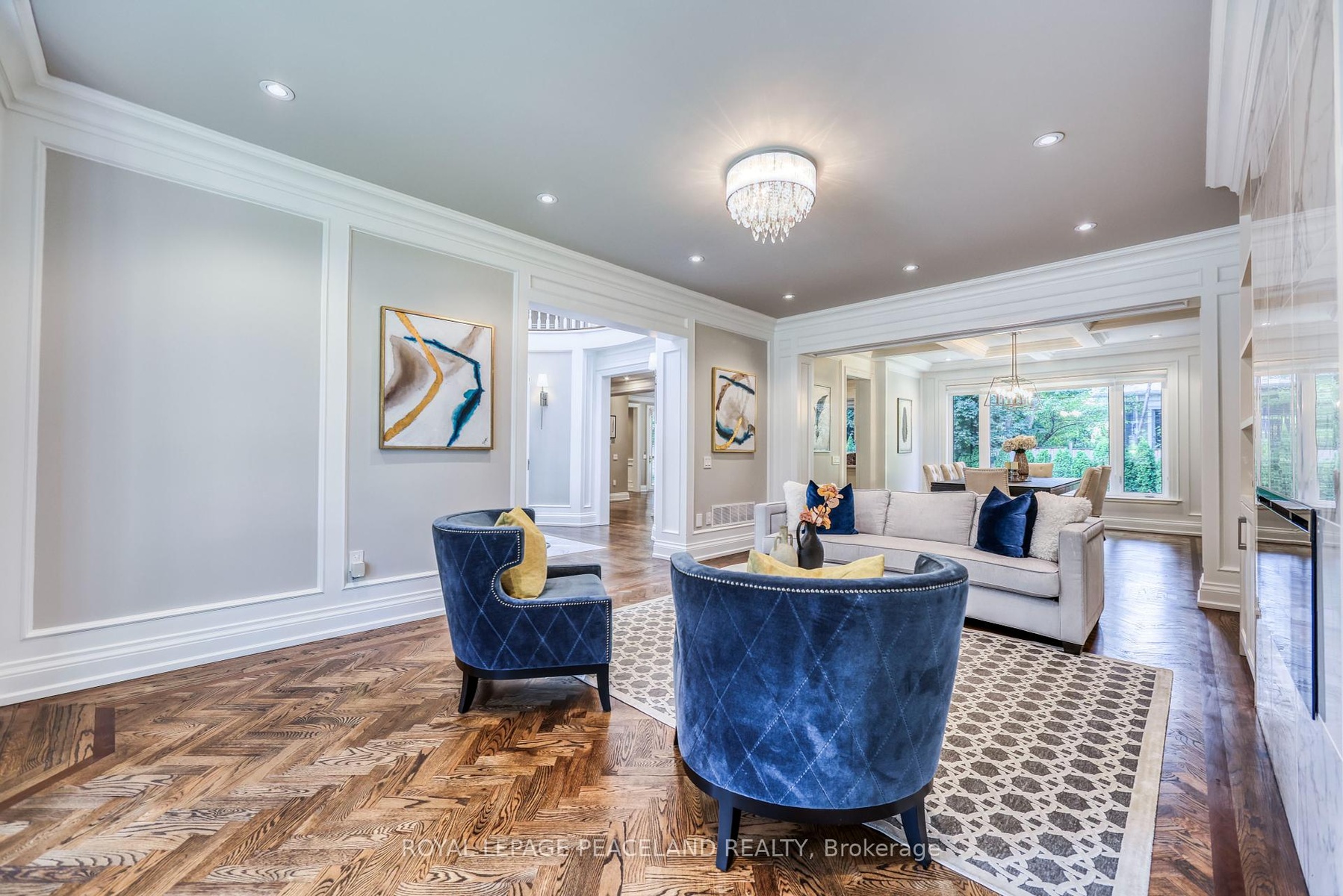 Welcome To This Magnificent Luxury Home, Nestled On A Premium 80-Foot Lot Along A Quiet Street In The Heart Of Prestigious Bayview Village. Offering Nearly 7,000 Sq. Ft. Of Living Space And Fully Renovated In 2017, This Residence Blends Timeless Elegance With Modern Sophistication. Step Inside To Discover Spacious Principal Rooms, An Elegant Curved Staircase, And Custom Wainscoting That Elevate Every Corner Of The Home. Coffered Ceilings, Four Skylights, Rich Hardwood Floors, And Bespoke Millwork Flow Seamlessly Throughout The Main And Upper Levels, Creating An Inviting And Refined Atmosphere. The Chefs Kitchen Is Outfitted With Top-Tier Appliances And Designed For Both Family Living And Entertaining. With Two Kitchens, A Practical Layout, And Five Generous Bedrooms Upstairs, This Home Offers Unmatched Comfort And Versatility. Additional Highlights Include: Professional Landscaping With Sprinkler System, Circular Driveway And Tree-Lined Backyard For Privacy And Curb Appeal, Energy-Efficient Windows Throughout, This Remarkable Property Truly Embodies Luxury Living In One Of Toronto's Most Sought-After Communities.
