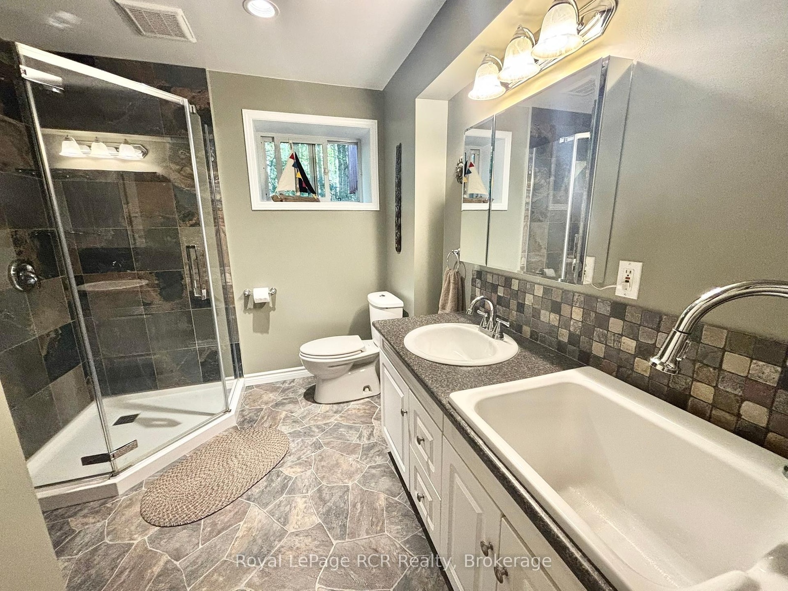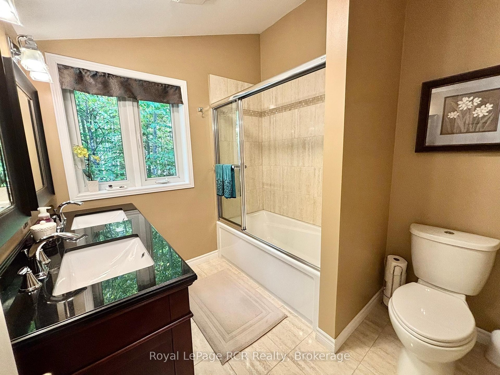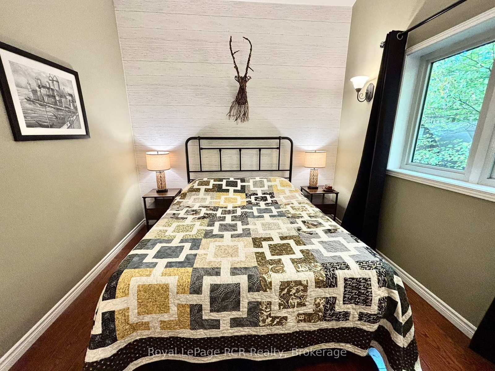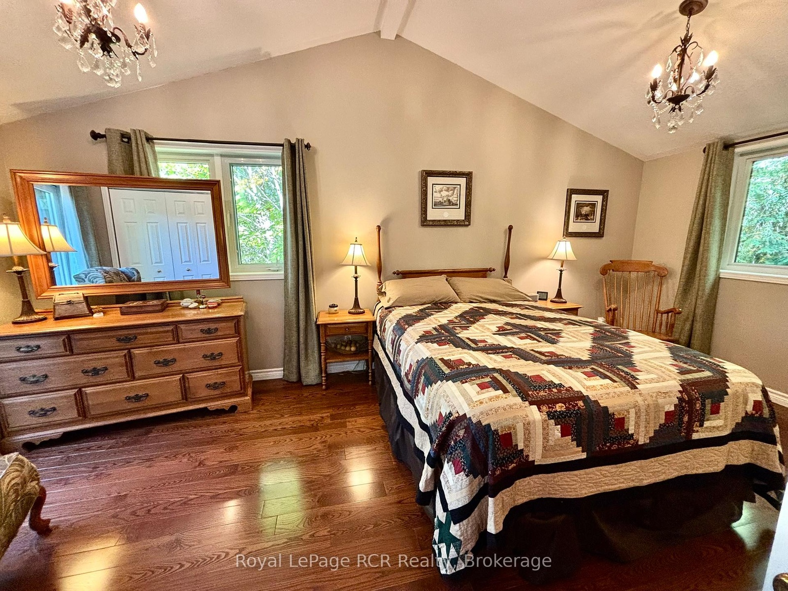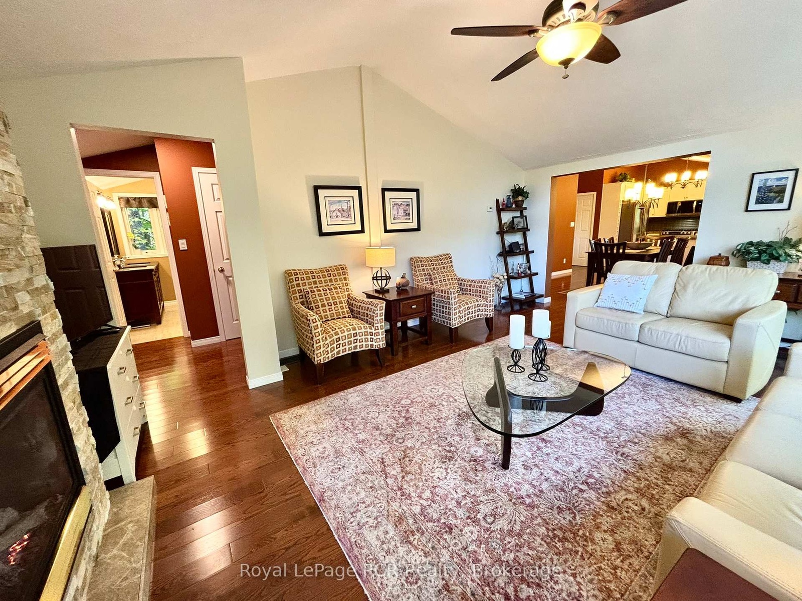 DescriptionPrivate 5-Bedroom Home Nestled Among the Trees, and located in a highly sought after area! Escape to your own private oasis with this stunning 5-bedroom, 2-bathroom home, perfectly tucked away on a long, winding paved driveway. Surrounded by mature trees, this home cannot be seen from the road, offering seclusion and tranquility while still just minutes from town. Key features: bright, open-concept kitchen with granite counters. Dining room with walk-out to large deck with two awnings. Soaring vaulted ceilings, a natural gas fireplace and wall-to-wall windows that flood the Great room with natural light. A cozy lower-level family room with Built in speakers, and a second natural gas fireplace , perfect for movie nights. Multiple flex spaces ideal for hobbies, bedrooms, a home office, or a craft room. Enjoy peaceful mornings on the deck, evenings by the fire, and year-round privacy in a serene forest setting. Whether you're looking for a family home or a peaceful retreat in nature, this property offers the perfect balance of comfort, style, and seclusion. Don't miss the chance to own this hidden gem....a rare retreat that blends modern living with natural beauty. Located across the road from a Conservation Area, and short bike ride to the Georgian Bluffs Rail Trail. Fiber optic available. ****Many aspects of the home have been updated since 2009: Hot water tank, Water softener, AC unit (2009), All flooring in the home, both bathrooms fully redone (cabinets/ paint/ flooring/ fixtures), Blinds throughout, walls painted, ground floor fireplace, Granite counters in kitchen, Front deck (2020), Roof (2018) with heat cables in the valleys.Amenities- Central Vacuum