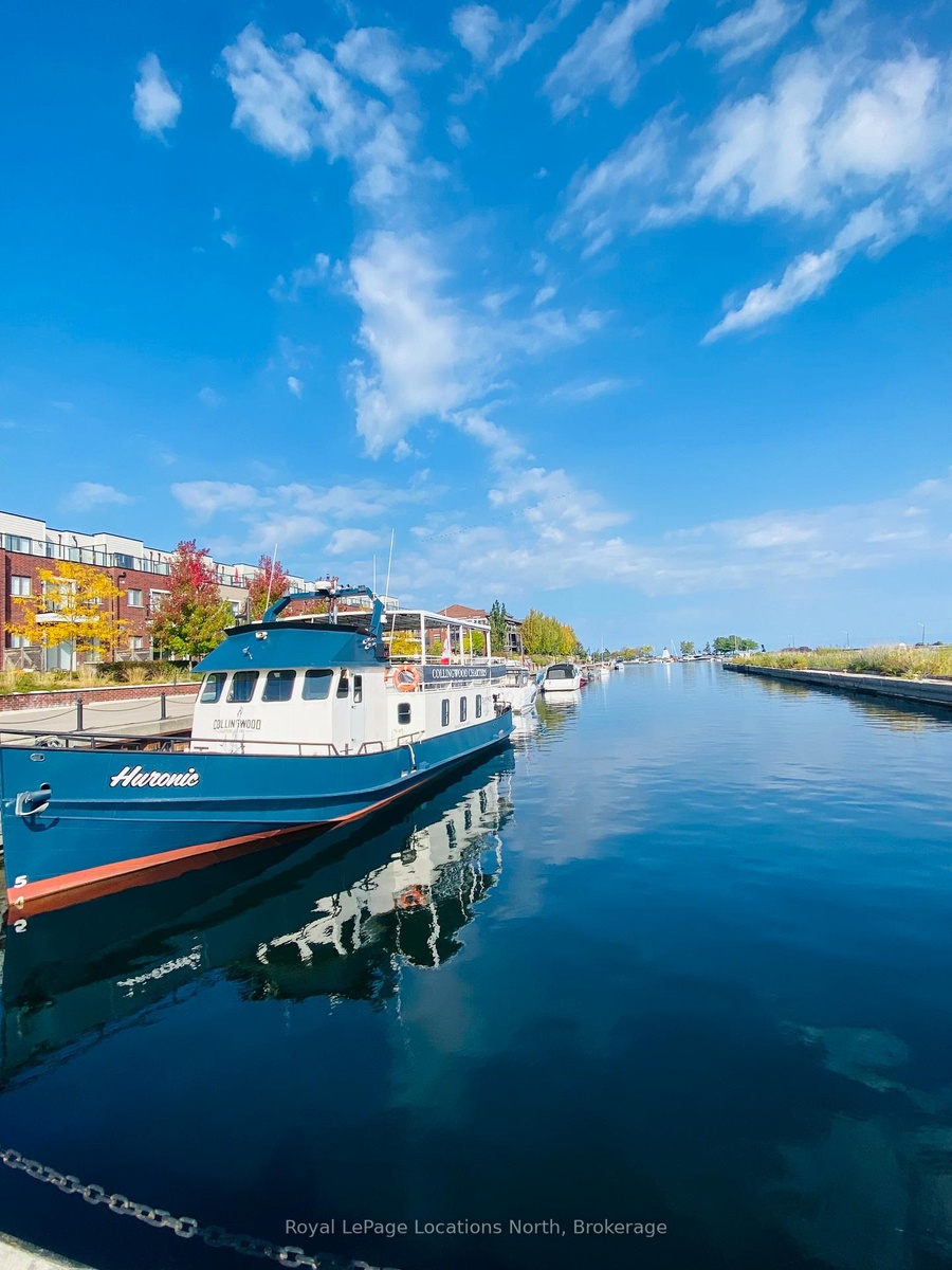 DescriptionSeasonal Lease-Welcome to this spacious one-bedroom condo located in the prestigious sought-after Shipyards development. Enjoy stunning, unobstructed views of Georgian Bay from your large east-facing patio perfect for taking in the breathtaking sunrises. The unit boasts a generous primary bedroom with a walk-in closet, ensuite bathroom, and direct views of the bay. The living room, dining area, and kitchen flow seamlessly together, highlighted by a gas fireplace perfect for relaxing and enjoying during the colder months. Additional features include a second three piece bathroom, two hall closets, a laundry/utility room off the foyer. The Side Launch Building is immaculately maintained with two underground parking spots, storage locker, and elevator. With access to a party room including a full kitchen, large dining table, and lounge with TV. Situated just steps from the waterfront promenade and a short walk to historic downtown Collingwood shops and restaurants! This location also offers a quick 10-15 minute drive to Blue Mountain and private ski clubs. Enjoy your Ski Season in this beautiful area. Dates are flexible!Amenities- Other