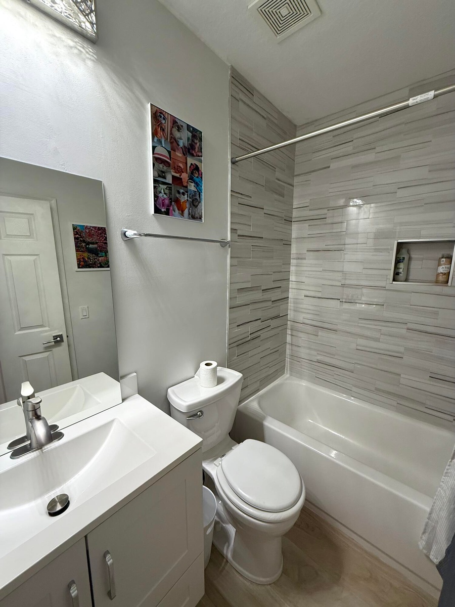Welcome to Coastal Bay, a charming gated community just minutes from beaches and downtown Delray. This 3-story townhome with a 2-car garage features elegant marble flooring and a flexible first-floor room with a full bath--perfect as an office, gym, playroom, or media lounge. The second-level kitchen boasts 2023 stainless steel appliances, ample counter space, a dining area, a large entertainment space, and a convenient half bath. Upstairs, the primary suite offers a walk-in closet and a spacious, updated master bath, while the second bedroom also features a full bath. Enjoy a young, family-friendly neighborhood with a pool, jacuzzi, fitness center, internet, and cable--all included in the affordable HOA.