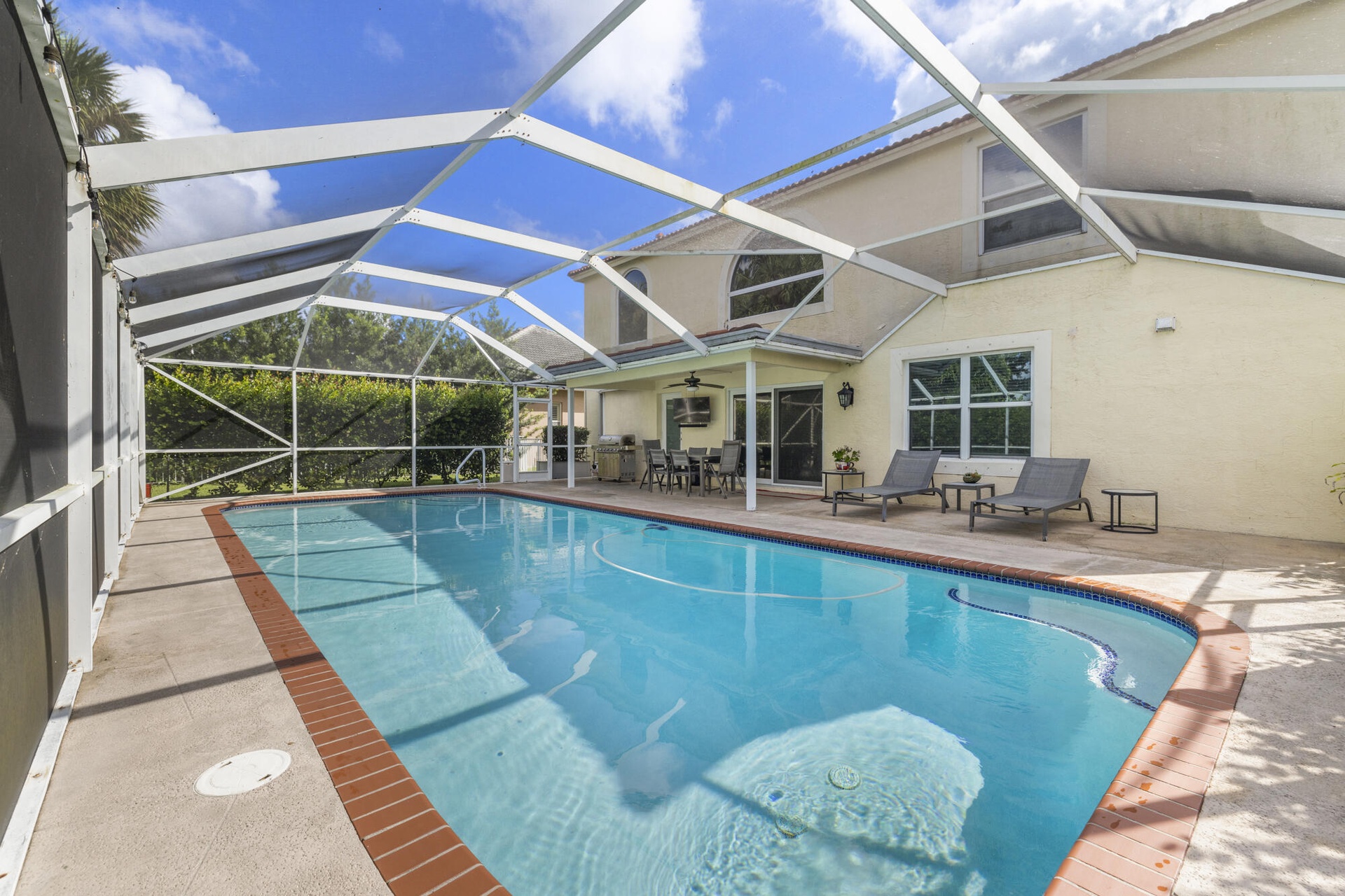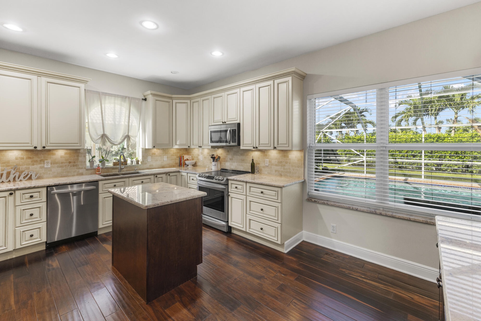 Welcome to this beautifully renovated home in gated Hidden Creek.The kitchen impresses with top-of-the-line Latte cabinetry, extra storage, generous counter space, & high-end finishes throughout. The soaring ceilings & open-concept allow for easy flow between formal,living & dining room.Large laundry room w/extra storage. The lower level features a bedroom w/Murphy bed & full bath perfect for guests or in-laws,.Upstairs, the expansive primary suite offers a cozy sitting area, and you'll find three additional bedrooms plus loft ideal as a office or lounge.Step outside to your heated pool, fully screened patio with fenced yard & covered patio that is a perfect oasis for relaxation & entertaining. All doors and windows are hurricane IMPACT glass. ''A'' rated Binks schools walking distance.