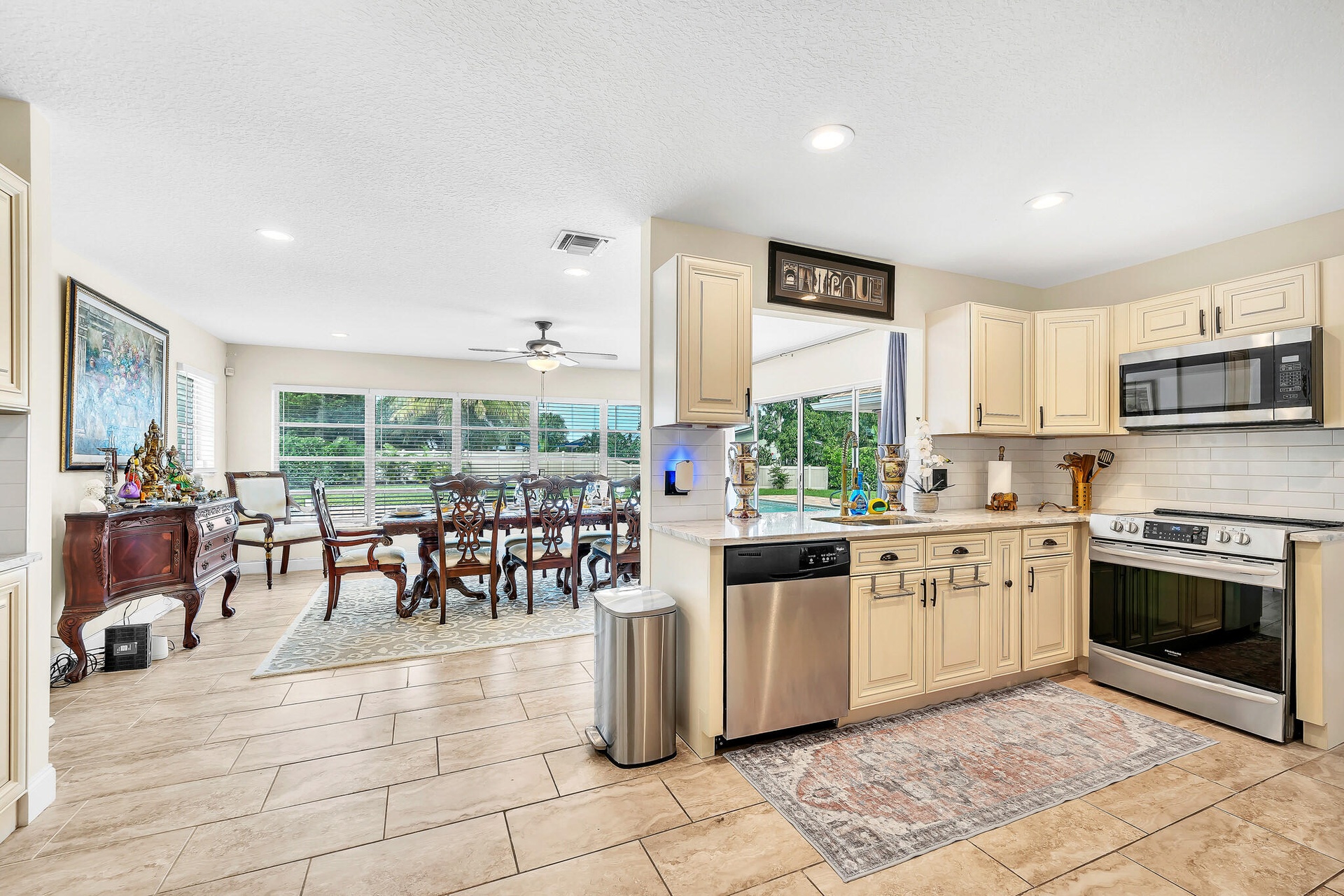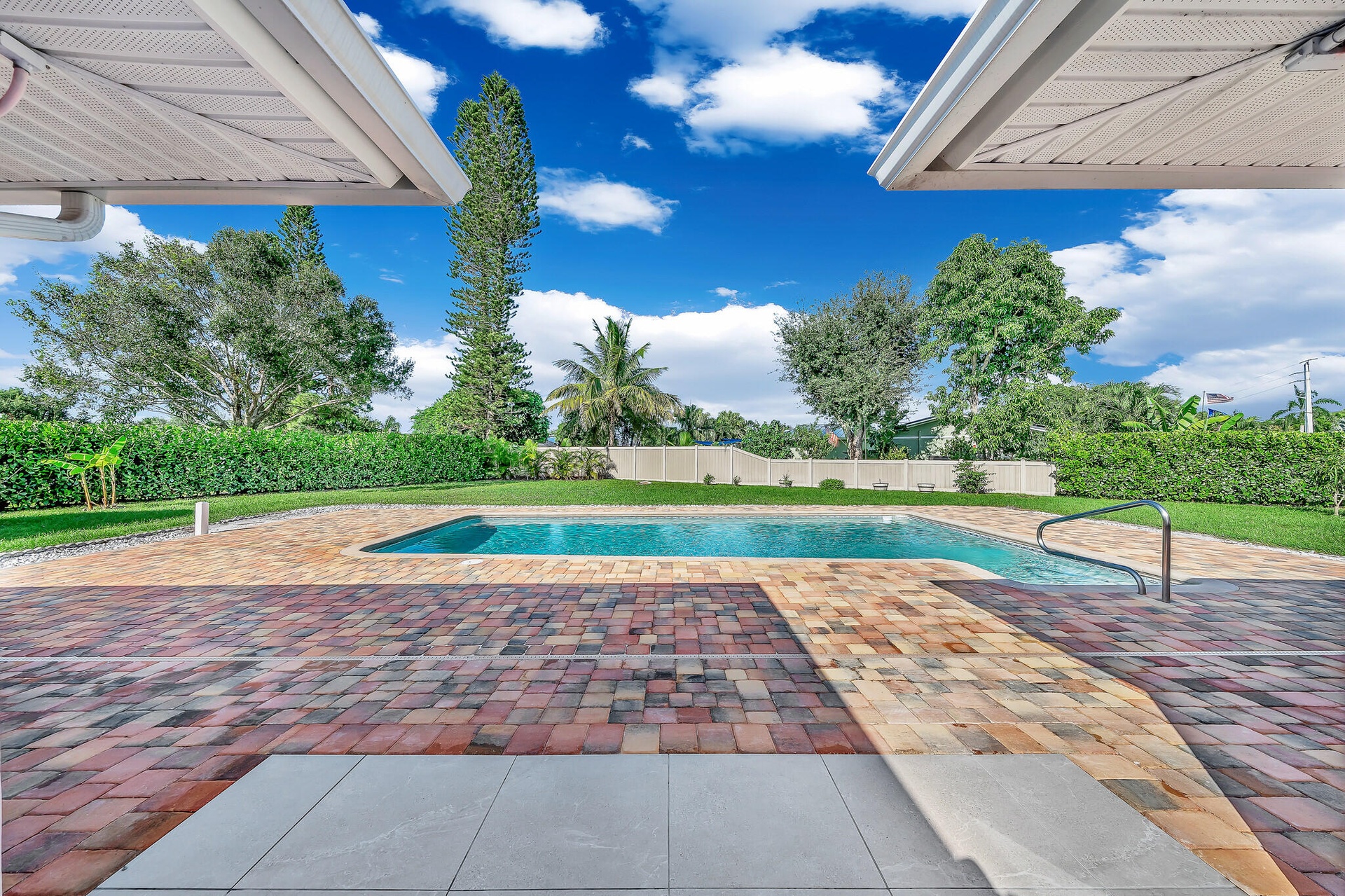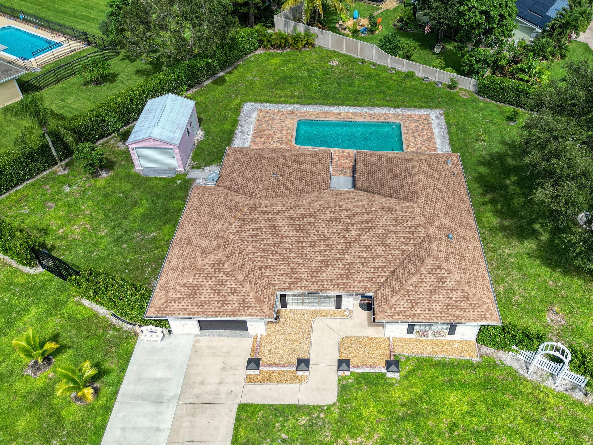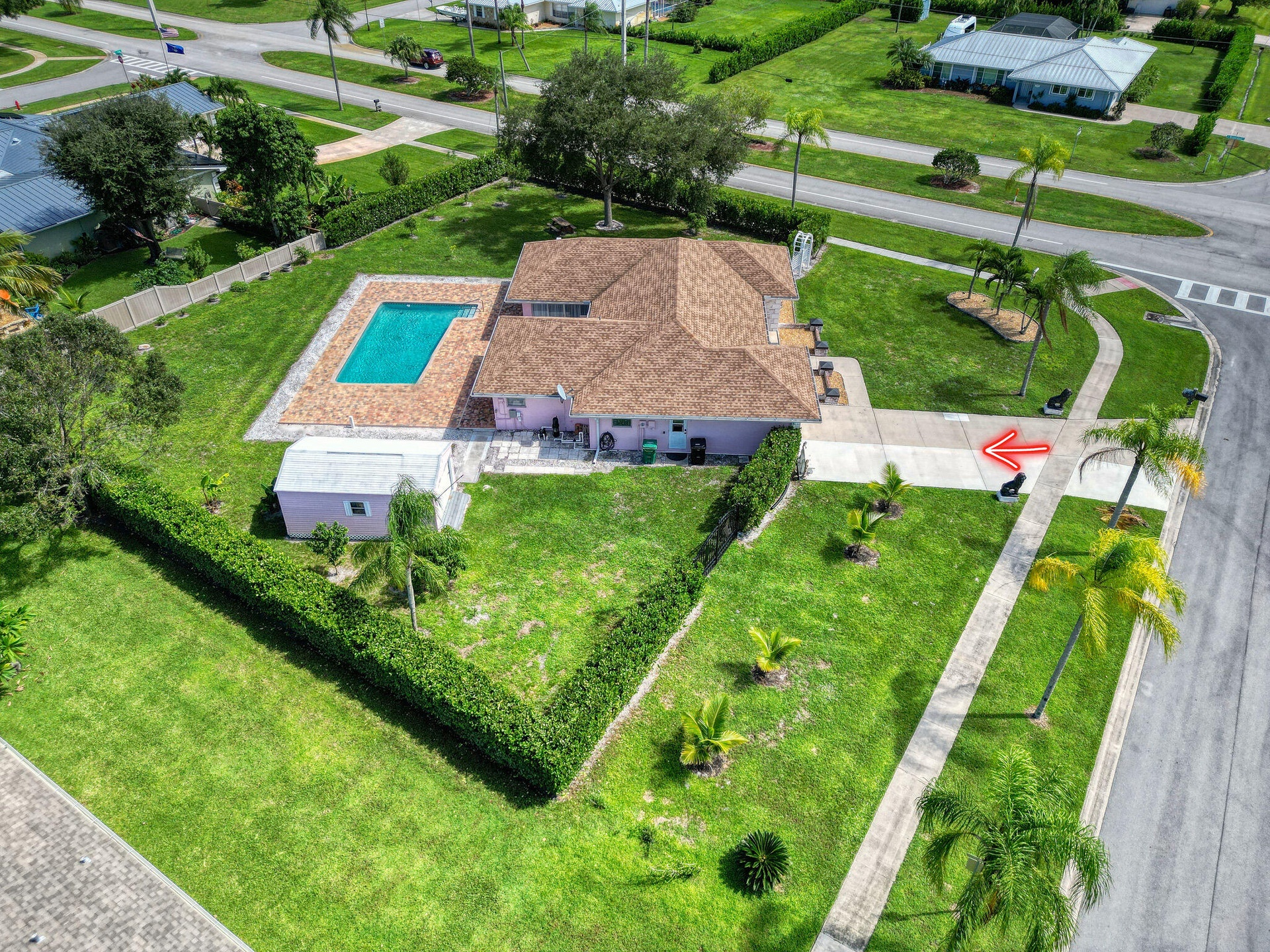 DescriptionCaribbean Elegance; Where Every Day Feels Like Vacation. Step into this Sandpiper Bay CBS-built pool home where Caribbean curb appeal meets Victorian-inspired elegance. This 3 bed 2 bath home offers 1,814 sqft of living space on an oversized .51-acre corner lot, meticulously updated inside and out. Major improvements include a 2021 roof, 2021 AC, appliances under 3 years old, and brand-new brick pavers that wrap the sparkling pool. The backyard is framed by lush clusia hedges, palms, and fruit trees, creating a private tropical oasis. Inside, you'll find the chef's kitchen features granite countertops, warm neutral cabinetry, SS appliances, and a long coffee/wine bar, opening into a light-filled family room overlooking the pool. Additions include renovated baths, elegant hardware, wide-