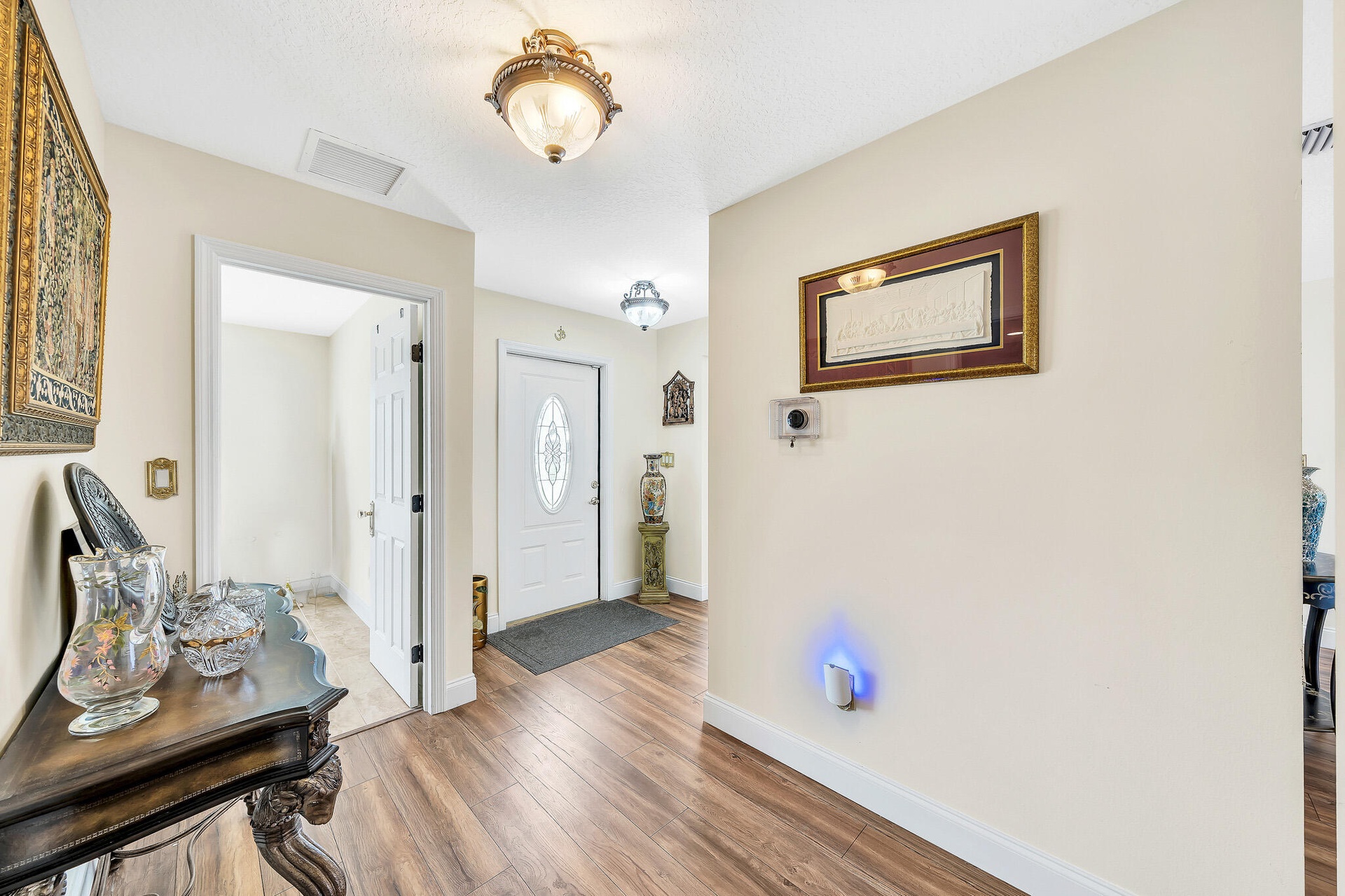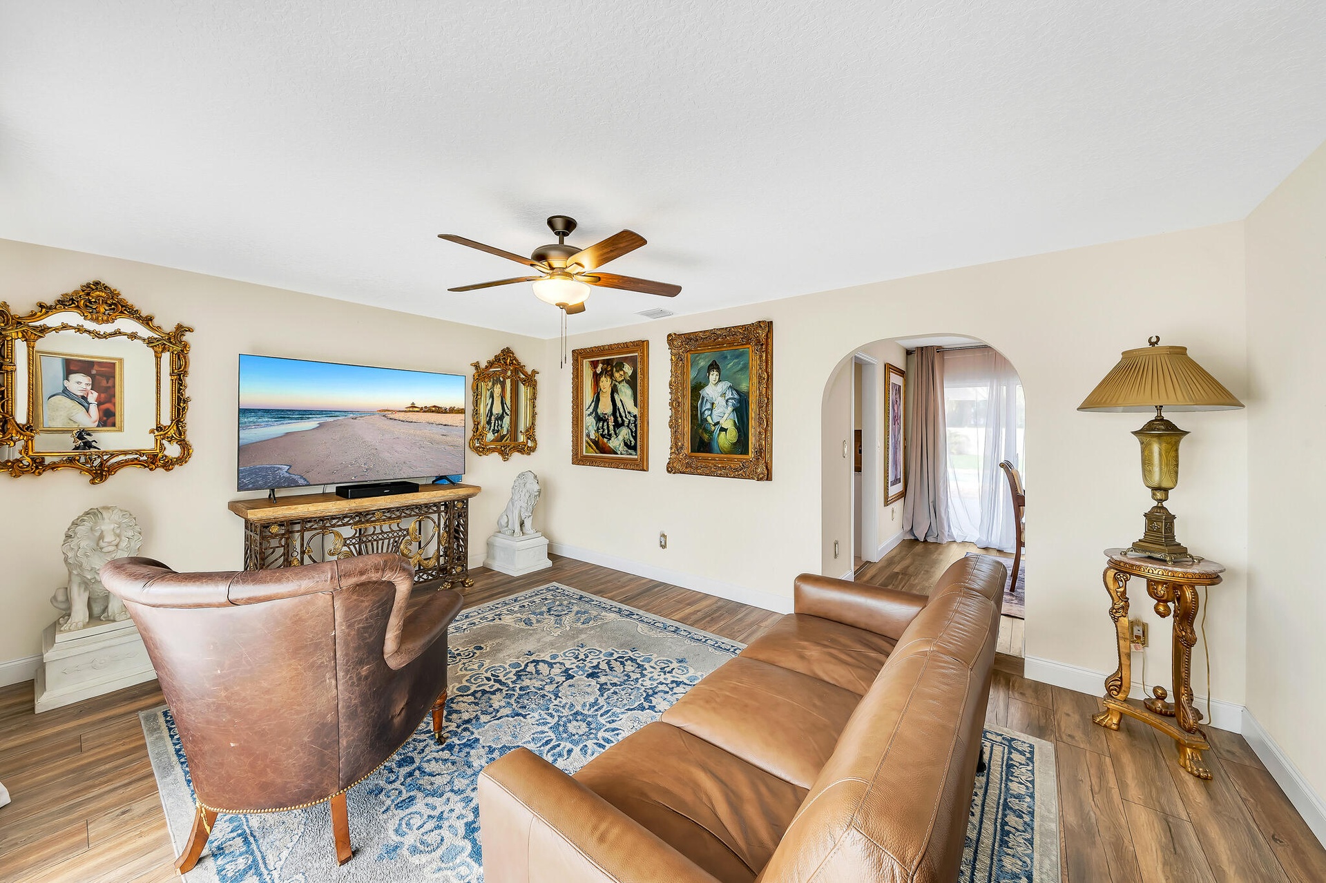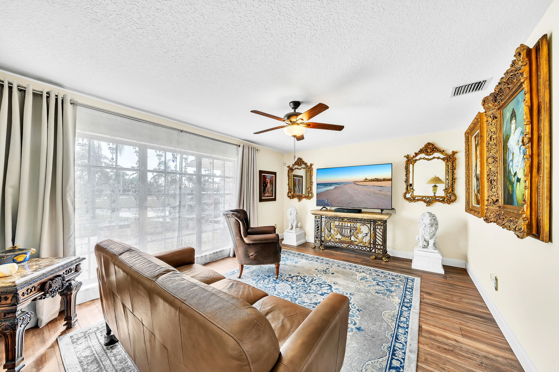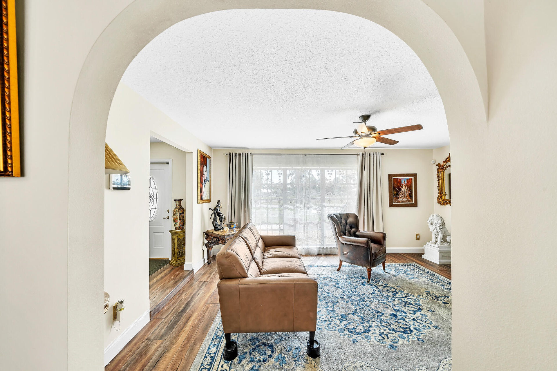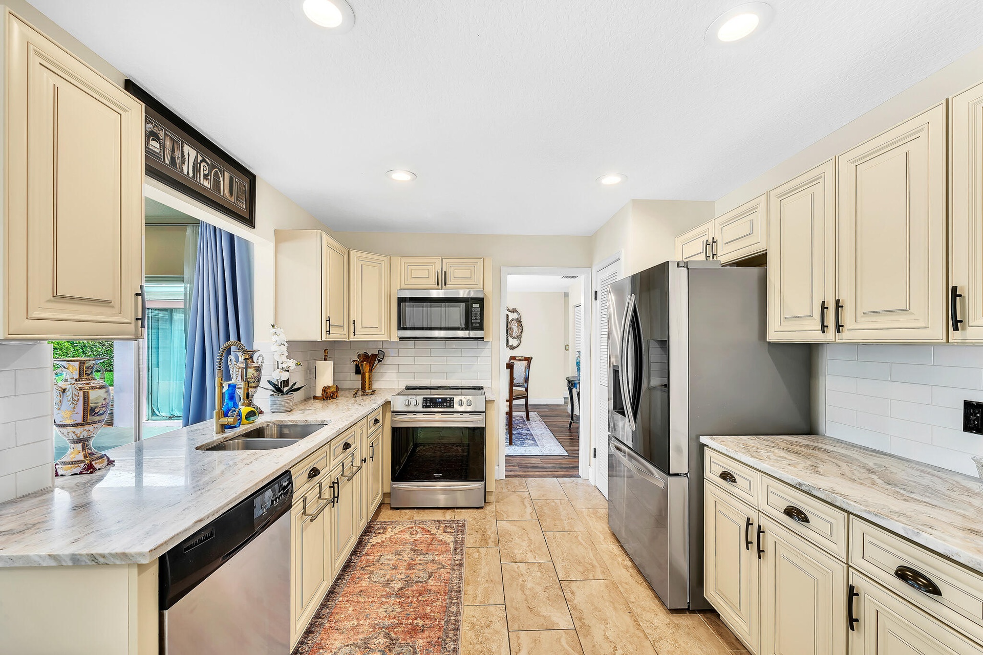 DescriptionCaribbean Elegance; Where Every Day Feels Like Vacation. Step into this Sandpiper Bay CBS-built pool home where Caribbean curb appeal meets Victorian-inspired elegance. This 3 bed 2 bath home offers 1,814 sqft of living space on an oversized .51-acre corner lot, meticulously updated inside and out. Major improvements include a 2021 roof, 2021 AC, appliances under 3 years old, and brand-new brick pavers that wrap the sparkling pool. The backyard is framed by lush clusia hedges, palms, and fruit trees, creating a private tropical oasis. Inside, you'll find the chef's kitchen features granite countertops, warm neutral cabinetry, SS appliances, and a long coffee/wine bar, opening into a light-filled family room overlooking the pool. Additions include renovated baths, elegant hardware, wide-