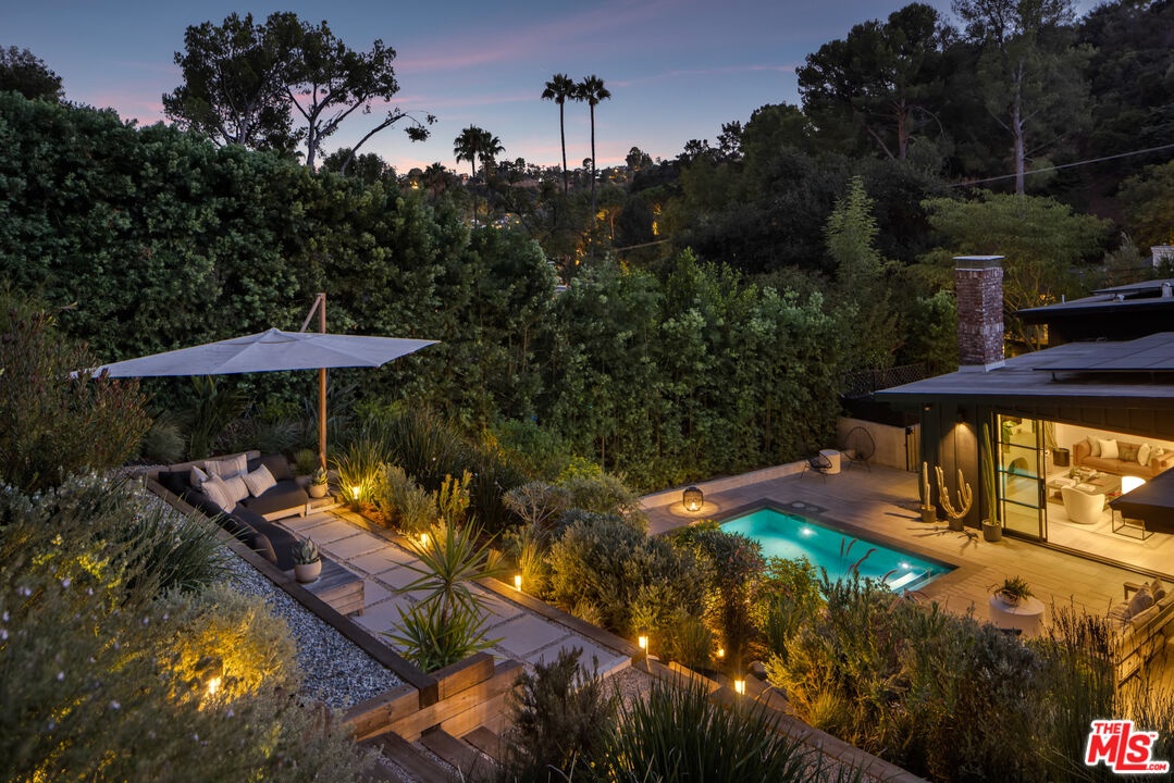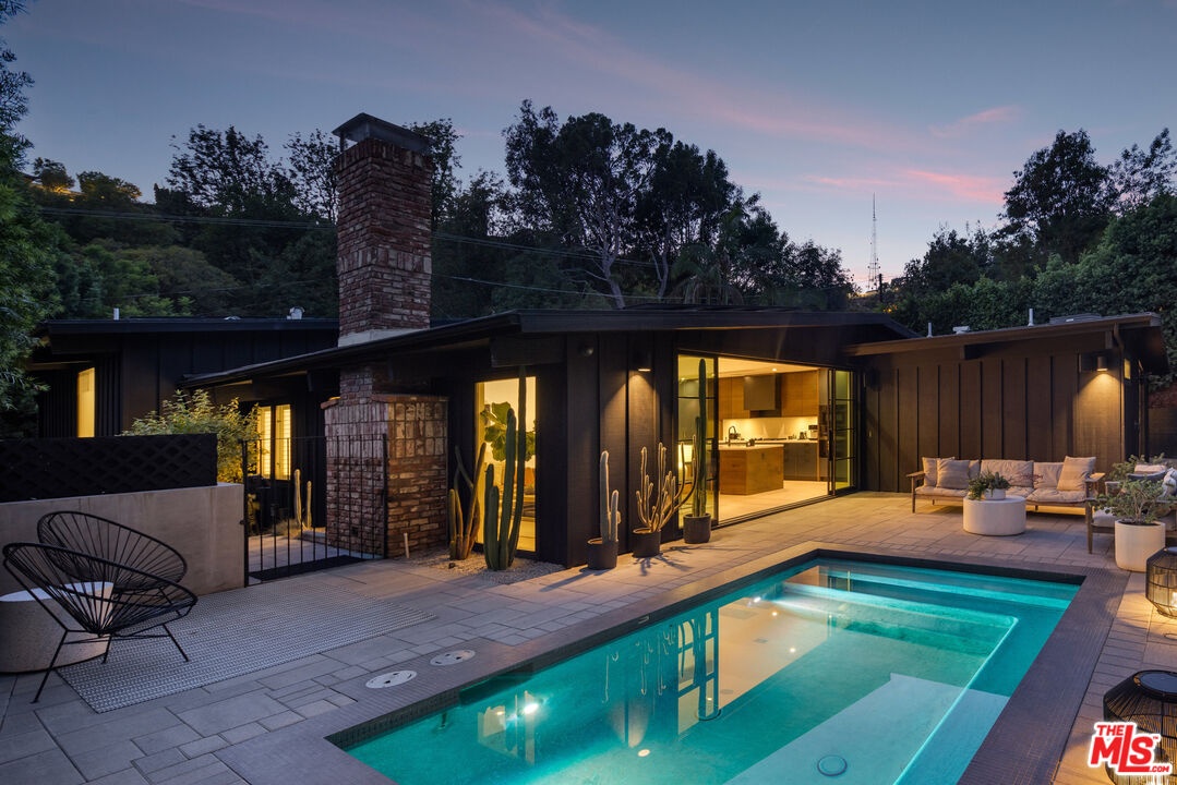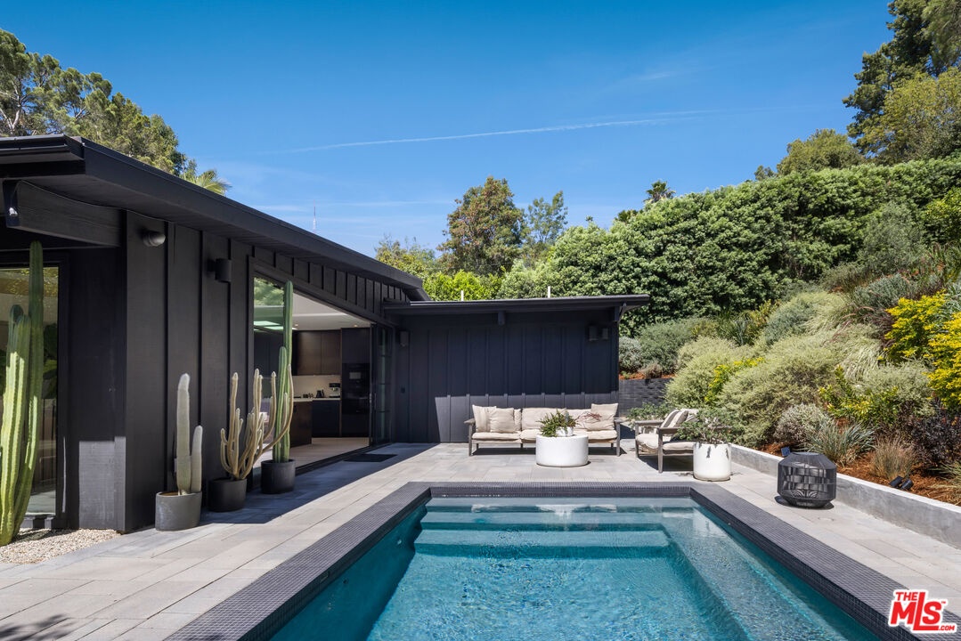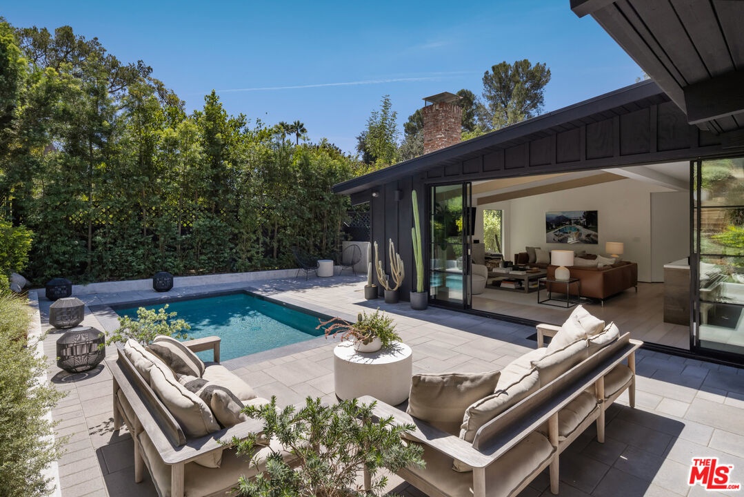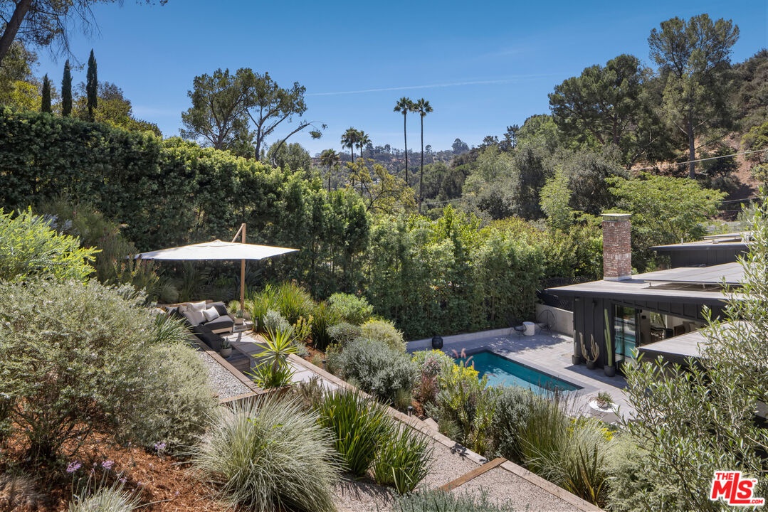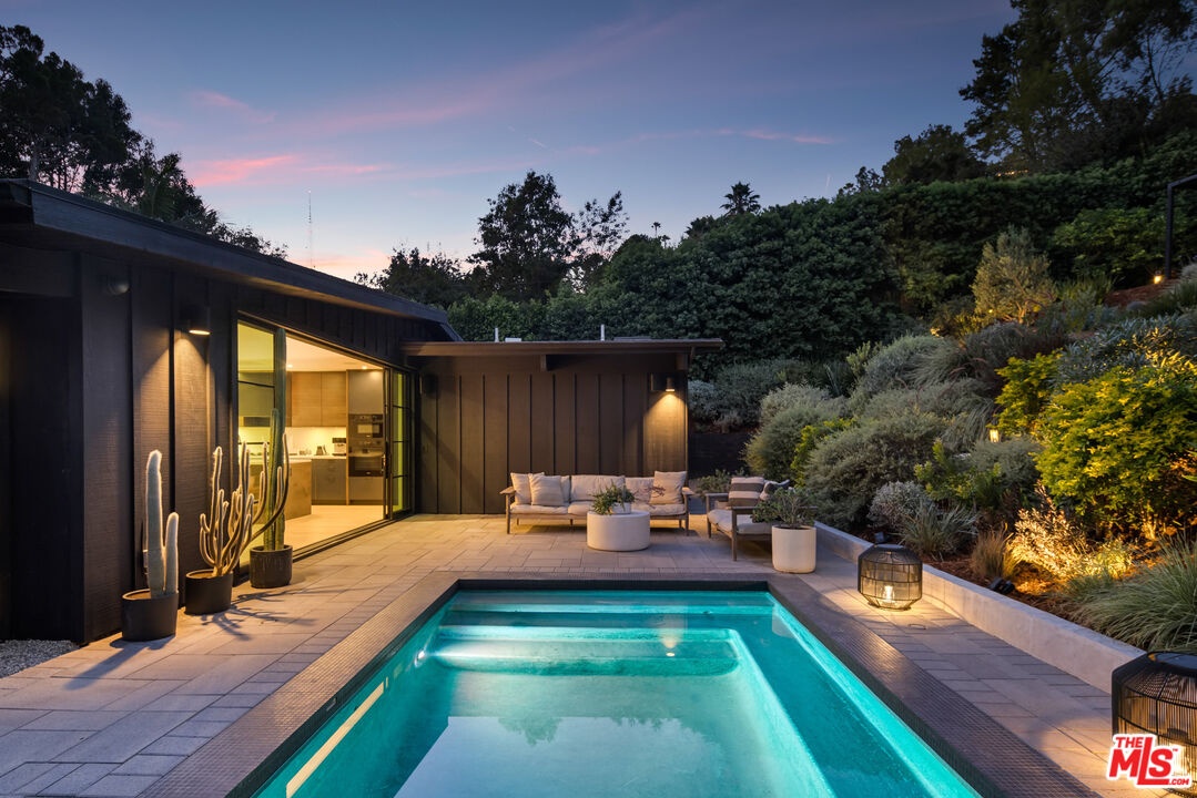 Tucked away in the highly sought-after Upper Laurel Canyon, within a coveted school district, this three-bedroom, three bath architectural residence embodies the best of California mid-century ranch living. Designed with a seamless balance of space, style, and nature, the home offers a rare sanctuary just minutes from the city. Thoughtfully renovated with meticulous attention to detail, every element has been curated to honor the home's original mid-century character while introducing modern sophistication. The interiors feature hand-plastered walls, rich natural stone, wood-beamed ceilings, sleek cabinetry, and custom steel-framed windows. Walls of glass flood the home with light, creating an effortless indoor-outdoor flow that blurs the line between architecture and landscape. The open floor plan invites both relaxation and connectionperfect for living, entertaining, or working in style. Step outside to a spacious backyard oasis where a sparkling pool is surrounded by mature landscaping and serene canyon views, offering ultimate privacy and tranquility. This Laurel Canyon retreat is more than a homeit's an escape, a statement, and a lifestyle.