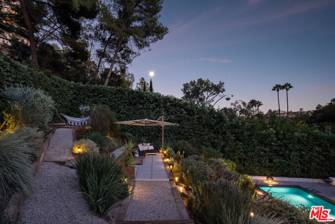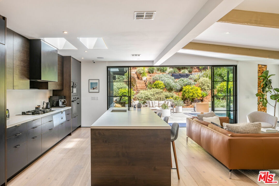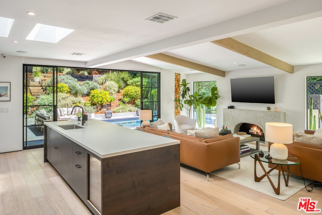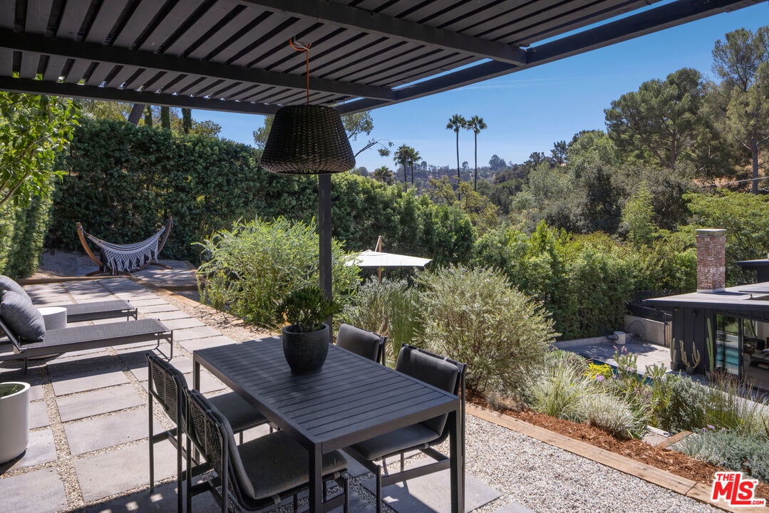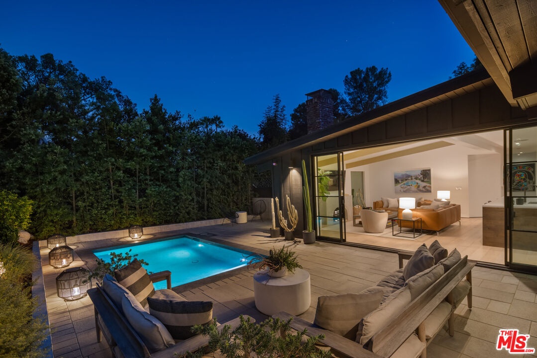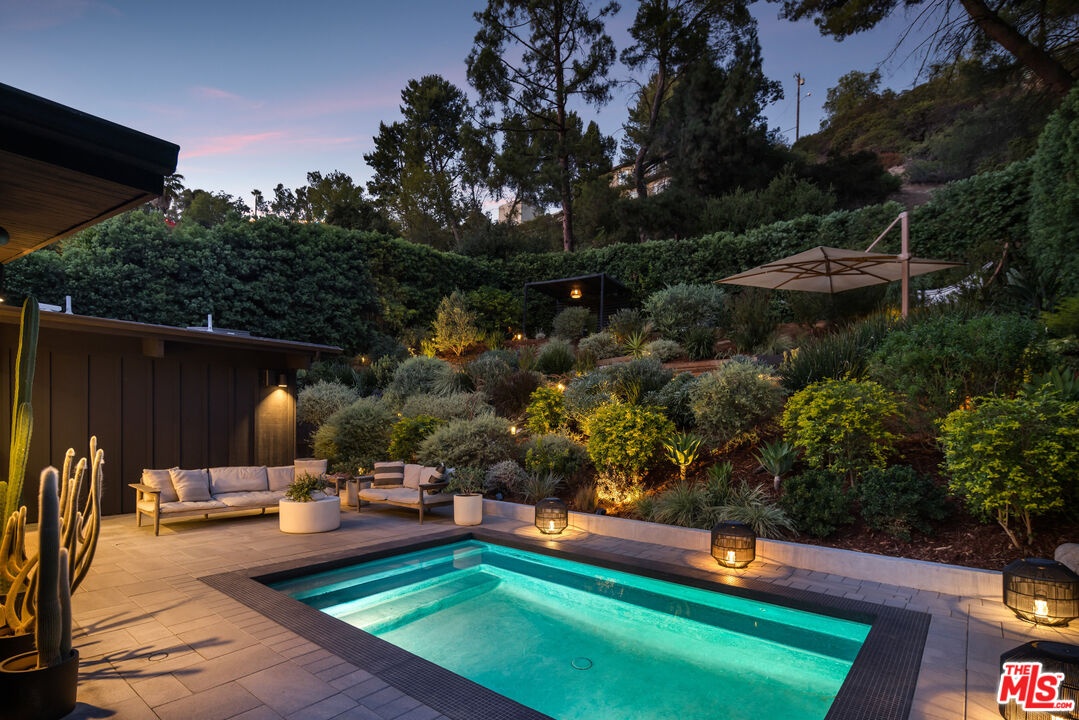 Tucked away in the highly sought-after Upper Laurel Canyon, within a coveted school district, this three-bedroom, three bath architectural residence embodies the best of California mid-century ranch living. Designed with a seamless balance of space, style, and nature, the home offers a rare sanctuary just minutes from the city. Thoughtfully renovated with meticulous attention to detail, every element has been curated to honor the home's original mid-century character while introducing modern sophistication. The interiors feature hand-plastered walls, rich natural stone, wood-beamed ceilings, sleek cabinetry, and custom steel-framed windows. Walls of glass flood the home with light, creating an effortless indoor-outdoor flow that blurs the line between architecture and landscape. The open floor plan invites both relaxation and connectionperfect for living, entertaining, or working in style. Step outside to a spacious backyard oasis where a sparkling pool is surrounded by mature landscaping and serene canyon views, offering ultimate privacy and tranquility. This Laurel Canyon retreat is more than a homeit's an escape, a statement, and a lifestyle.