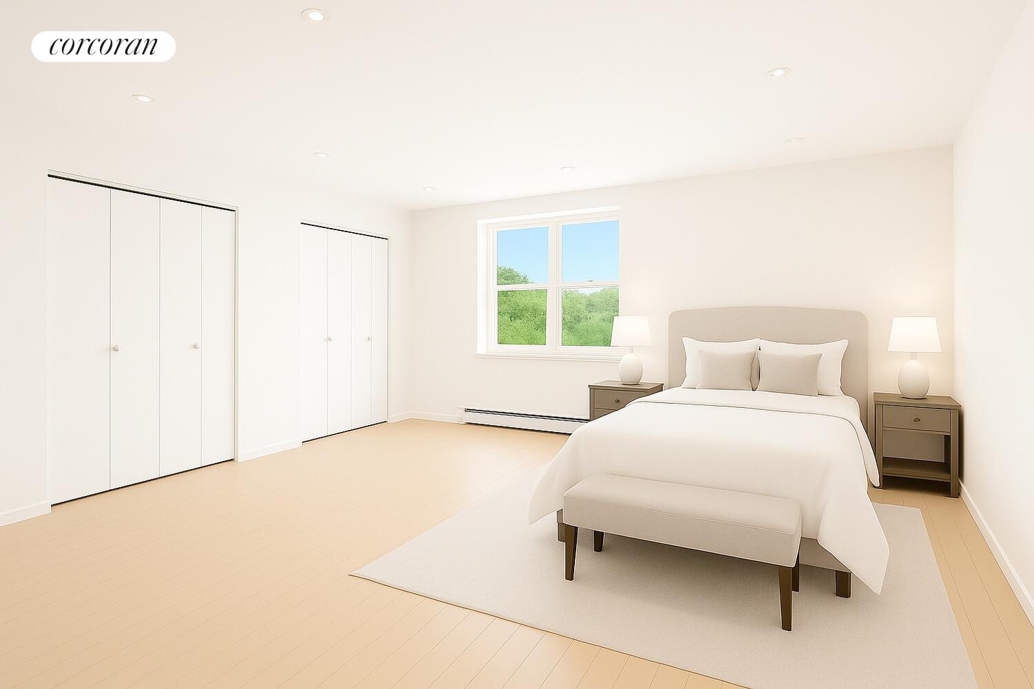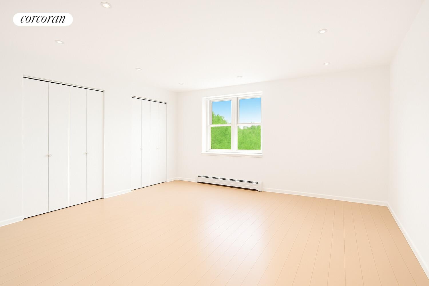 The layout begins with a wide foyer that opens into a large living/dining area, creating an easy flow for both everyday living and entertaining. The renovated kitchen features quartz countertops, abundant cabinetry, and stainless-steel appliances. The bathroom has been completely renovated with modern finishes, while both bedrooms are generously sized with ample closet space. Throughout the apartment, high ceilings with recessed lighting and newly installed hardwood floors give the home a fresh, contemporary look.
