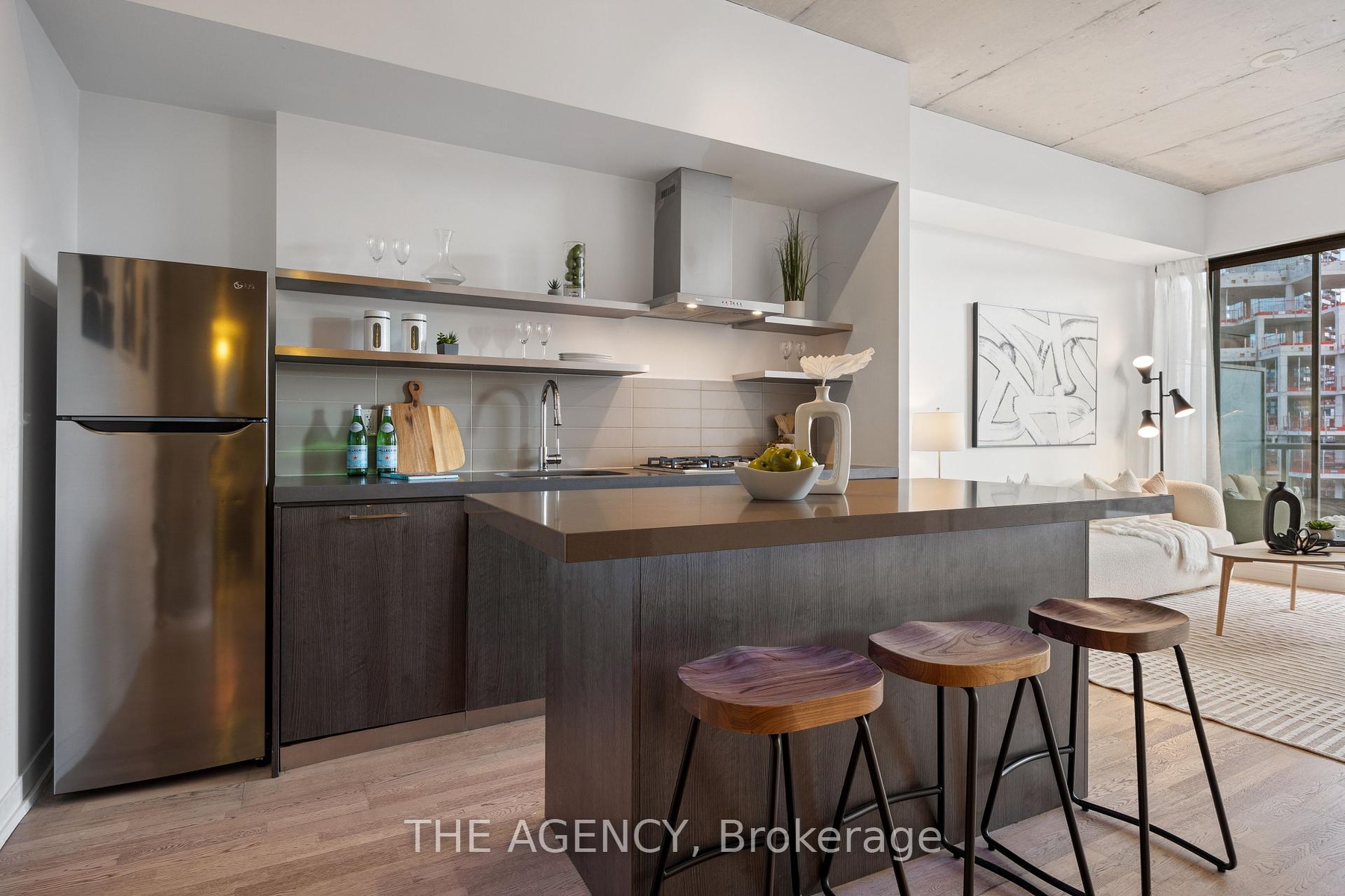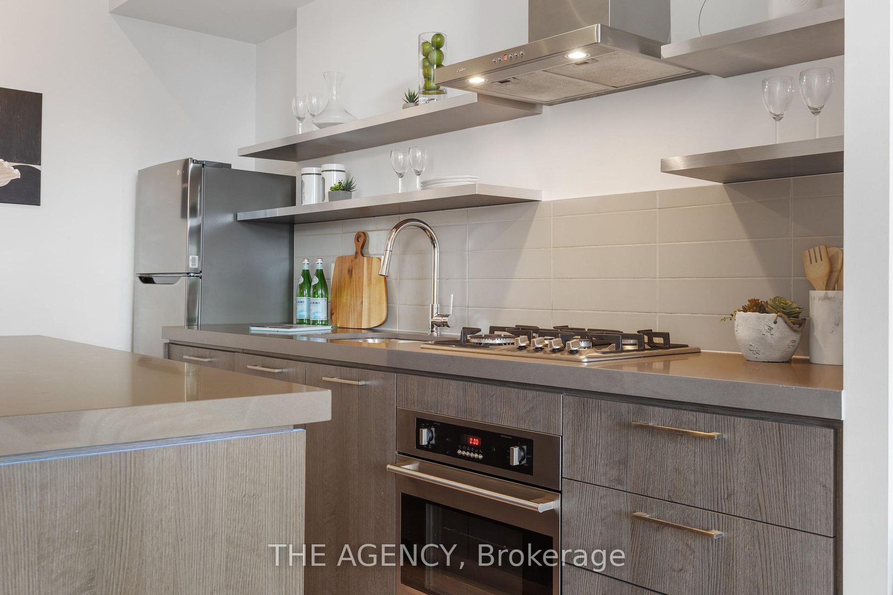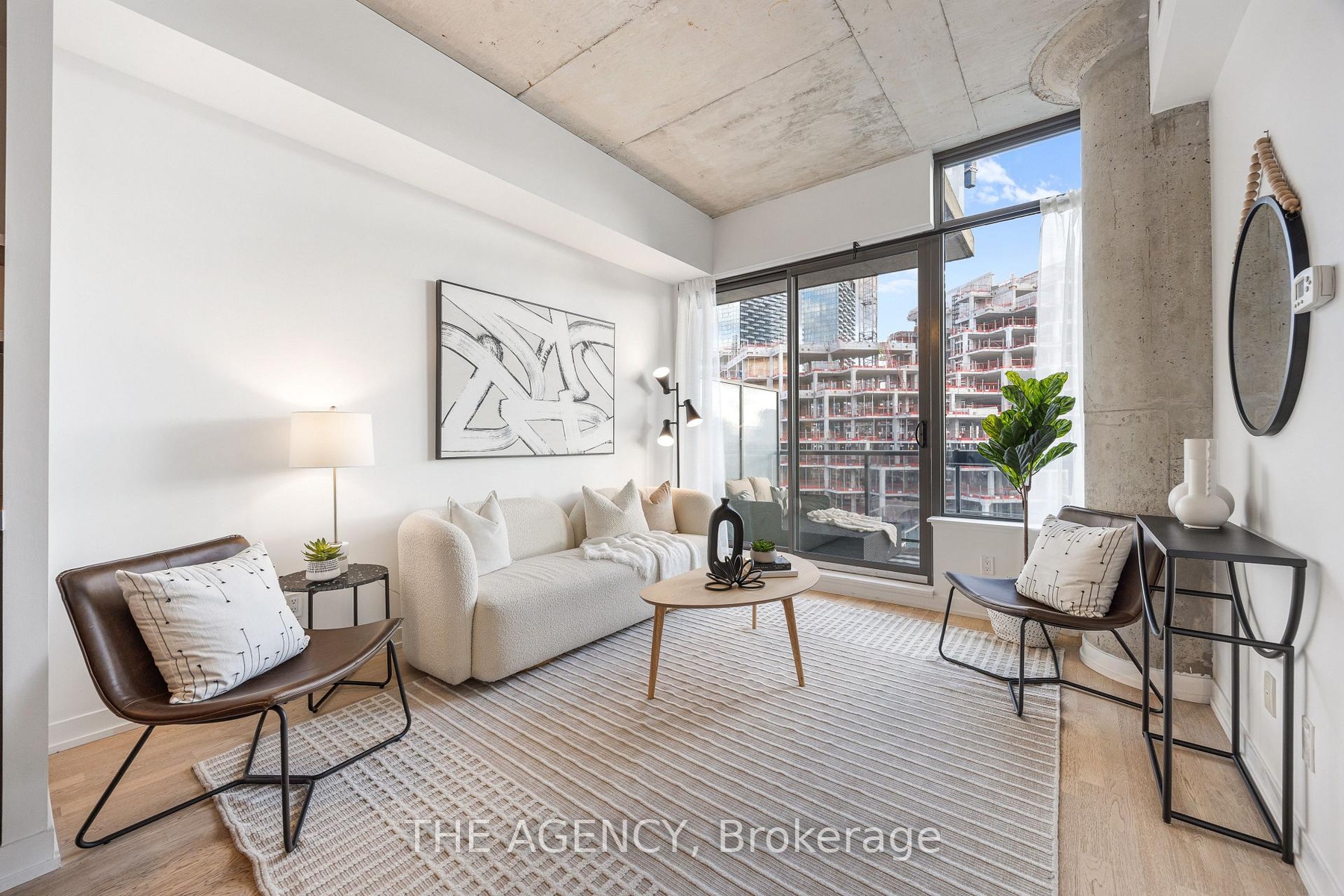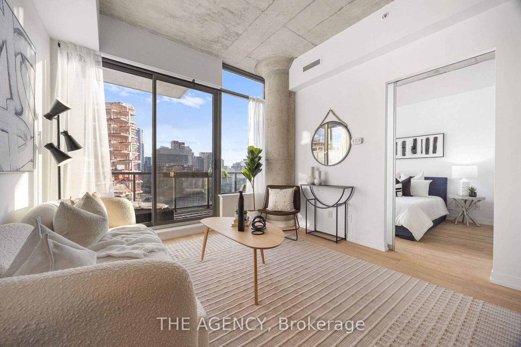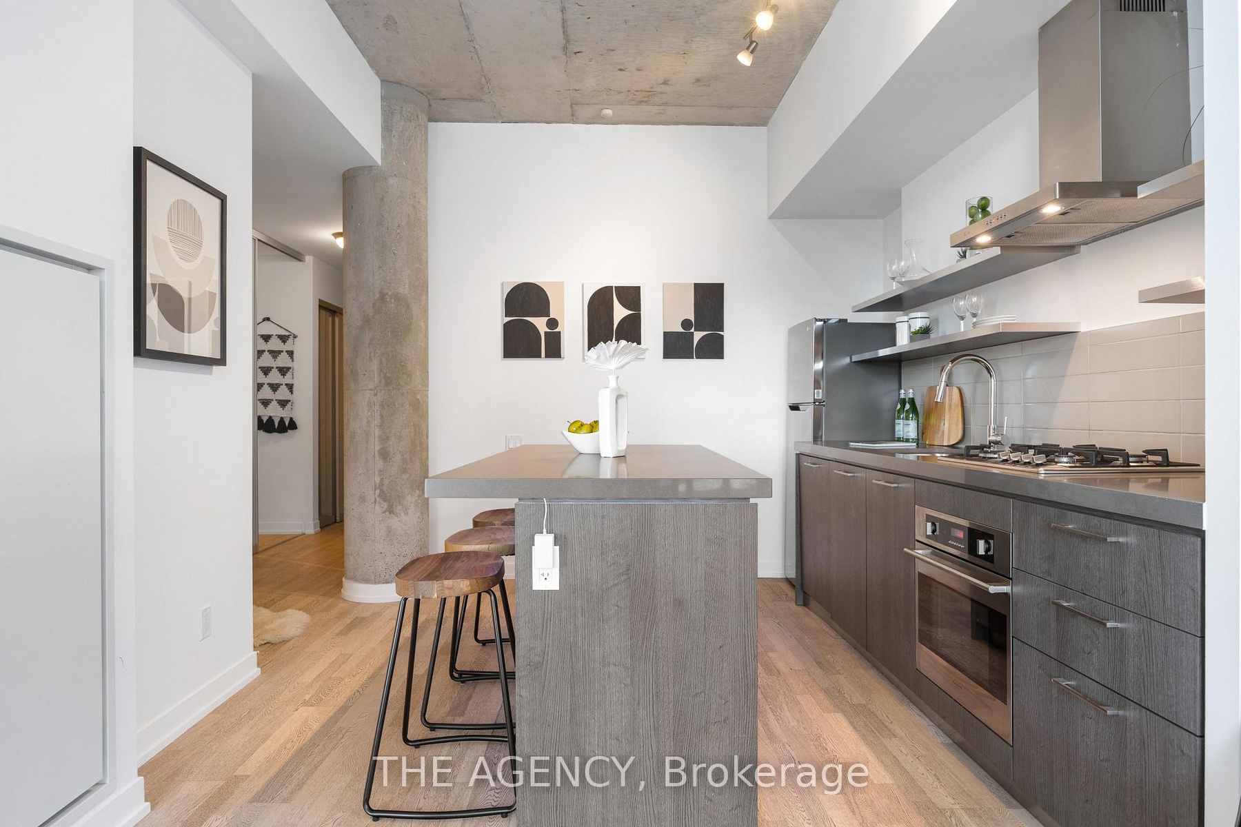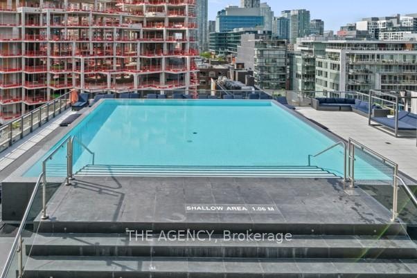 Available for short-term!!! Step into the epitome of King West luxury at Fashion House Condos! One of Downtown Toronto's most sought-after buildings, this boutique gem radiates sophistication from the entrance onward. Located atop 'The Keg Steakhouse' and 'Majesty's Pleasure' social beauty club, and across from the iconic 'Rodney's Oyster House' and 'Mademoiselle Raw Bar & Grill', this is Fashion District living at its finest-- surrounded by the vibrant nightlife and renowned culinary experiences of King West. This south-facing unit is flooded with natural light and boasts forever-unobstructed views of the district and the CN Tower, visible from both the balcony and bedroom. Enjoy open-concept, loft-style, living with 10' exposed concrete ceilings and pillars, and floor-to-ceiling windows. Step out onto a cabana-style balcony overlooking the buildings signature infinity pool- perfect for poolside vibes from the comfort of your home. With a gas BBQ hookup, deck tiles, and a luxurious round daybed, your outdoor escape awaits. Inside, discover a modern, open-concept interior with a practical layout. The European-style chef's kitchen features open top shelving, high-end stainless-steel appliances, a gas cooktop, and a spacious waterfall island. The primary bedroom, fits a king bed, offers a large walk-in closet and stunning views. The spacious den comfortably fits a queen-size bed and includes built-in storage. Both the bedroom and the den come with privacy sliding doors. The rarely available 5-piece bathroom provides the luxury of both a shower stall and a bathtub. Top-notch amenities include an infinity pool and cabanas connected to a state-of-the-art gym and a party room. TTC at your doorstep, 5 minutes by bike to the Toronto Waterfront and TikiTaxi station-- your King West oasis awaits! The unit comes with a parking spot and a locker, very close to each other. Heat and water included in the maintenance fees.