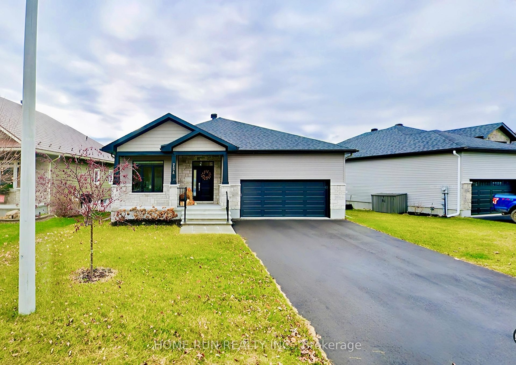 Stunning custom-built bungalow with walkout basement, perfectly positioned on a premium hilltop lot in Carps newest neighborhood. This 3-bedroom, 2-bathroom home features an open-concept design with numerous upgrades throughout. The bright and airy living room is enhanced by large windows and a striking gas fireplace. A chefs kitchen offers abundant cabinetry, quartz countertops, brand-new stainless steel appliances, and a spacious walk-in pantry, seamlessly overlooking the dining area.The primary suite boasts a spa-inspired 5-piece ensuite with a soaking tub, glass shower, and double vanity. Two additional main-floor bedrooms and a full bath provide ideal family living. A functional mudroom connects to the double garage and an extended driveway with parking for four vehicles. Enjoy summer evenings on the oversized patio. Professional landscaping for both front and back yards, including fencing, was completed last year. Located within walking distance to the Village of Carp, schools, and the newly developed Doug Rivington Park, this home combines modern luxury with community living at its best.