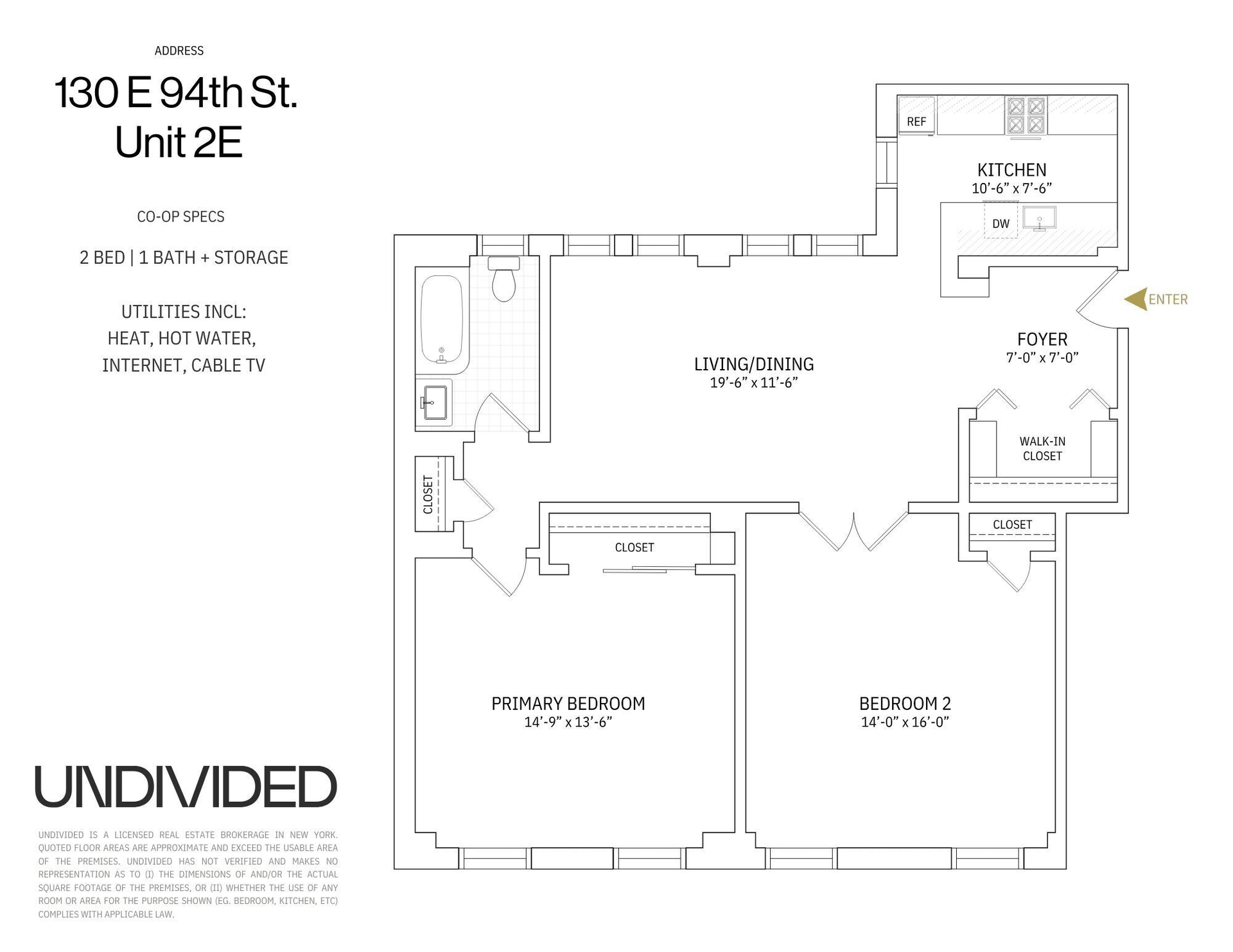 Rent includes heat, hot water, cable TV, and internet. Also includes storage area in basement.