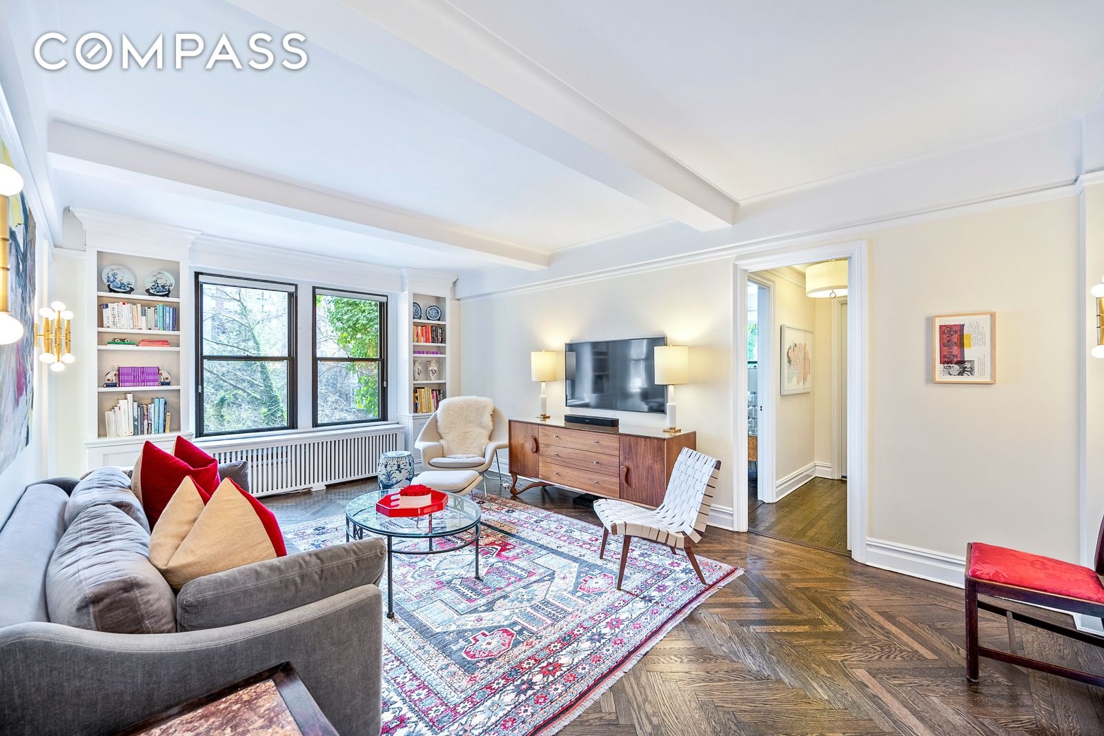 DescriptionAn elegant prewar full-service building located in the heart of the Upper East Side’s Gold Coast is home to a large, bright and quiet one bedroom home in mint condition with exquisite, old-world details and proportions throughout. Ideally located on a bucolic tree-lined block with brownstone, mansions and small apartment building with all the best the Upper East Side has to offer, including world-renowned museums, superb dining, city markets, boutique shopping, all within a few blocks from Central Park. Residing on the third floor of an extremely well-maintained coop, this serene residence offers spacious living room, windowed eat-in kitchen, tree-ensconced corner bedroom, large entry foyer, renovated bathroom and generous storage. Enjoy a generous 9-foot ceilings with sun-dappled south and east light and lush brownstone garden views from every room. Preserved architectural elements include beamed ceilings, hardwood floors (herringbone pattern in living room), pristine crown and baseboard moldings, built-in bookshelves and original door fixtures. Modern comforts include through wall air conditioning, renovated bath and kitchen, custom closet storage (including a large double walk-in closet and two entryway closets). Windowed eat-in kitchen offers ample cooking space and room to casually dine with custom cabinetry, granite countertops and backsplash, under counter lighting and appliances that include a gas range oven, built-in microwave, Miele dishwasher and a GE refrigerator.