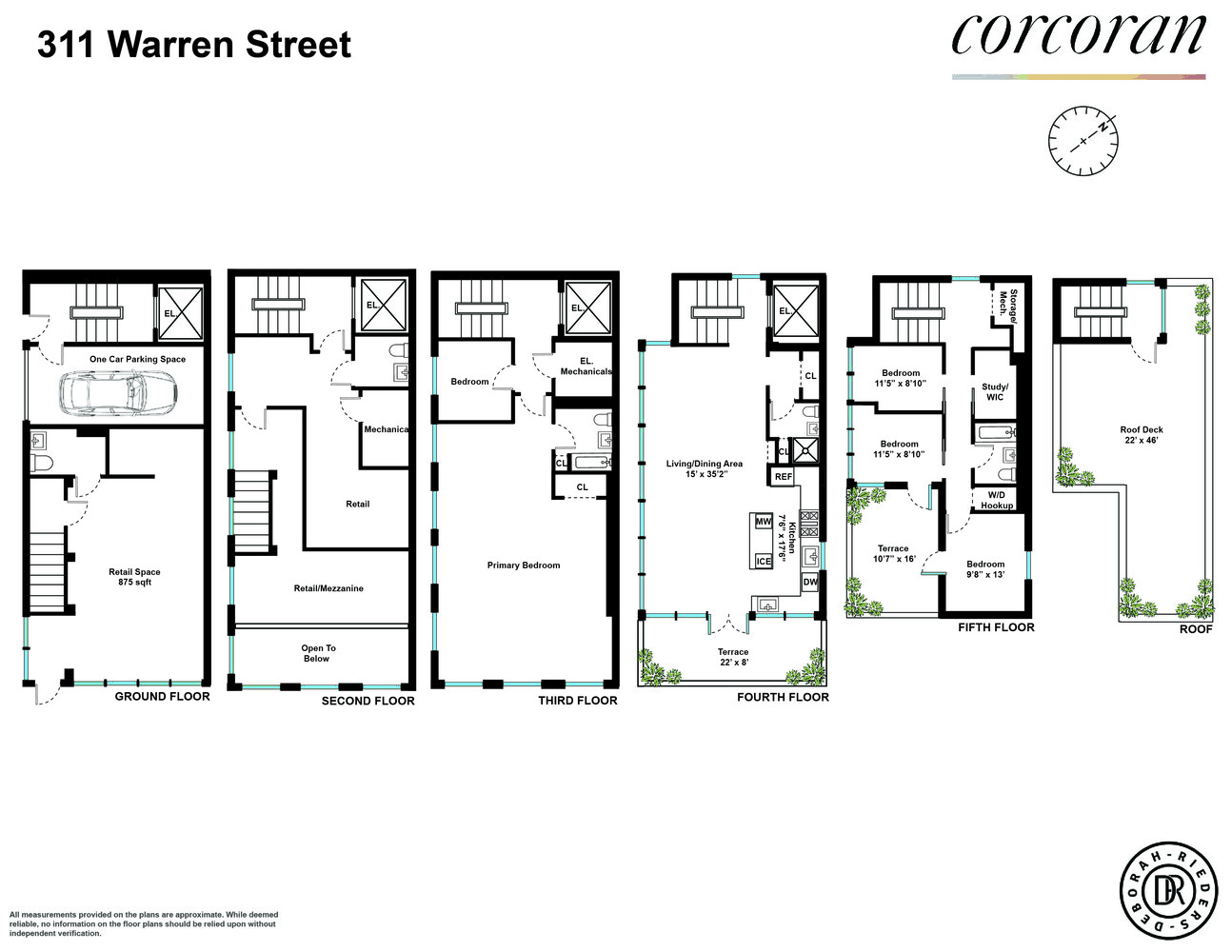 DescriptionA unique opportunity awaits in coveted Cobble Hill. 311 Warren Street is a 25' wide, 5-story architectural masterpiece with indoor parking, an elevator, two terraces and a roofdeck with panoramic views, a light-infused residential triplex on the upper floors, and a commercial duplex on the lower two levels. Delivered vacant, the new owner of this spectacular property can take all five floors for themselves, utilizing the lower levels for additional living and/or work space, or even potentially extend the garage into the commercial space and enjoy indoor parking for multiple cars.