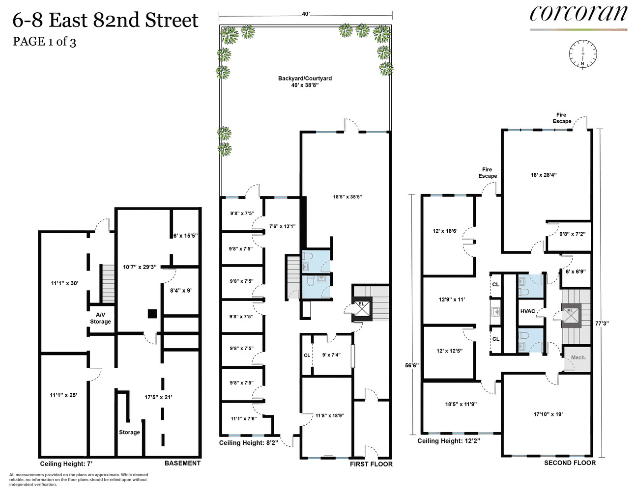Both properties are situated within an R8B and LH-1A zoning district, offering flexibility for restoration or reconfiguration. With a combined width of 41 feet, a depth of 102 feet, interior space exceeding 12,600 square feet, and approximately 3,898 square feet of remaining FAR, this offering provides an extraordinary canvas for a single grand residence, dual adjacent homes, or an institutional or cultural use.