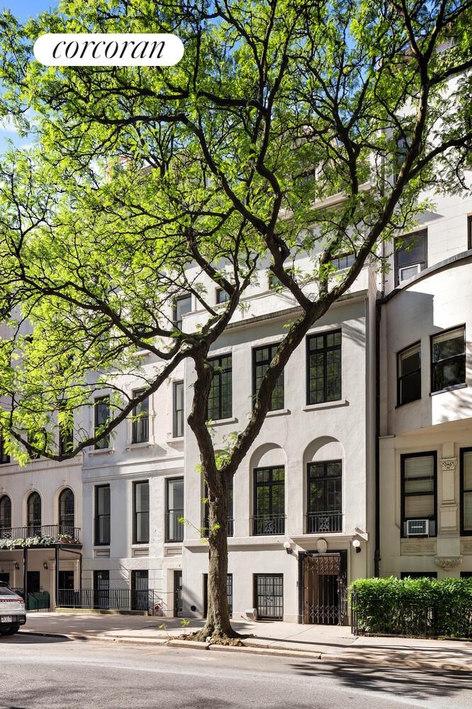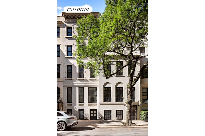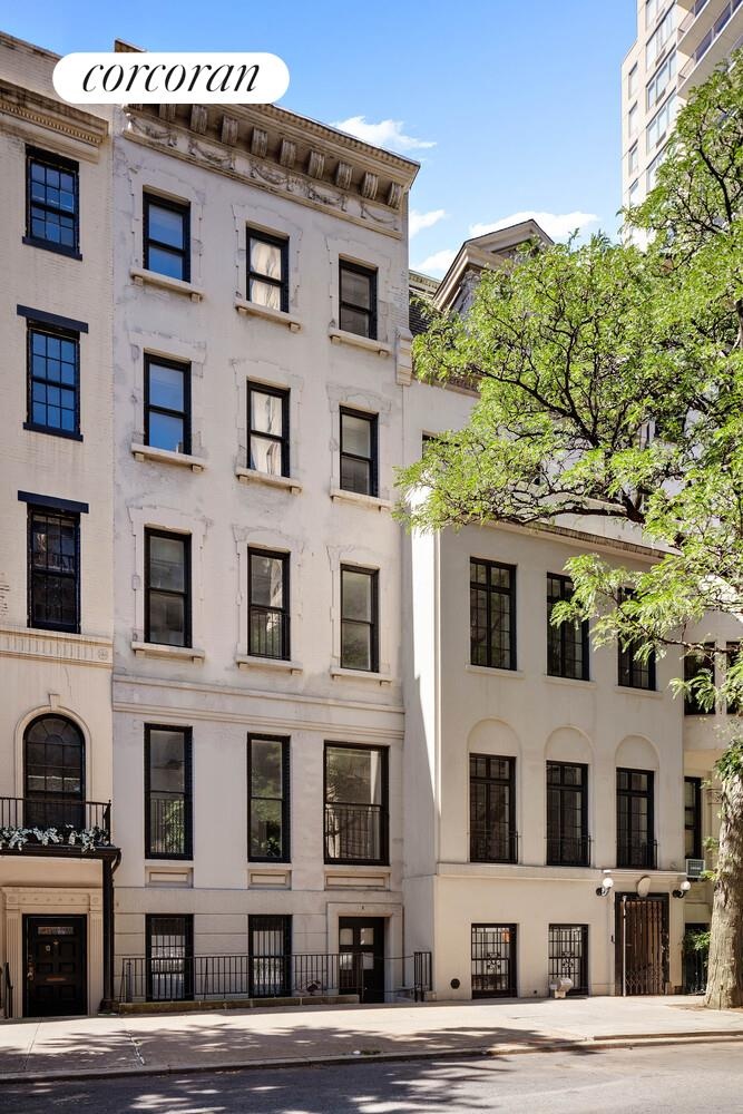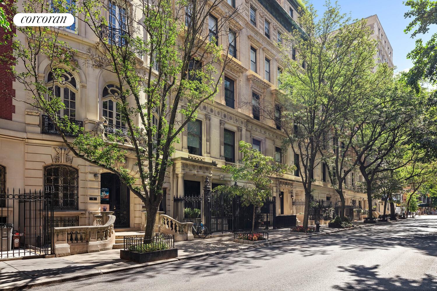 The two houses are internally connected on every level, including the cellar with an additional 2,300 square feet, creating a seamless flow throughout. A passenger elevator serves floors one through five, while a steel staircase rises from the first floor to the rooftop. Interiors are defined by soaring ceiling heights on every level, many rising above twelve feet, a rarity among Manhattan townhouses. With sunny southern exposures, the rooms are filled with natural light and enjoy beautiful views of the limestone Gilded Age mansions across the street. Enhancing this grandeur is a rare double-width, south-facing garden spanning approximately 1,270 square feet of outdoor space, offering abundant sunshine and a private retreat seldom available in this prime location.