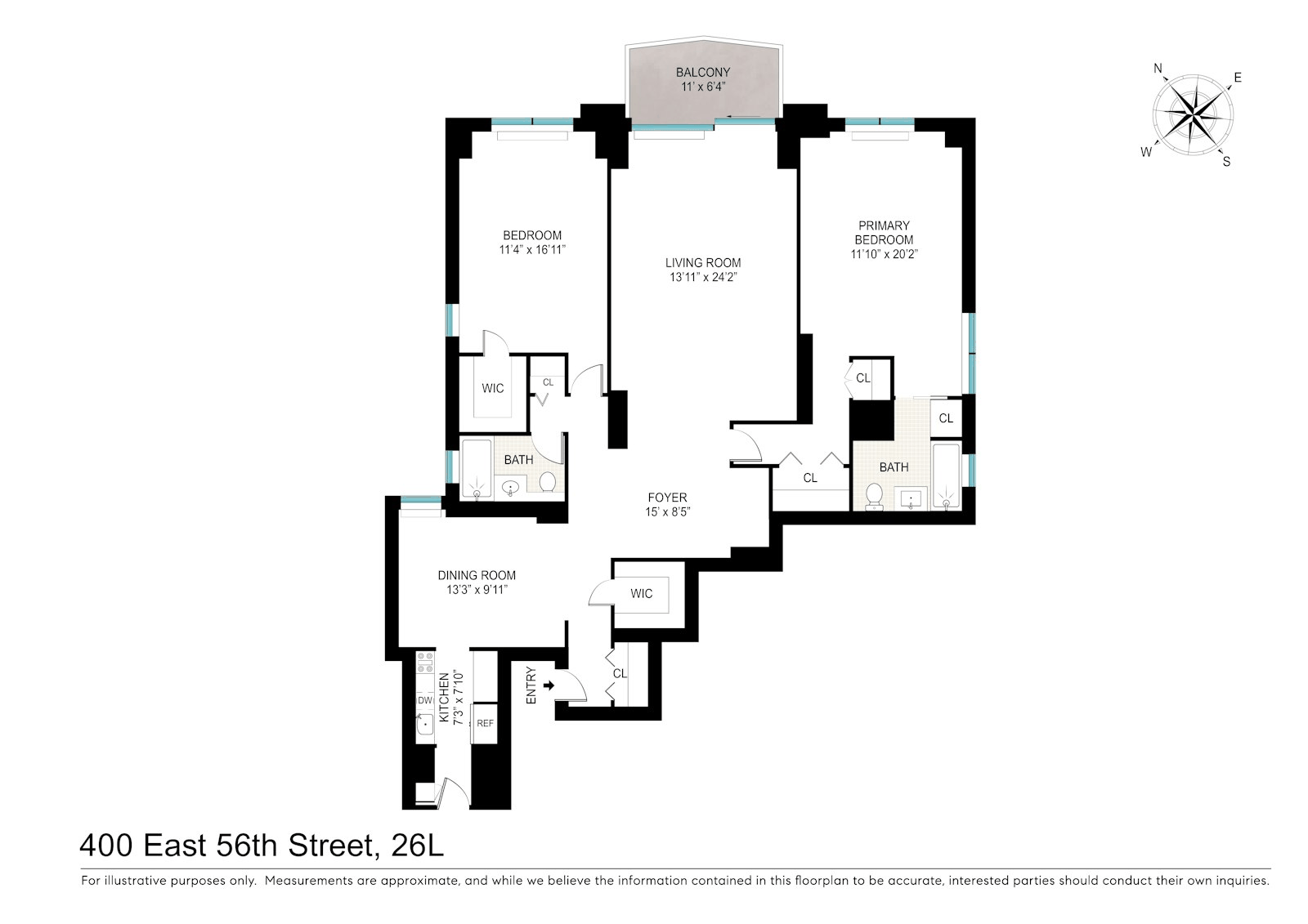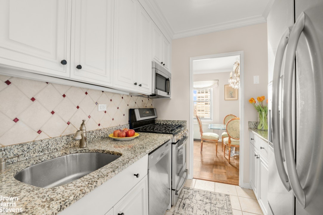 Storage abounds with seven oversized closets, including three walk-ins and a spacious 6" x 11" entry foyer. Lovely parquet floors run throughout the home, and a discreet service entrance adds to the functionality of this elegant layout.