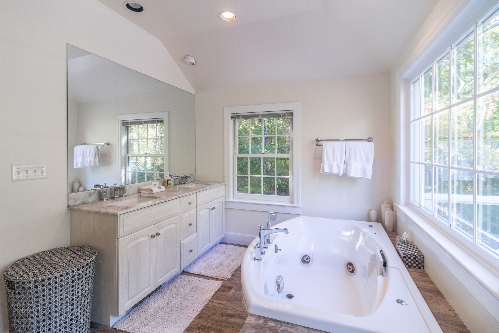 Two fireplaces, central air, jacuzzi, sauna, great deck and heated pool.