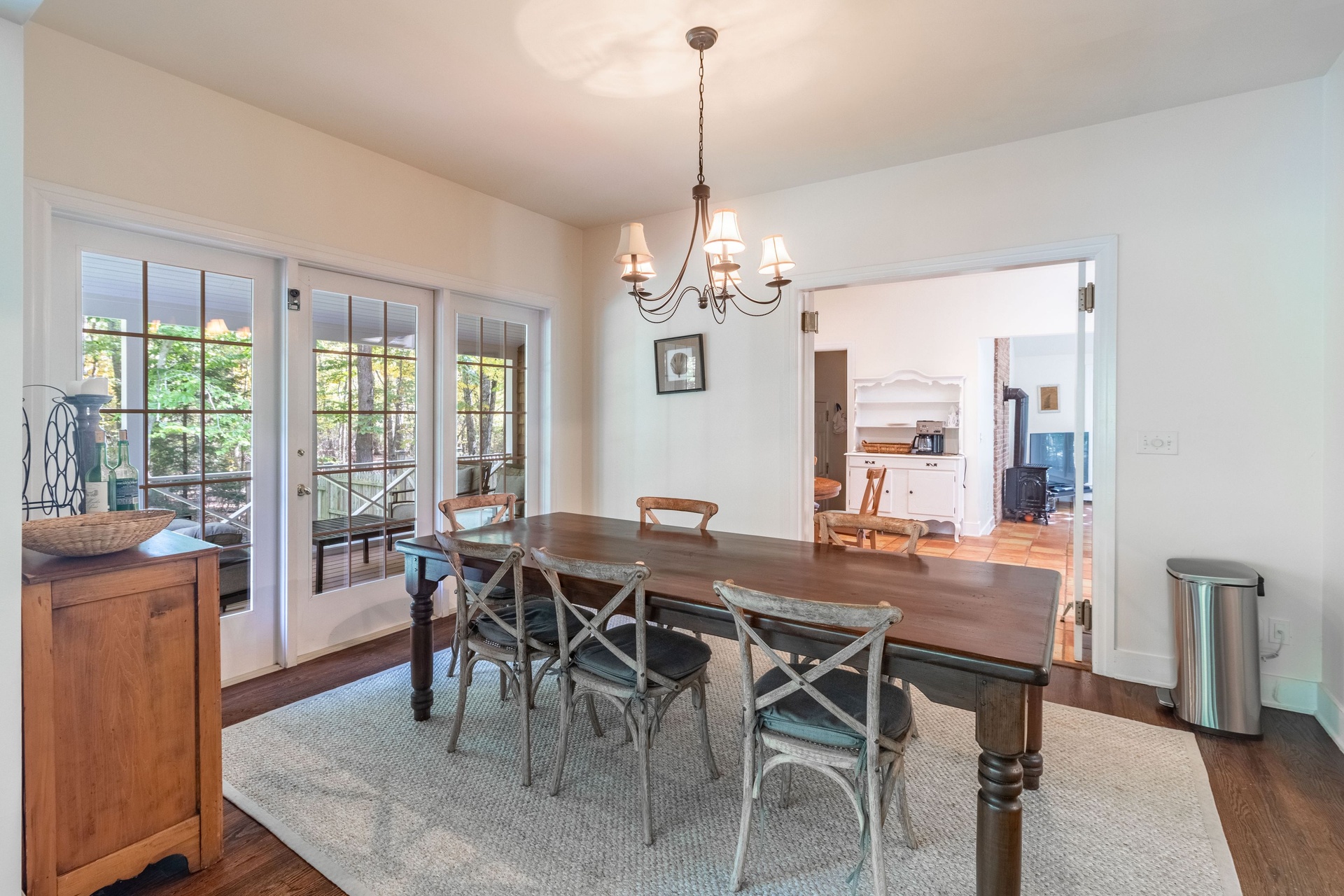 Separate living room, sun room formal dining room, eat in kitchen.