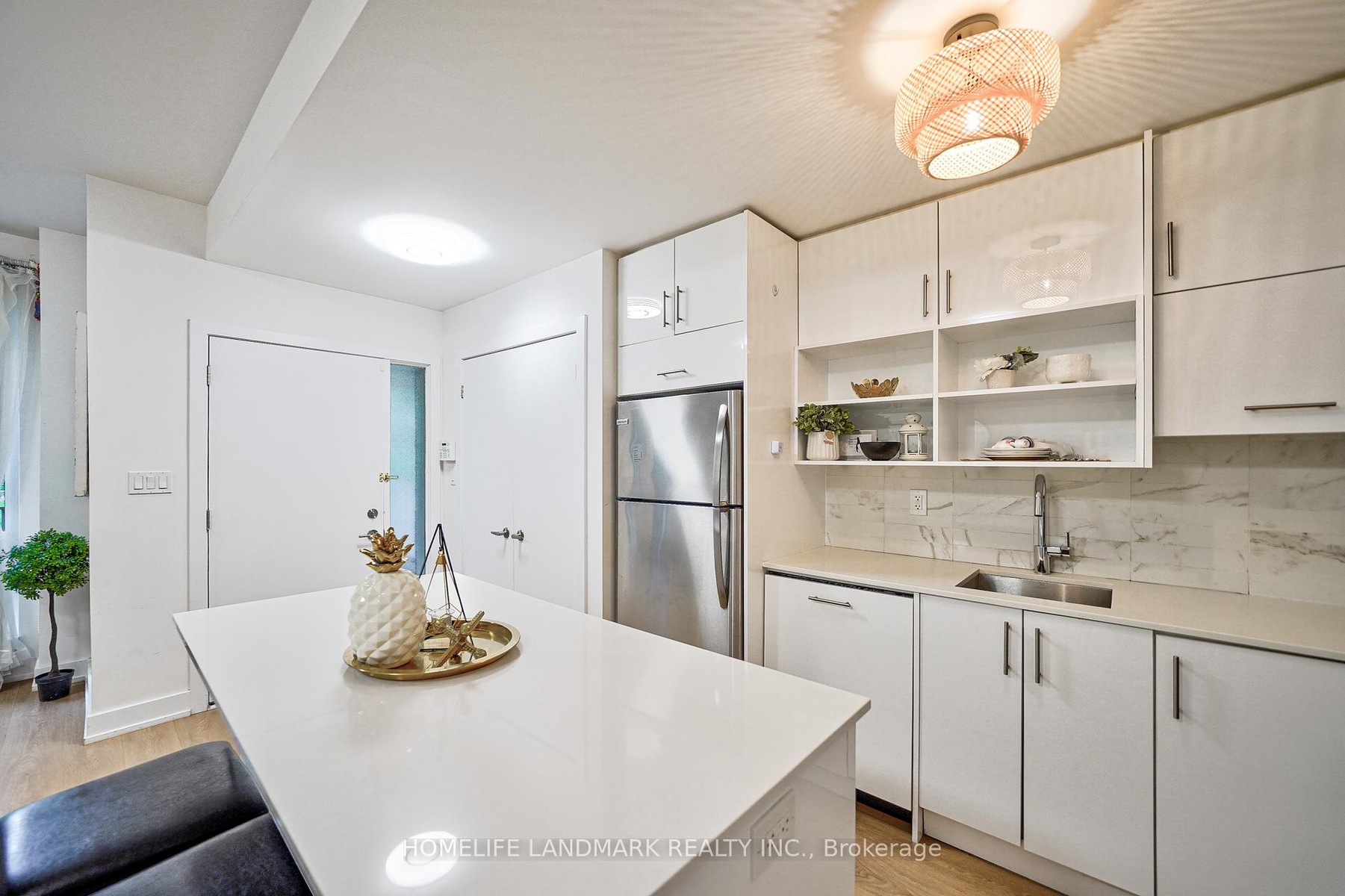 DescriptionDiscover this exceptional 3-bedroom + den condo townhouse featuring a fantastic layout and modern amenities. The home boasts laminate flooring throughout and a private patio overlooking a serene park, providing a perfect retreat. The living room's open-concept design, complemented by floor-to-ceiling windows, offers an abundance of natural sunlight.The contemporary kitchen is equipped with granite countertops, a large island, and high-end appliances, making it a chefs dream. The second floor includes two large bedrooms, a shared bathroom, and a laundry closet for convenience. The third floor is dedicated to the master bedroom, featuring a den, a walk-in closet, and an ensuite bathroom.Enjoy the convenience of being just steps away from Fairview Mall, the subway, T&T Supermarket and so much more. With easy access to DVP and Highway 401, commuting is a breeze. Located in a highly convenient area, this property offers the perfect blend of urban living and natural beauty.Amenities- Carpet Free