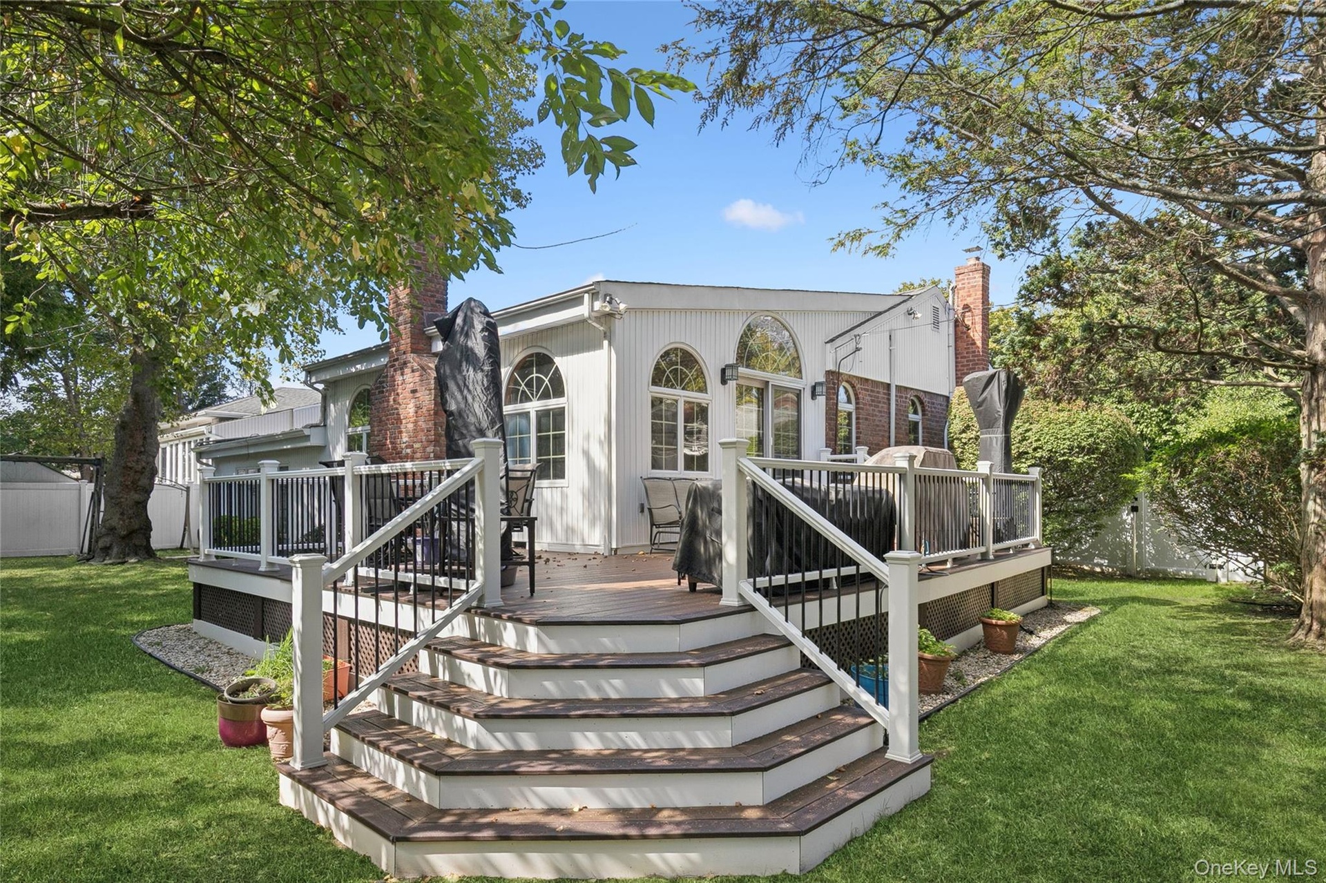 Beautifully Expanded Four-Bedroom Split in the Heart of Woodbury Hills with room for extended family. Welcome to this spacious and thoughtfully expanded four-bedroom, three full bath split-level home, perfectly situated in the desirable community of Woodbury Hills. Step inside to cathedral ceilings, a gourmet eat-in kitchen, complete with gas cooking and high-end appliances, ideal for preparing meals and gathering with family. The kitchen flows seamlessly into the dining area and a large family room with skylights cathedral ceiling and brick gas fireplace, creating an open and inviting layout that’s perfect for entertaining. Rich hardwood floors and Andersen windows run throughout, adding warmth and natural light to every space. Upstairs, you’ll find a private primary suite with its own full bath, along with two additional bedrooms and another full bathroom with jacuzzi bath and separate stall shower and closet space galore. The lower level offers even more flexibility with a bedroom, full bath, family room/den, and a second extension cathedral ceiling kitchen area — complete with a separate entrance, making it ideal for extended family or guests. In addition, the home features an ample basement with laundry, utilities, and storage, plus a one-car garage. Outdoors, enjoy a private backyard with a beautifully designed expansive no maintenance deck, perfect for relaxing or hosting gatherings in your own retreat. Don’t miss this opportunity to make this beautiful move-in ready home your own. With space, updates, and a prime location, it’s ready for its next owner to enjoy!