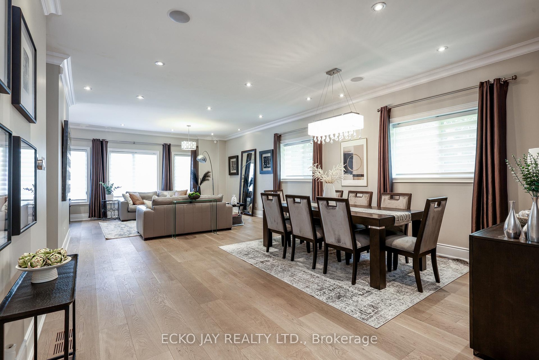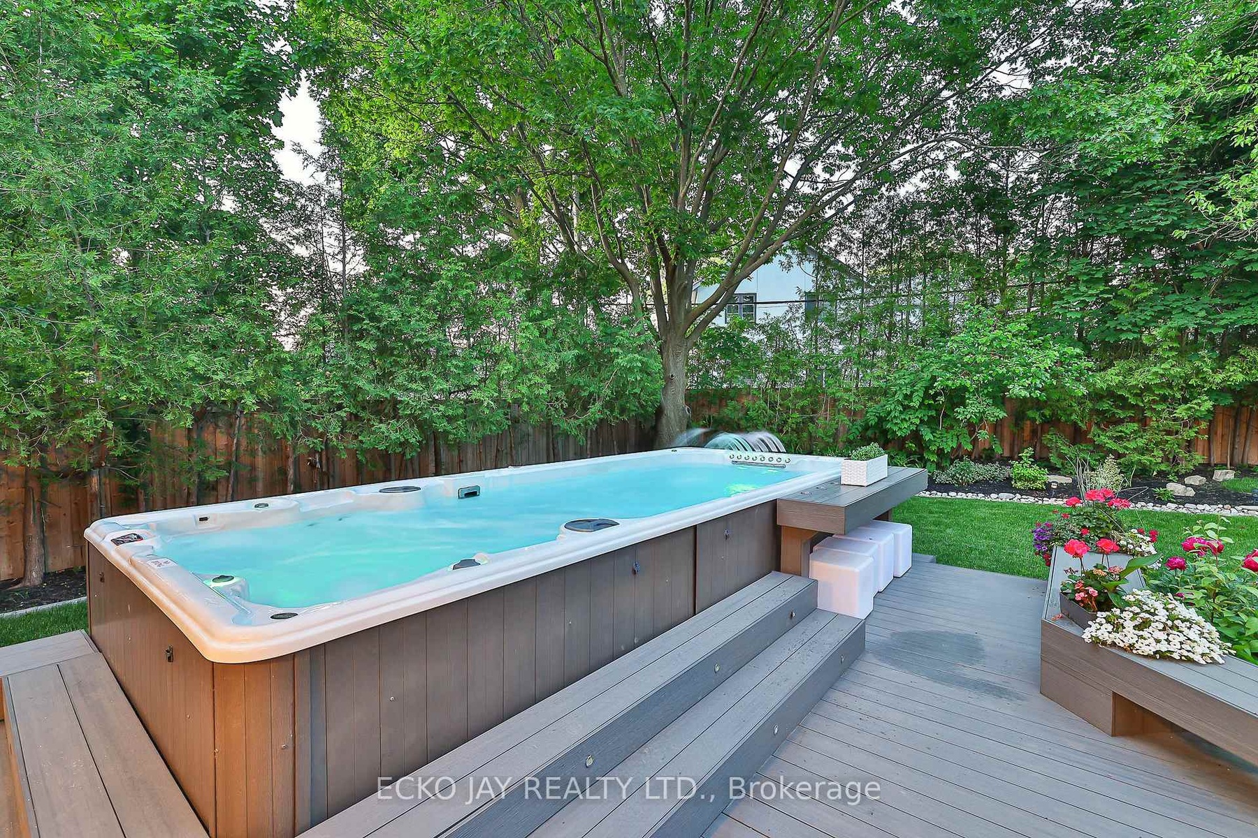 One of Don Mills' larger lots. Just Under 1/2 Acre. Edwards Gardens Park like setting. This rarely available, custom-designed, elegant, executive residence is situated on a premium, private, 18,068 sq. ft. lot within the exclusive Parkwoods-Donalda neighborhood. Nestled at the end of a tranquil cul-de-sac, this stunning two-storey home offers an expansive backyard that resembles a picturesque park, spanning almost half an acre. Custom built in 2013, this exquisite home features an inviting open-concept design, flooding every room with natural light highlighting the beautiful 8 inch White Oak hardwood floors. The exterior blends stone and stucco, complemented by charming Juliette balconies. Inside, you will find over 5,000 square feet of luxurious living space plus lower level and an open-to-above foyer and family room. Adjustable lighting and a built-in entertainment system enhance the ambiance for any mood or occasion. This residence boasts 5 spacious bedrooms, each with ample walk-in closets, and 6 bathrooms, ensuring comfort and elegance in every corner. The gourmet kitchen, complete with a gas stove, granite countertops, and a sizable island, is perfect for culinary enthusiasts. A large wall of windows on the back in kitchen/family room overlooks the gorgeous backyard. Your personal oasis awaits on this incredible lot, offering limitless possibilities for outdoor adventures and entertainment. Extras include a 19-foot Hydropool Aquasport Swim Spa built into a custom composite deck and a 3-car tandem garage. Conveniently located near all amenities and major highways (401, DVP, 404), this home offers easy access to the Donalda Golf Course, Brookbanks Park Trail, public, private, and French Immersion schools, as well as the bustling shops and restaurants of Don Mills. This property is truly a must-see!
