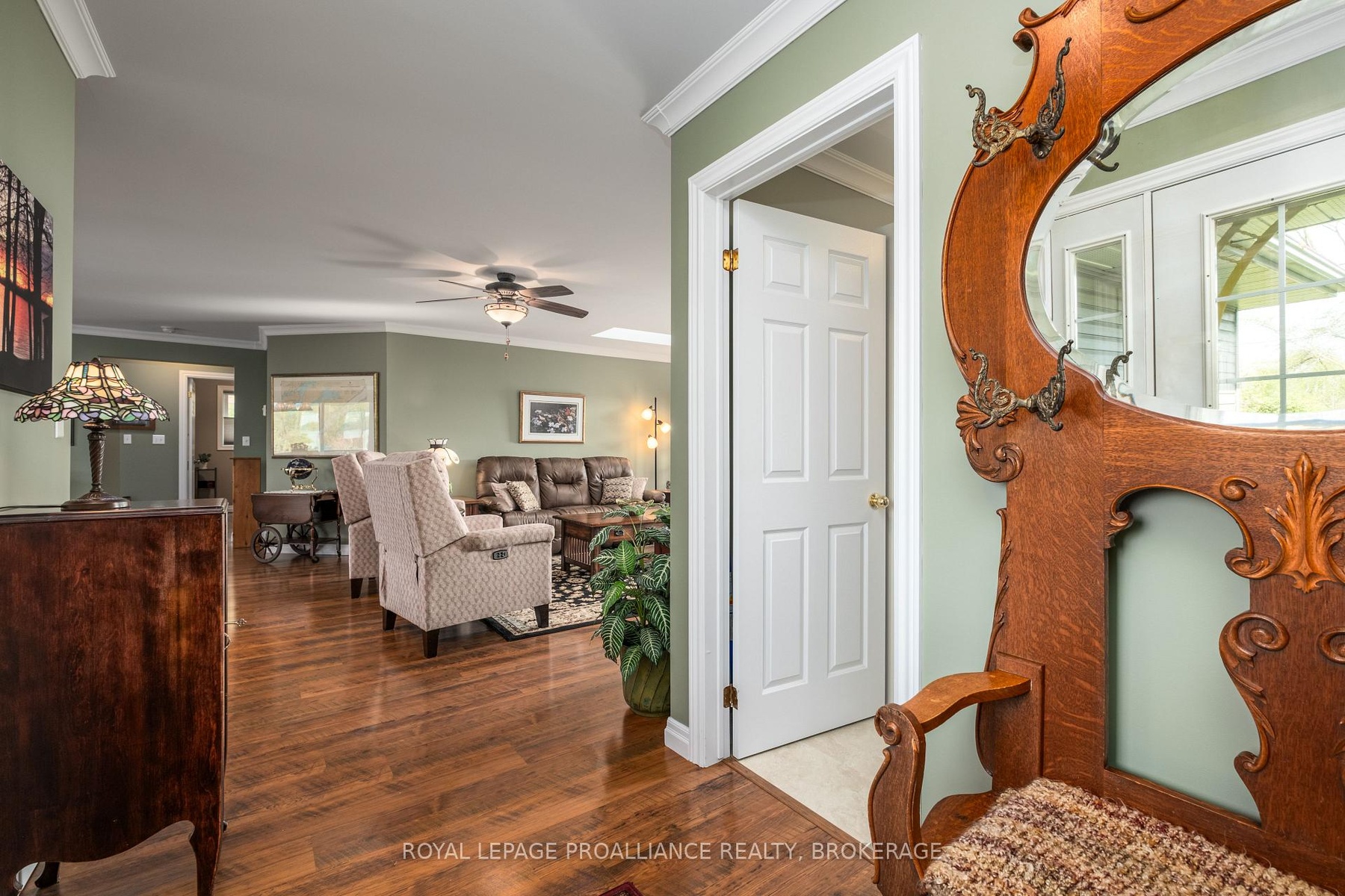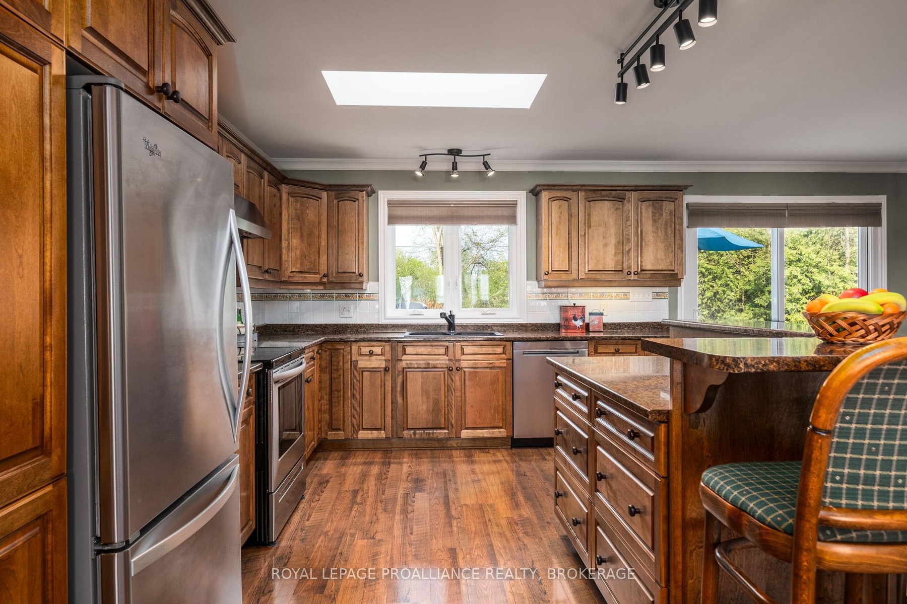 DescriptionHave you always dreamed of sitting on your back deck at the end of a hot summer day enjoying a breeze off the water as you watch the sunset over the bay? Whether you are looking for that perfect weekend escape, a quiet place to retire, or a low maintenance waterfront home, you need not look further. This 2 bedroom, 2 bathroom bungalow checks all the boxes. As you come inside from the insulated 2-bay garage you are welcomed by a meticulously maintained open concept living space with south west waterfront views visible from nearly every corner of the home. This home has had just one owner since it was finished construction in 1998 and they have thought of everything! Additional features include a boathouse with a metal roof sitting on poured concrete with marine rail for easy boat storage, water spigots at the boathouse, garage and roadside shed for your garden and lawn care that pulls directly from the lake, a 5,000 watt generator wired to the home in case of emergencies and more. Don't miss the opportunity to watch every sunset of the year over the Bay of Quinte from your new home!Amenities- Auto Garage Door Remote