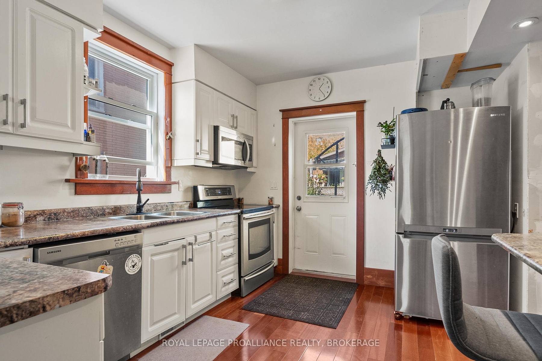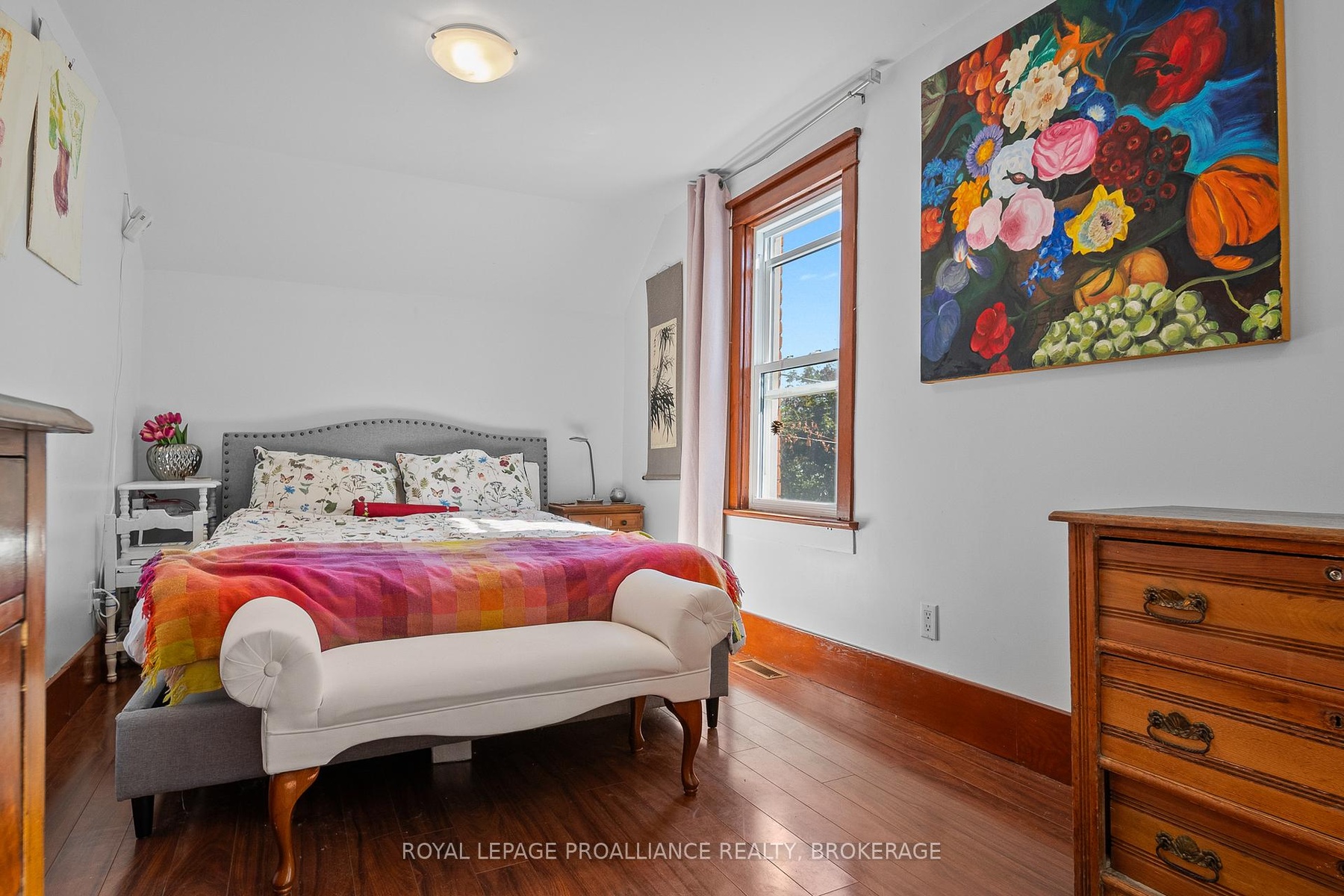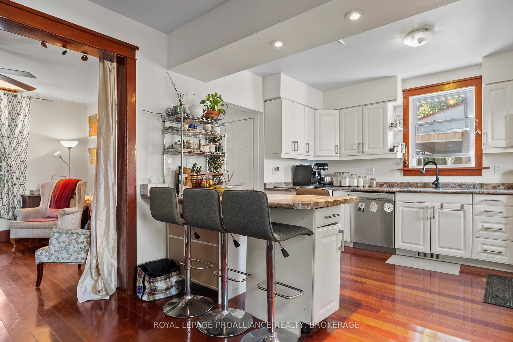 DescriptionThis charming 2-storey in Williamsville blends original character with modern updates. A welcoming front porch leads into spacious living and dining areas with cherry hardwood floors, flowing to an open-concept kitchen and elevated deck. Upstairs features an oversized primary bedroom, updated bath with in-floor radiant heat, and convenient laundry. A large loft offers extra storage or future potential, while a separate side entrance with full bath creates income opportunity. All within walking distance to shops, services, and Rideau Public School/École Rideau.Amenities- Deck
