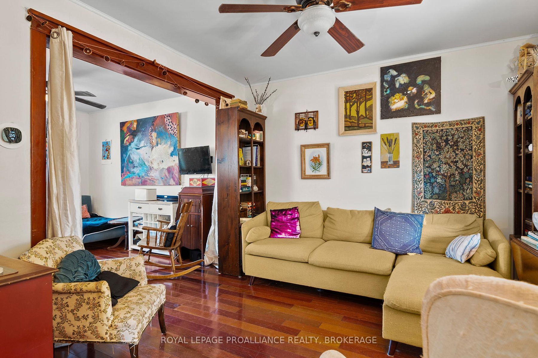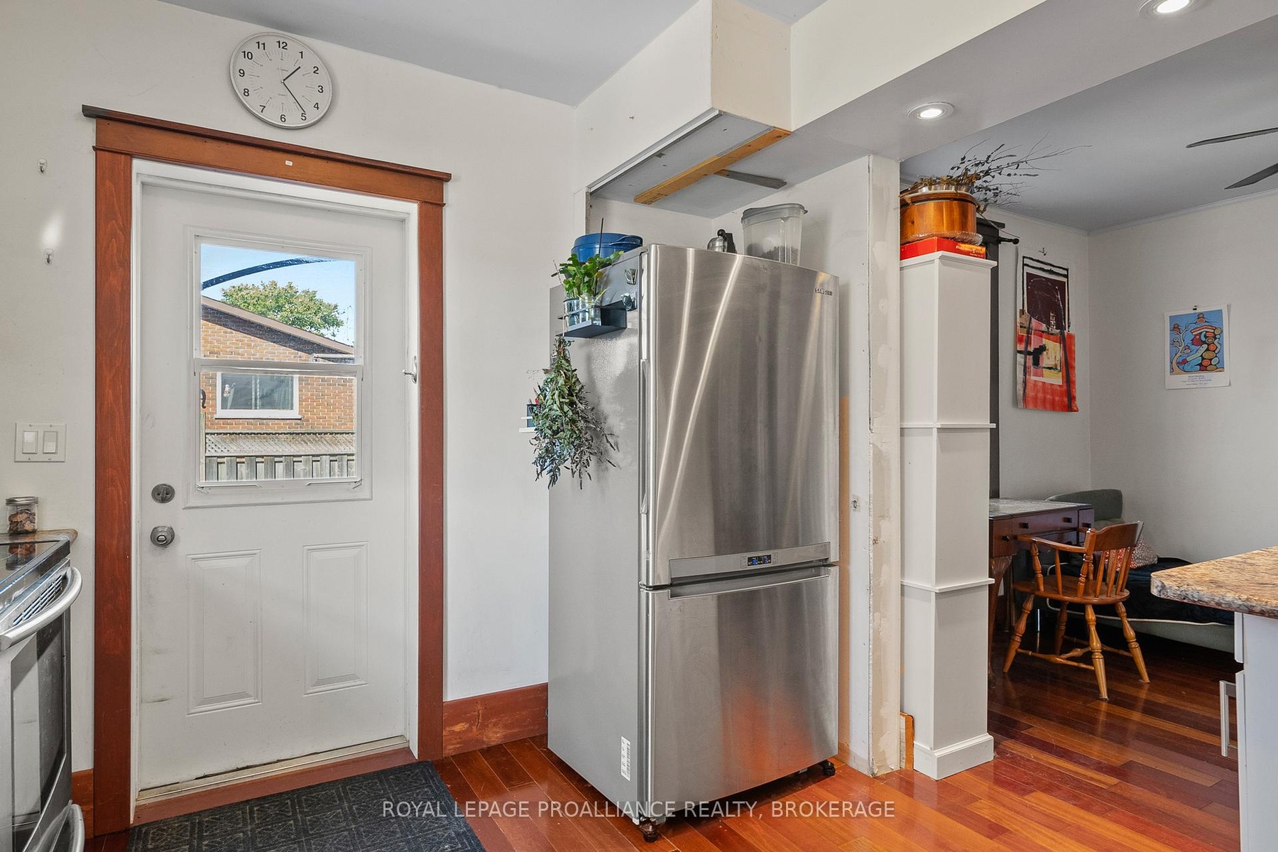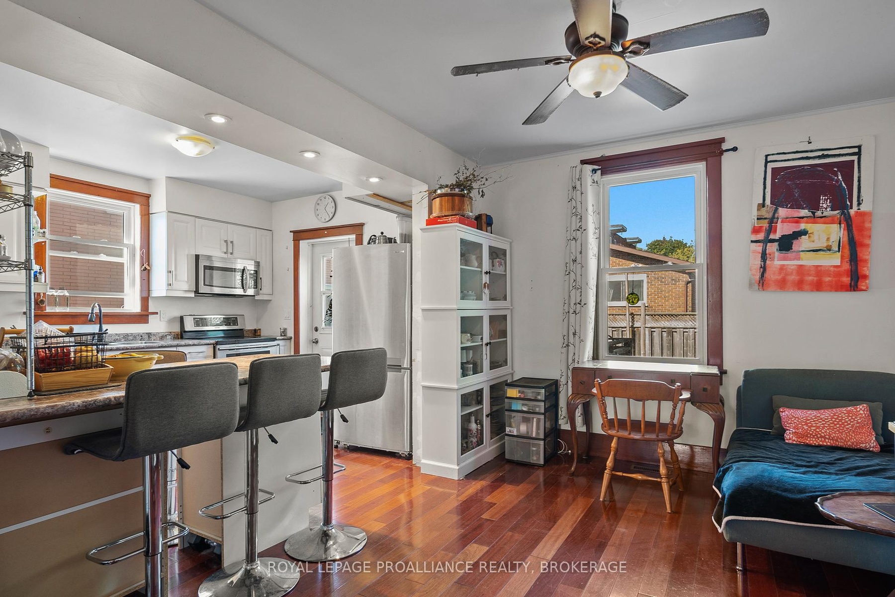 DescriptionThis charming 2-storey in Williamsville blends original character with modern updates. A welcoming front porch leads into spacious living and dining areas with cherry hardwood floors, flowing to an open-concept kitchen and elevated deck. Upstairs features an oversized primary bedroom, updated bath with in-floor radiant heat, and convenient laundry. A large loft offers extra storage or future potential, while a separate side entrance with full bath creates income opportunity. All within walking distance to shops, services, and Rideau Public School/École Rideau.Amenities- Deck