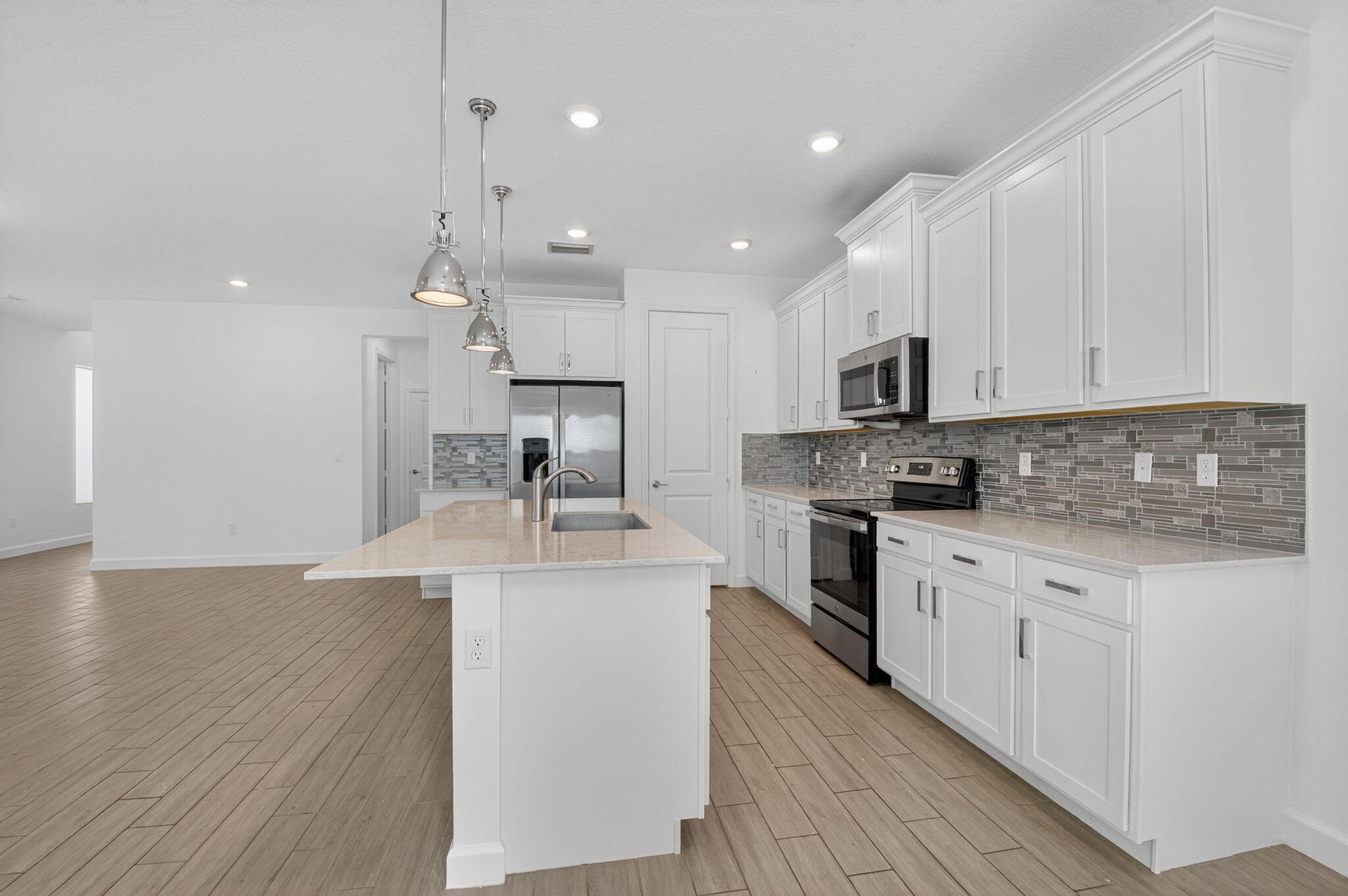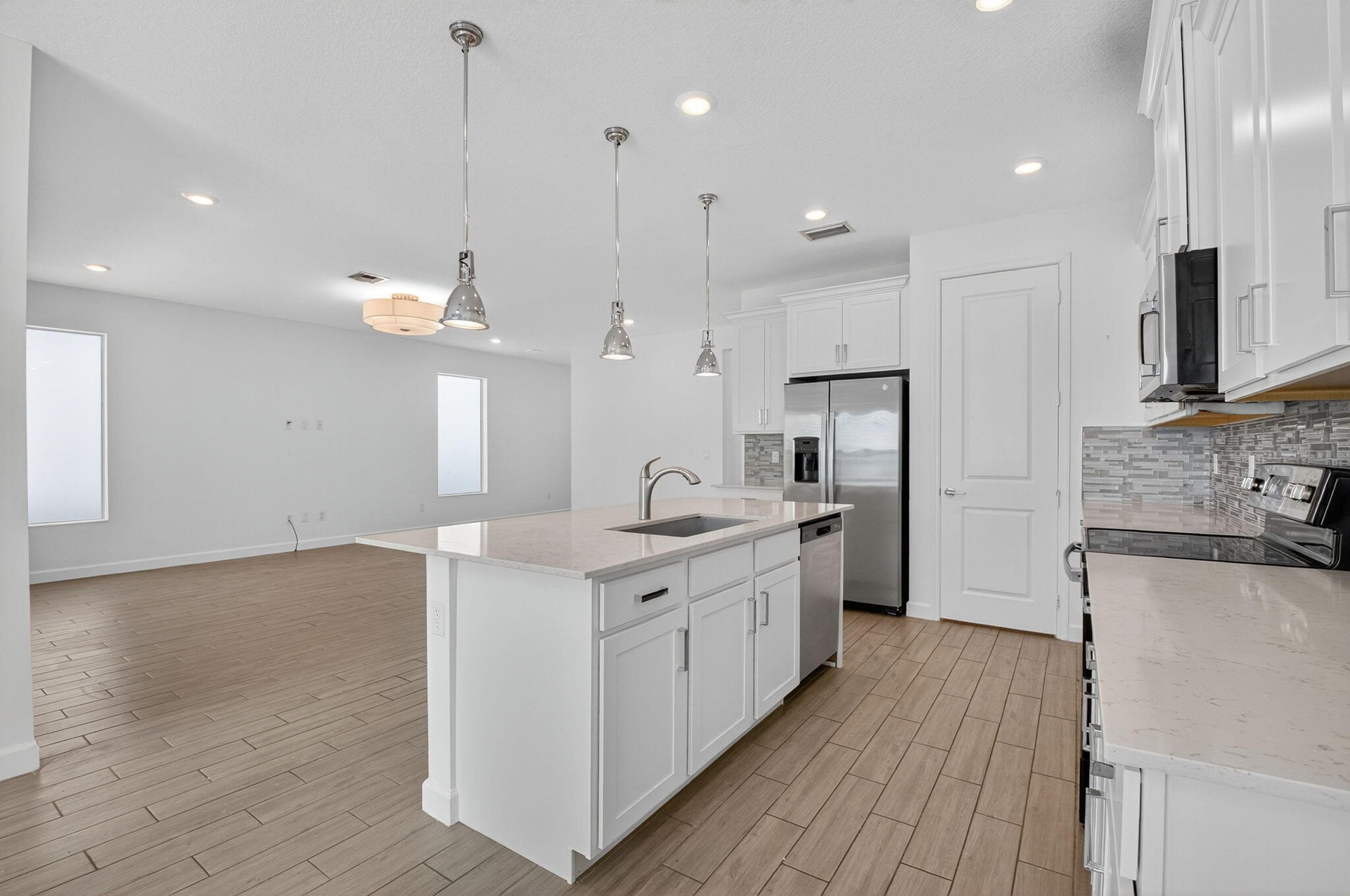 Brand new 5 bed, 3 bath single family home in Banyan Court, featuring a bright and open floor plan with impact windows and doors.