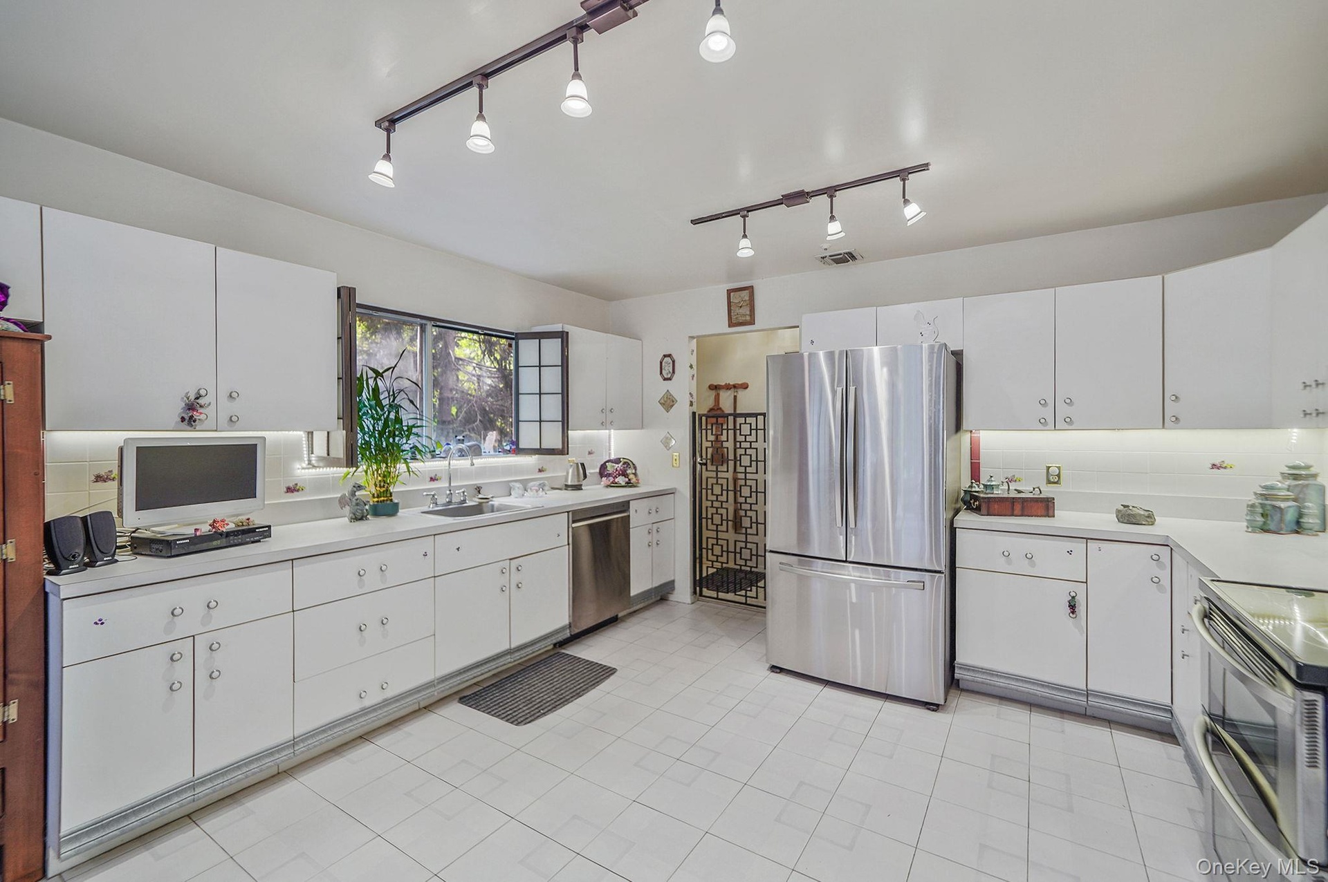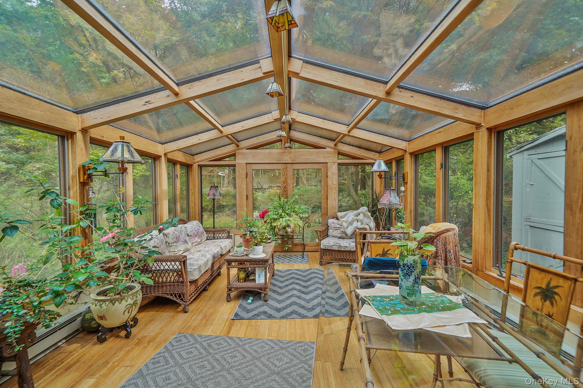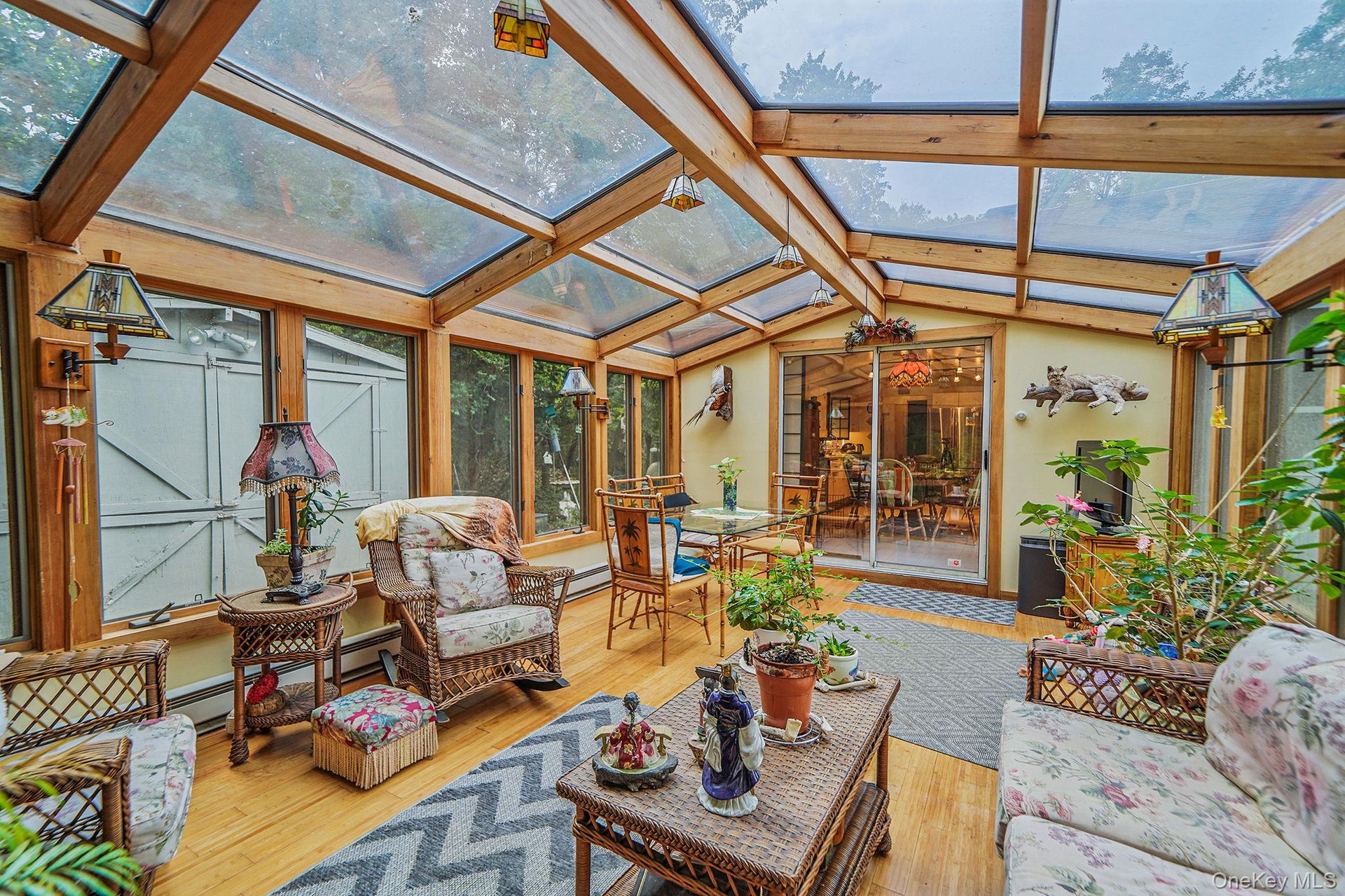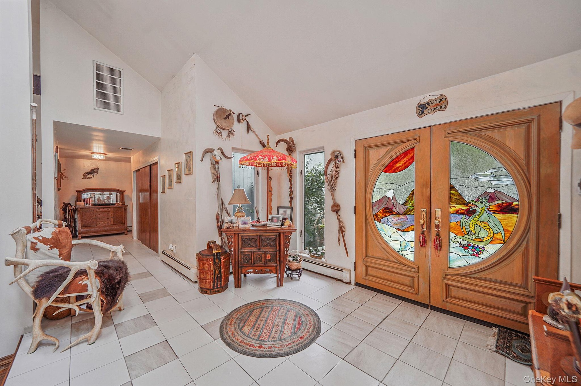 DescriptionWelcome to this exceptional Fort Salonga residence offering over 4,000 sq ft of living space on a private, wooded acre. This 4-bedroom (with option for a 5th) home showcases an open-concept dining room, living room, and elegant sitting room accented by a piano, all enhanced by soaring ceilings, skylights, and walls of windows that fill the home with natural light. The primary suite boasts a walk-in closet, jacuzzi tub, and glass shower. Enjoy year-round relaxation in the heated conservatory and unwind in the unique two-level sauna. Additional highlights include hardwood and tile floors, stainless steel appliances, custom stained-glass entry doors, a 2-car garage with heated storage, stone terraces, and a basement. Modern comforts include 3 heating zones, dimmable lighting, whole house alarm system, and a whole-house Kohler generator. With over an acre of privacy, handmade stone walls, a dog run with barn, and ample parking, this property is a rare North Shore retreat.Amenities- Bath