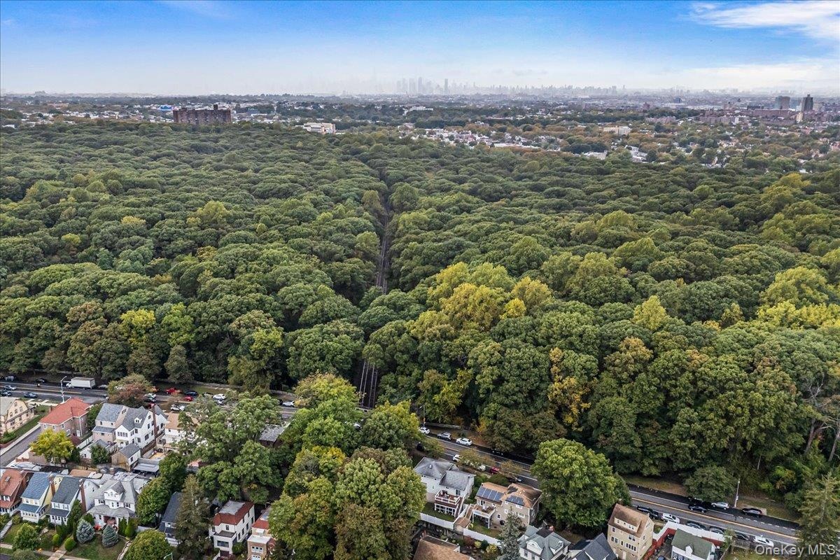 - Aerial view of property's location featuring nearby suburban area and a forest