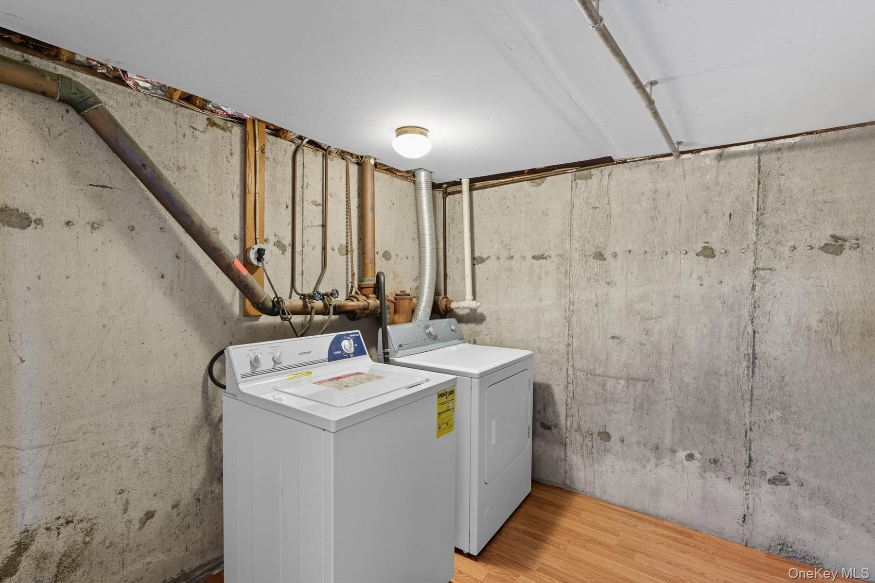 - Basement with recessed lighting, light wood-style flooring, and a baseboard radiator