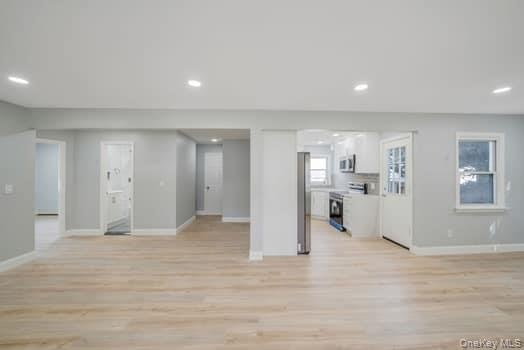 - Unfurnished living room featuring recessed lighting and light wood-style floors