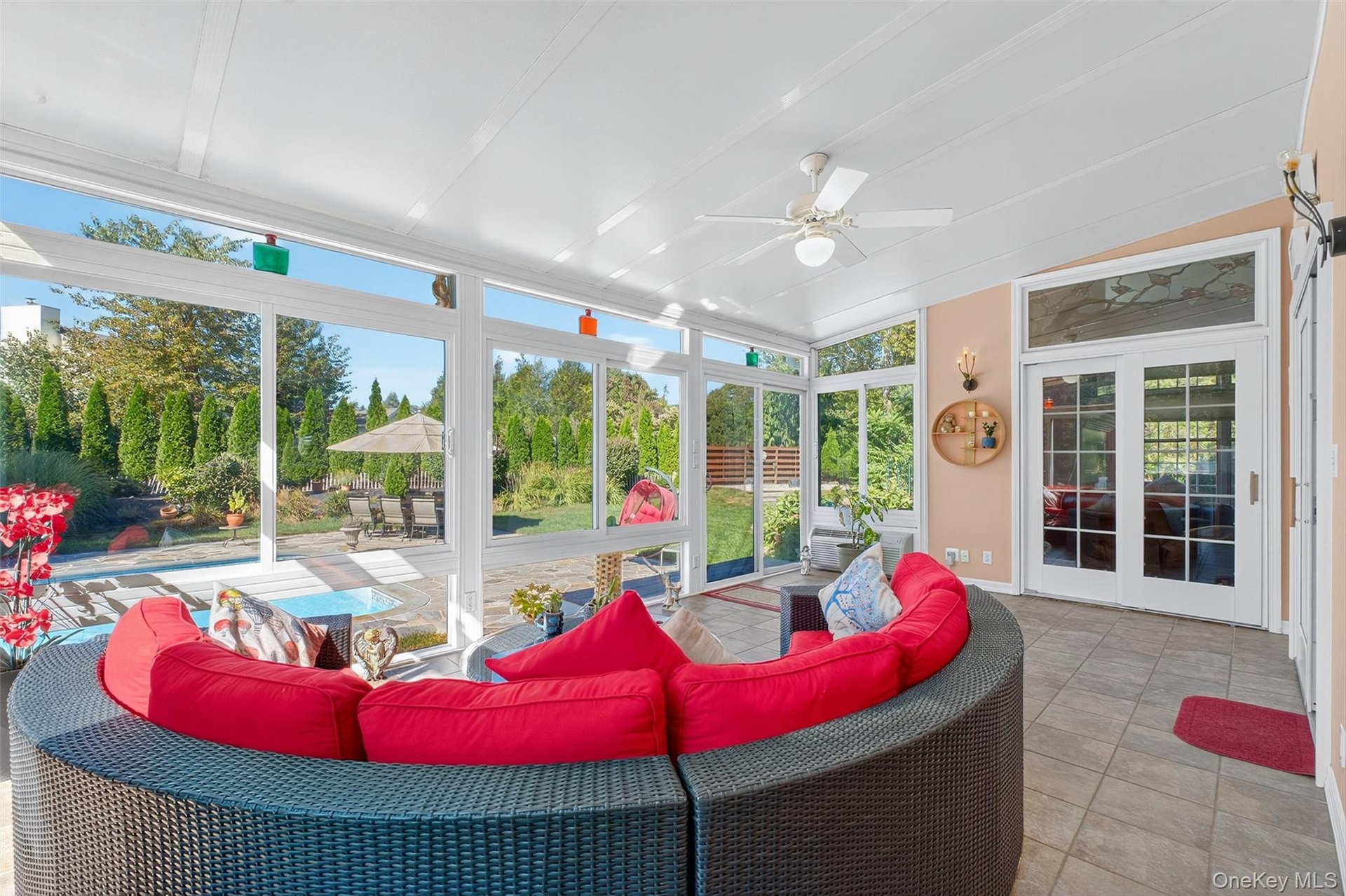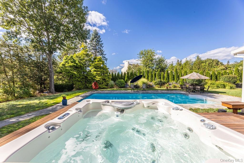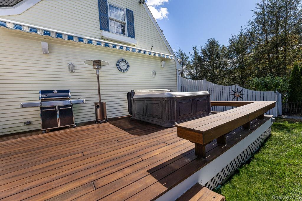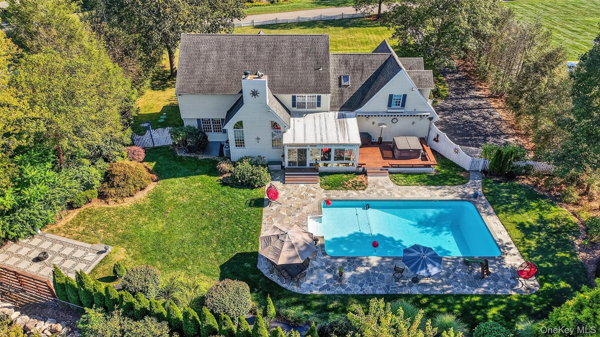 Wow...You will fall in love as you approach! Classic Colonial with White Picket Fence and Rocking Chair Front Porch. Relax on the porch for morning coffee or drinks before dinner. Quintessential. Serene, peaceful and located in one of Somers' most desired neighborhoods. Traditional layout offers kitchen that flows to family room with fireplace, butler's pantry with door out, dining room and living room with propane fireplace. Pellet stove in family room adds energy efficient warmth. Upstairs is graced with oversized master bedroom with master bath and walk in closet, 2 generously sized bedrooms and an enormous bedroom with en suite full bath that could act as a flexible space to suit your needs. Need more space? Have fun in the finished basement with recreation room and additional room with lots of possibilities...office? gym? Large four season sun room with surround windows is a perfect place to dine, read, relax and welcomes you to the back yard. The fenced back yard is surrounded with emerald green arbovitaes offering total privacy. Hop in the inground pool, or in the hot tub on mahogany deck or roast marshmallows around the fire pit on separate patio. Fun for all...you won't want to leave! Location, location! This home is nestled in a quiet neighborhood but has easy access to Yorktown and the Taconic Pkwy as well as Katonah, Metro North and Route 684. Convenient to shopping and restaurants galore! Have it All!