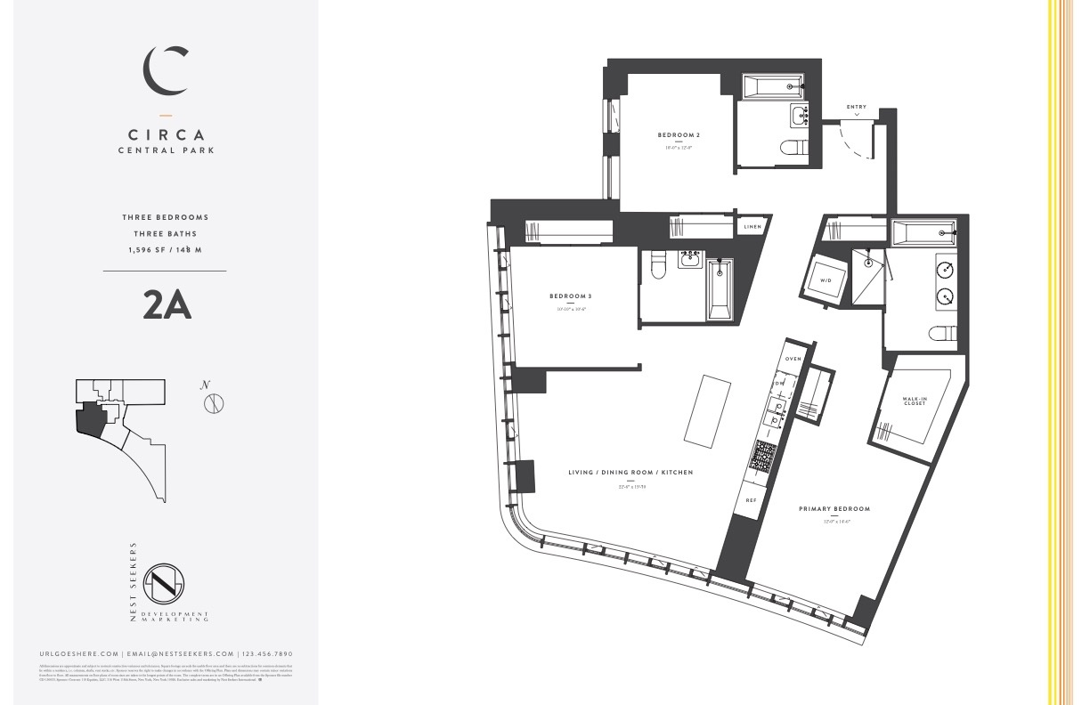 Featuring sweeping views of Central Park and the Upper West Side, residence 2A is an expansive three bedroom, three bathroom home with unobstructed city views. Oversized windows and high ceilings create an exceptional blend of space and light while luxurious details such as brushed-oak flooring and large walk-in closets complete this exceptional home.