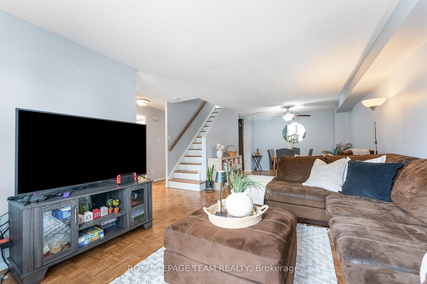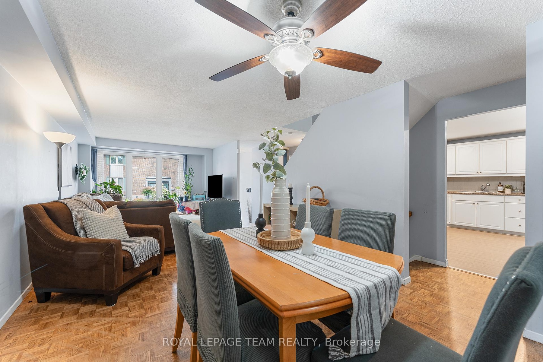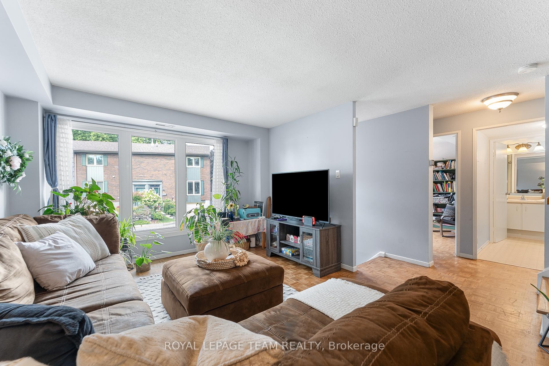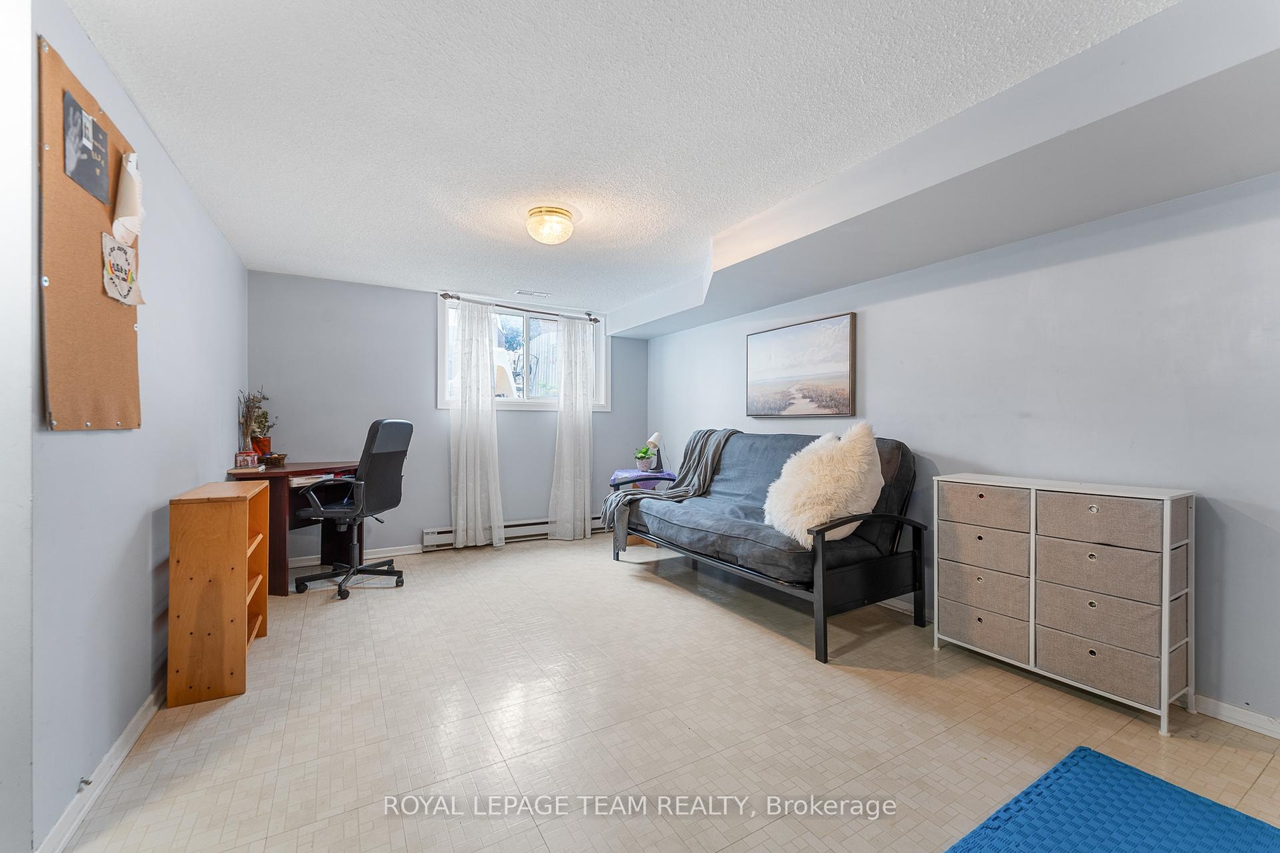 Tucked away on a quiet cul-de-sac, this end-unit condo townhome offers beautiful views of Mooneys Bay and breathtaking sunsets. The main floor features a bright open-concept living and dining area with oversized windows, a spacious eat-in kitchen, convenient laundry, powder room, and a versatile bedroom or office.Upstairs, you'll find two large bedrooms and a 4-piece bath, while the lower level provides a generous recreation room perfect for family living. A private front patio creates an ideal space for outdoor entertaining, and residents can enjoy a stunning outdoor pool overlooking the Rideau River.With direct access to Mooneys Bay Park, the beach, and nearby bike trails, plus close proximity to Carleton University, the LRT and downtown, this home combines comfort, location, and lifestyle all at an exceptional value. Ample Visitor Parking. Roof (2023) Furnace(2020) Windows (replaced before 2015)