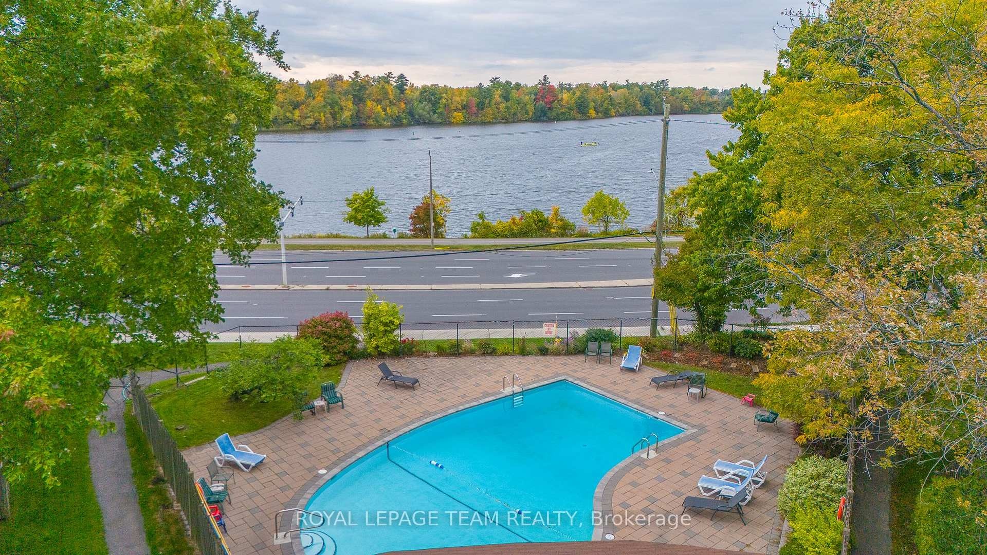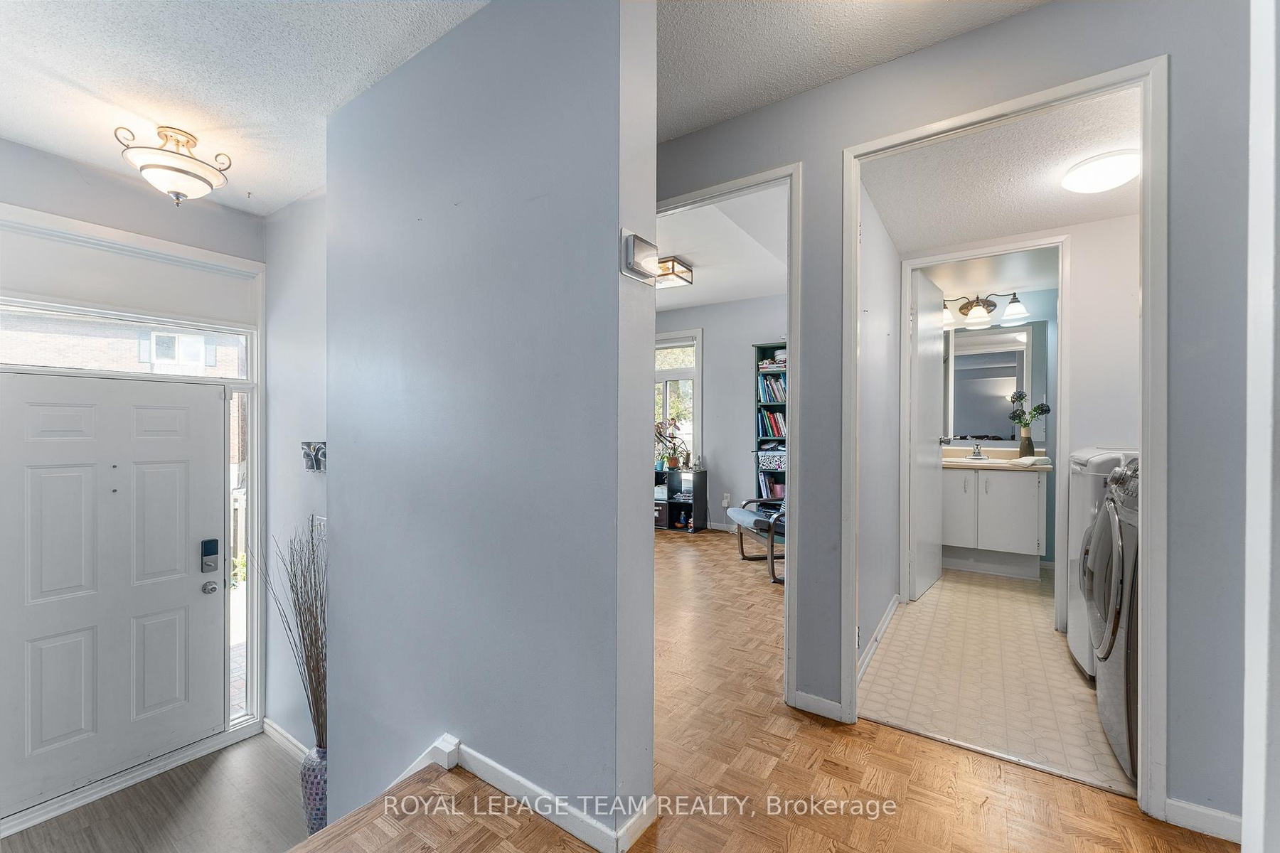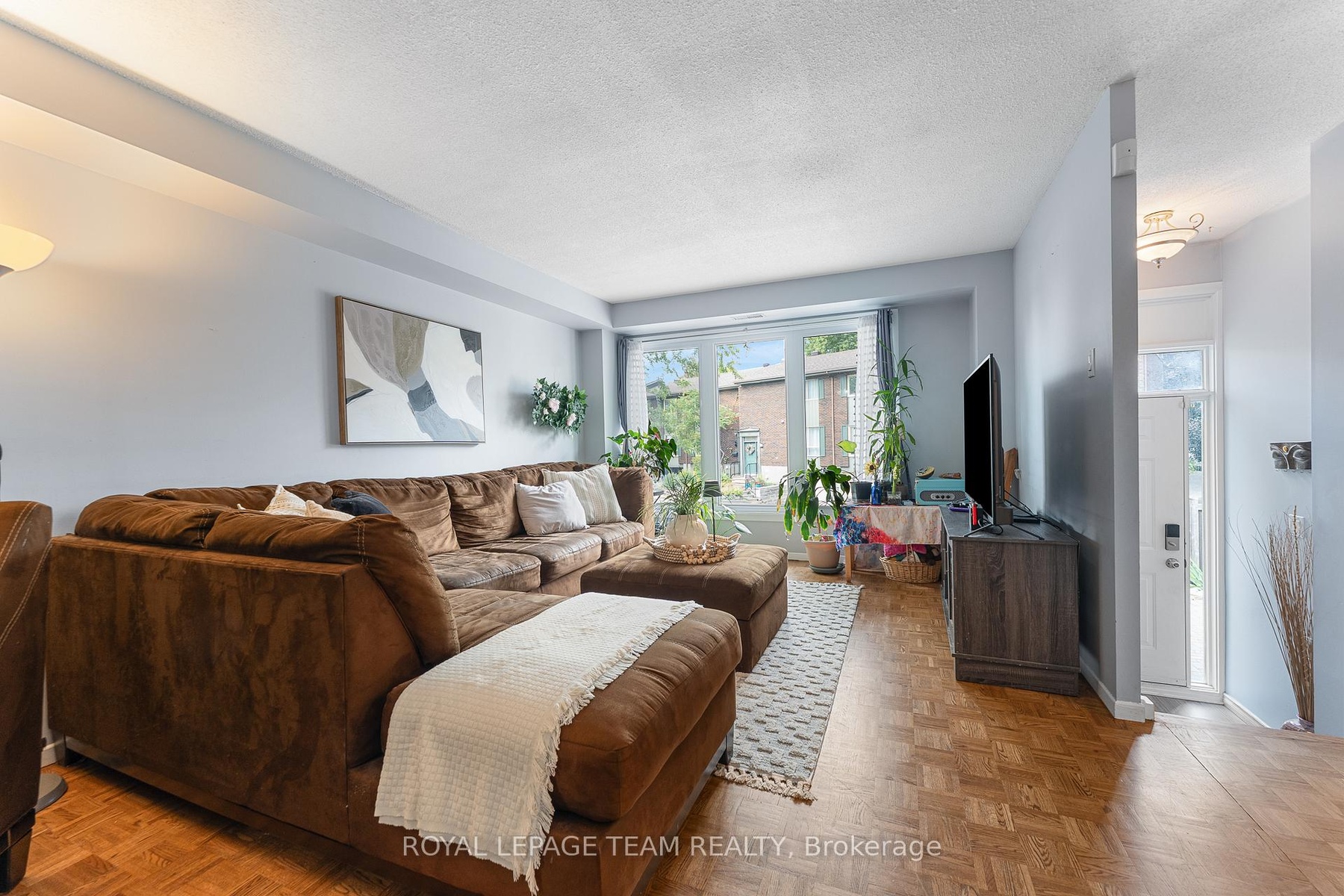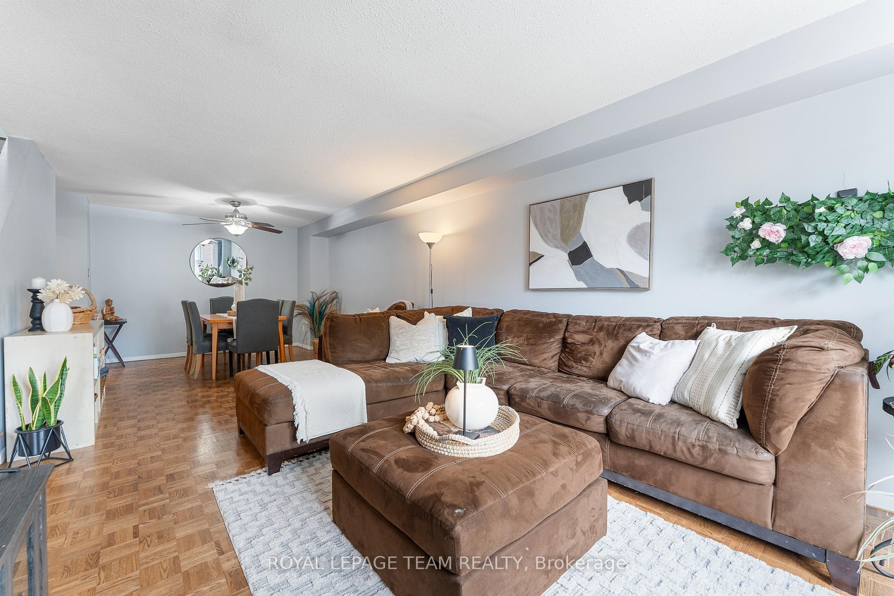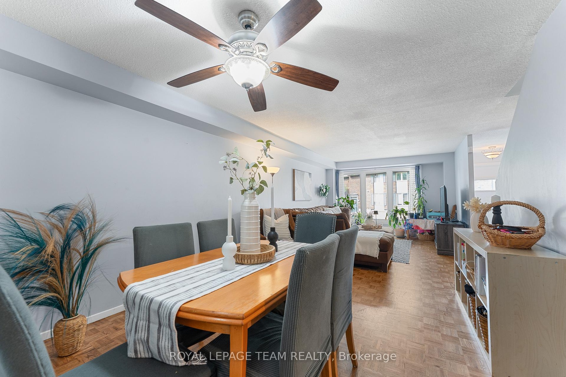 Tucked away on a quiet cul-de-sac, this end-unit condo townhome offers beautiful views of Mooneys Bay and breathtaking sunsets. The main floor features a bright open-concept living and dining area with oversized windows, a spacious eat-in kitchen, convenient laundry, powder room, and a versatile bedroom or office.Upstairs, you'll find two large bedrooms and a 4-piece bath, while the lower level provides a generous recreation room perfect for family living. A private front patio creates an ideal space for outdoor entertaining, and residents can enjoy a stunning outdoor pool overlooking the Rideau River.With direct access to Mooneys Bay Park, the beach, and nearby bike trails, plus close proximity to Carleton University, the LRT and downtown, this home combines comfort, location, and lifestyle all at an exceptional value. Ample Visitor Parking. Roof (2023) Furnace(2020) Windows (replaced before 2015)