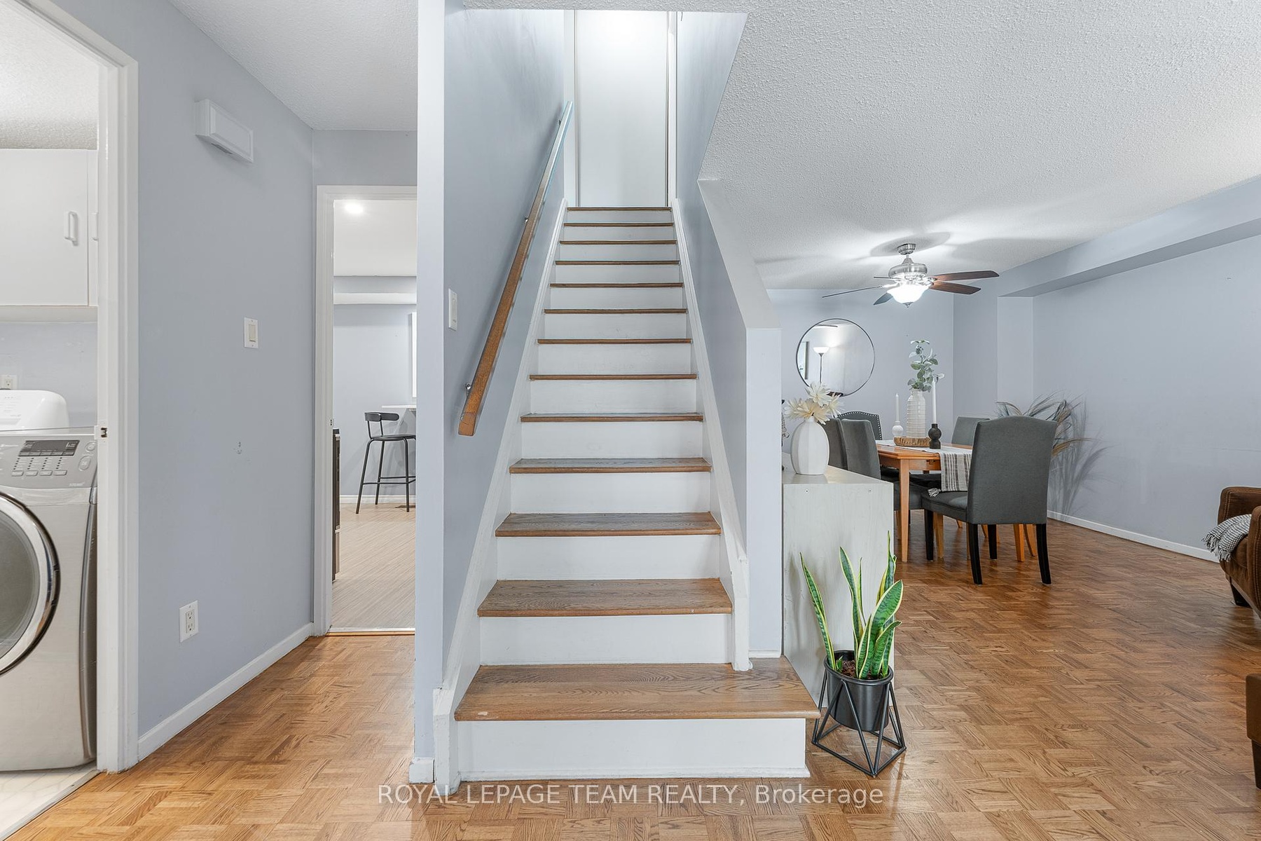DescriptionTucked away on a quiet cul-de-sac, this end-unit condo townhome offers beautiful views of Mooneys Bay and breathtaking sunsets. The main floor features a bright open-concept living and dining area with oversized windows, a spacious eat-in kitchen, convenient laundry, powder room, and a versatile bedroom or office.Upstairs, you'll find two large bedrooms and a 4-piece bath, while the lower level provides a generous recreation room perfect for family living. A private front patio creates an ideal space for outdoor entertaining, and residents can enjoy a stunning outdoor pool overlooking the Rideau River.With direct access to Mooneys Bay Park, the beach, and nearby bike trails, plus close proximity to Carleton University, the LRT and downtown, this home combines comfort, location, and lifestyle all at an exceptional value. Ample Visitor Parking. Roof (2023) Furnace(2020) Windows (replaced before 2015)Amenities- Auto Garage Door Remote