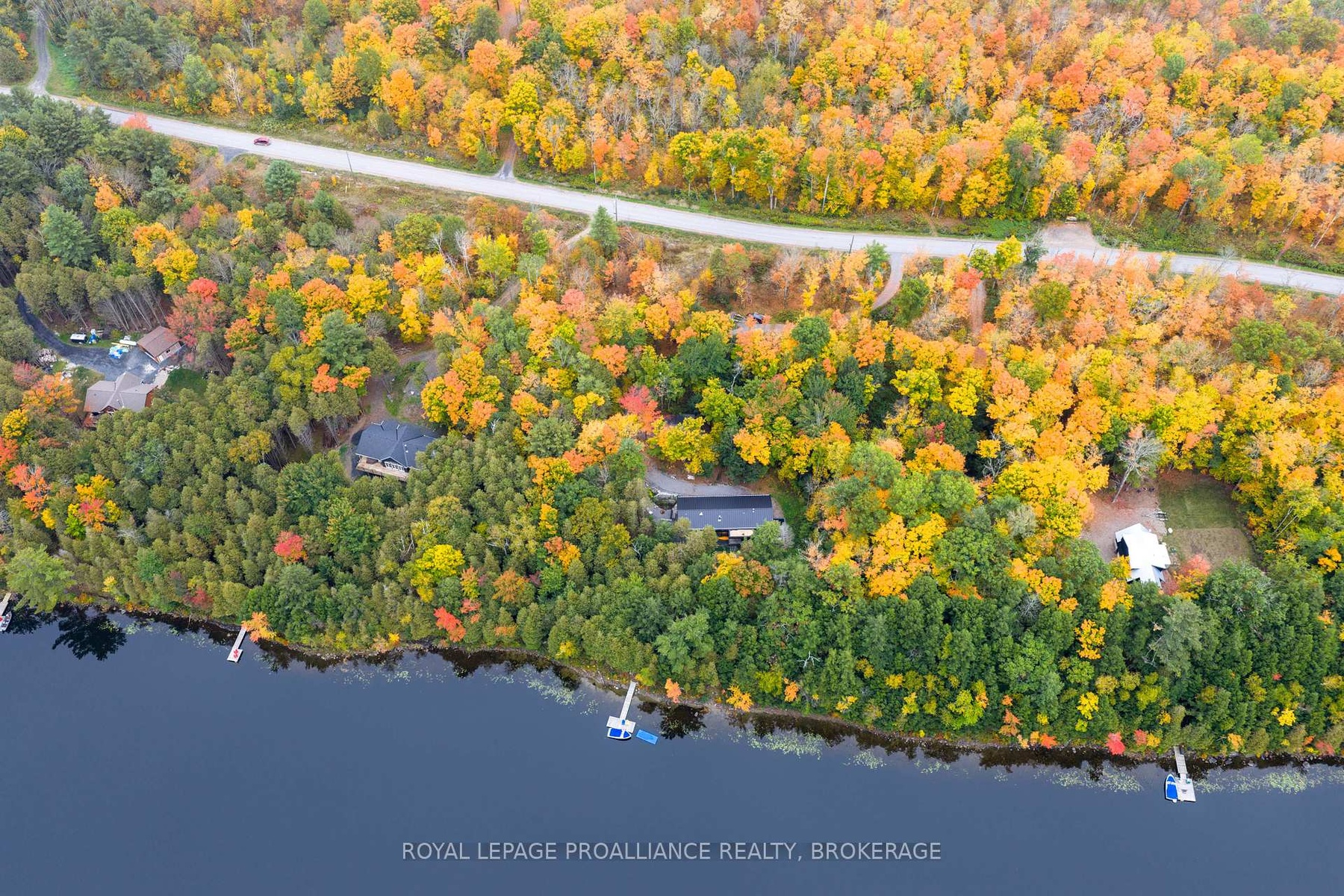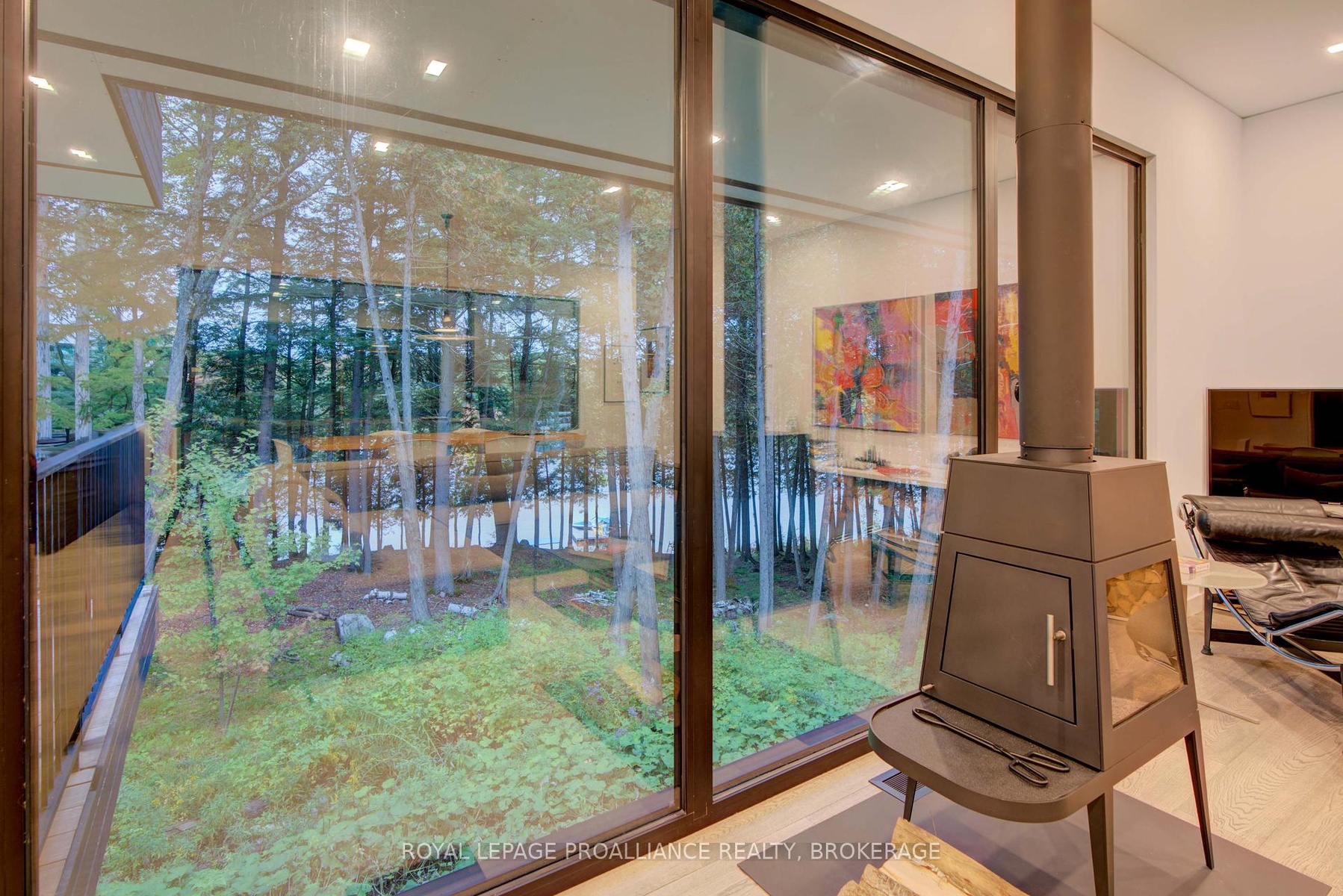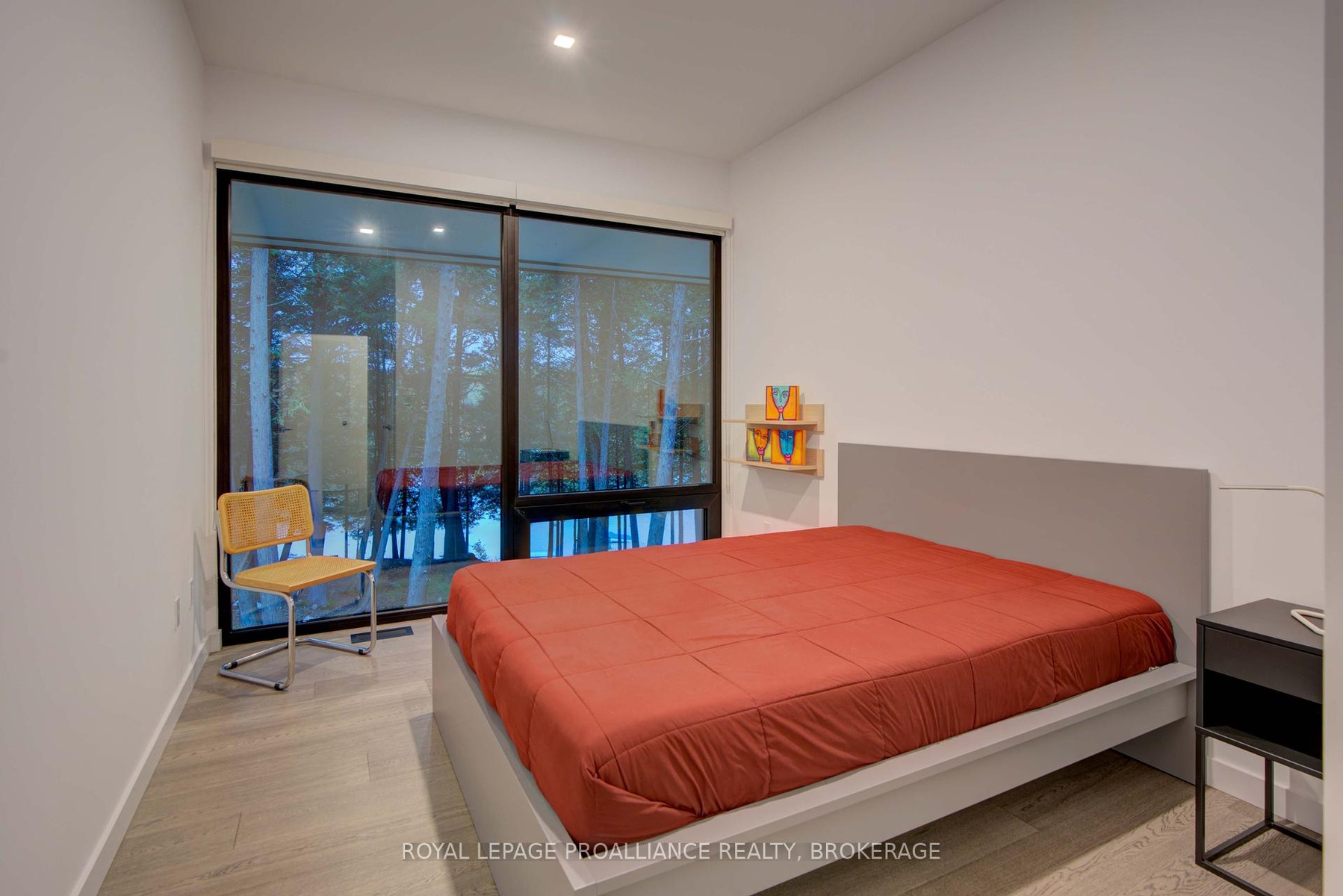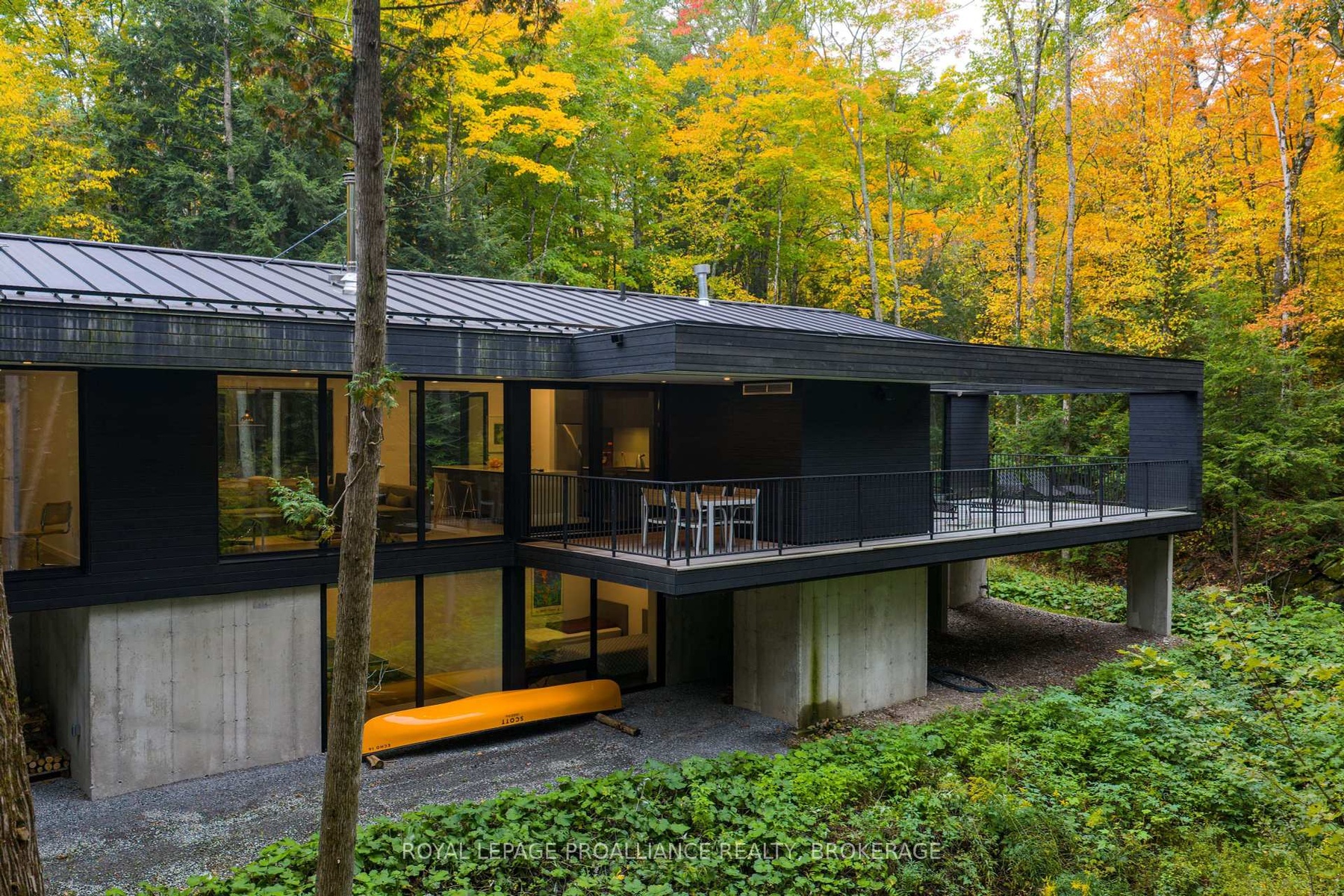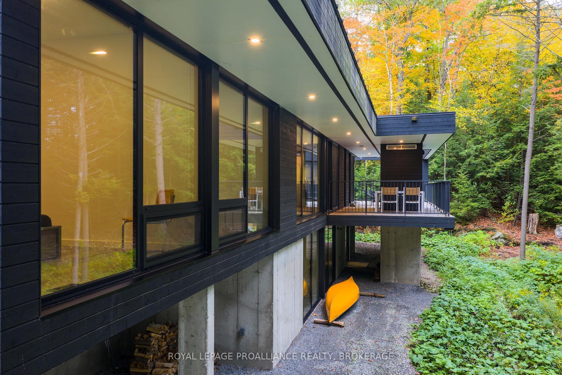 Stunning year-round home in a private and densely wooded setting located on Kennebec Lake. This modern and exceptional home sits on 2.8 acres of dramatic topography with trees, rocks and a gentle slope down to the waterfront with north-westerly views. The shoreline has a gradual entry into the water with a sandy bottom and is deep at the end of the dock for great swimming. The home was built in 2021 and attention to detail is seen throughout the house and outbuildings. Built on the lakeside of a rock ledge, the home has a partially exposed lower level with a level walkout. The main floor features a central common space containing the entry foyer, living room, kitchen and dining areas with the three bedrooms on this level located on either end of this space. The woodstove in the living room provides a warm and inviting atmosphere. There is a large deck that overlooks the lake with an amazing, covered barbecue station in the centre. The lower level features a spacious recreation room, bedroom, bathroom and utility area and a door leads to the lakeside yard. The house is clad in ship-lap western red cedar siding and has been designed with superior energy performance criteria with exceptionally high R-values for the standing seam roof, wall, and slab assemblies and airtightness considerations with the windows and doors Alumilex high-performance triple-glazed aluminum with argon filled IGU units with Dbl- low-E coatings. The 2-car detached garage sits up on the hill behind the house as well as a one-bedroom bunkie for extra guests. No expense has been spared with the design and build of this home. Kennebec Lake is a deep, clean lake located in Central Frontenac Township with easy access from Hwy 7. Fish species in the lake include walleye, pike and bass as well as various pan fish. Located approximately 3 hours from Toronto or 1.5 hours from Ottawa.