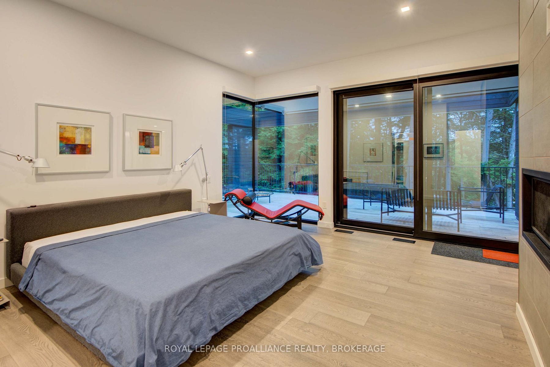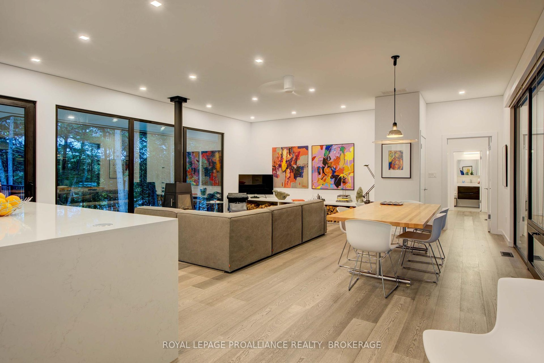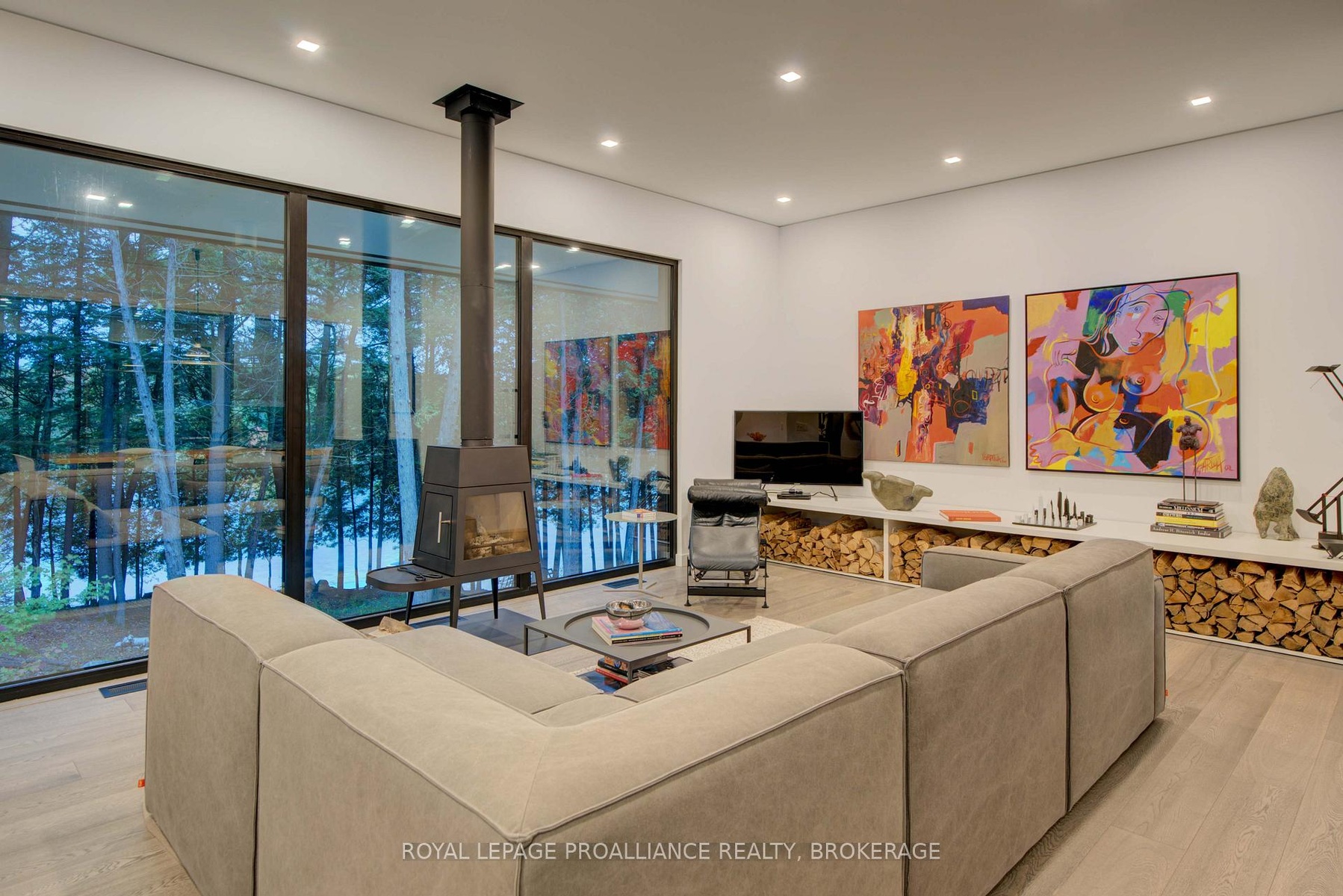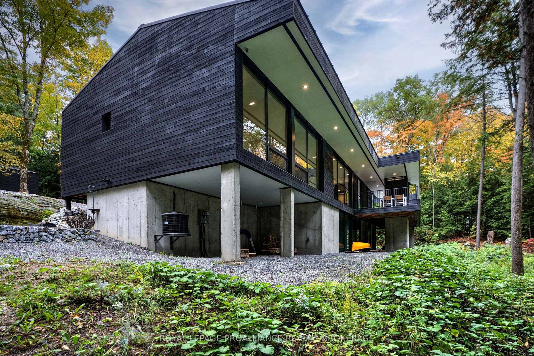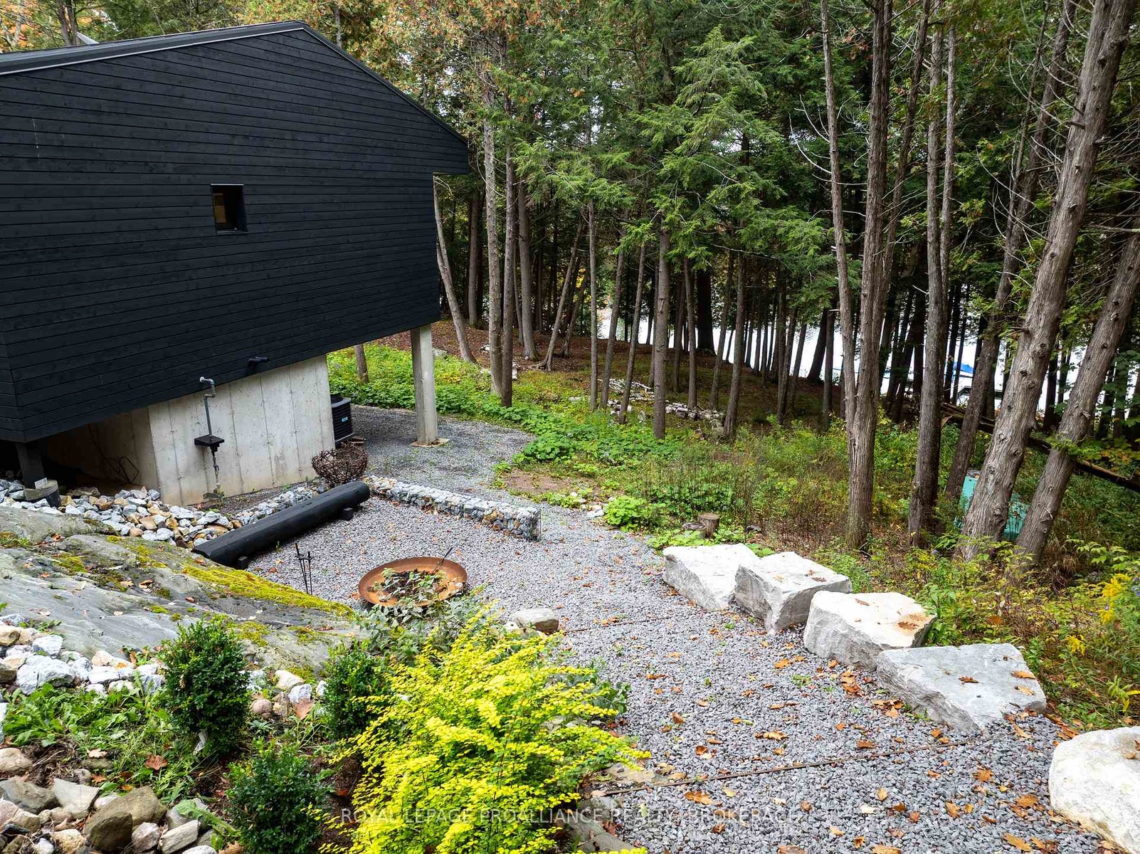Stunning year-round home in a private and densely wooded setting located on Kennebec Lake. This modern and exceptional home sits on 2.8 acres of dramatic topography with trees, rocks and a gentle slope down to the waterfront with north-westerly views. The shoreline has a gradual entry into the water with a sandy bottom and is deep at the end of the dock for great swimming. The home was built in 2021 and attention to detail is seen throughout the house and outbuildings. Built on the lakeside of a rock ledge, the home has a partially exposed lower level with a level walkout. The main floor features a central common space containing the entry foyer, living room, kitchen and dining areas with the three bedrooms on this level located on either end of this space. The woodstove in the living room provides a warm and inviting atmosphere. There is a large deck that overlooks the lake with an amazing, covered barbecue station in the centre. The lower level features a spacious recreation room, bedroom, bathroom and utility area and a door leads to the lakeside yard. The house is clad in ship-lap western red cedar siding and has been designed with superior energy performance criteria with exceptionally high R-values for the standing seam roof, wall, and slab assemblies and airtightness considerations with the windows and doors Alumilex high-performance triple-glazed aluminum with argon filled IGU units with Dbl- low-E coatings. The 2-car detached garage sits up on the hill behind the house as well as a one-bedroom bunkie for extra guests. No expense has been spared with the design and build of this home. Kennebec Lake is a deep, clean lake located in Central Frontenac Township with easy access from Hwy 7. Fish species in the lake include walleye, pike and bass as well as various pan fish. Located approximately 3 hours from Toronto or 1.5 hours from Ottawa.