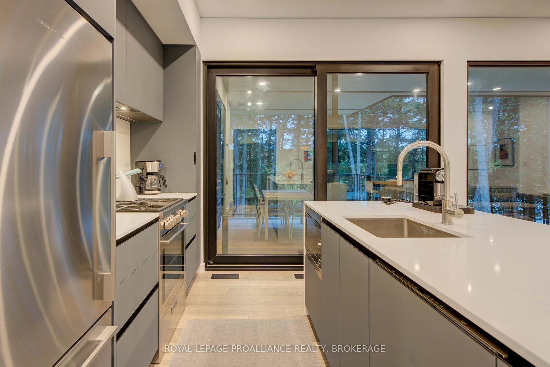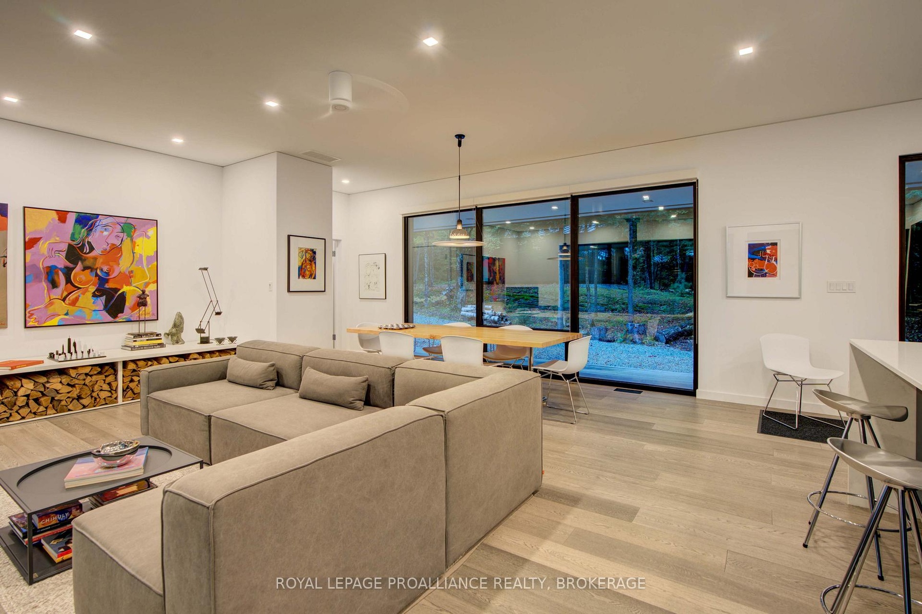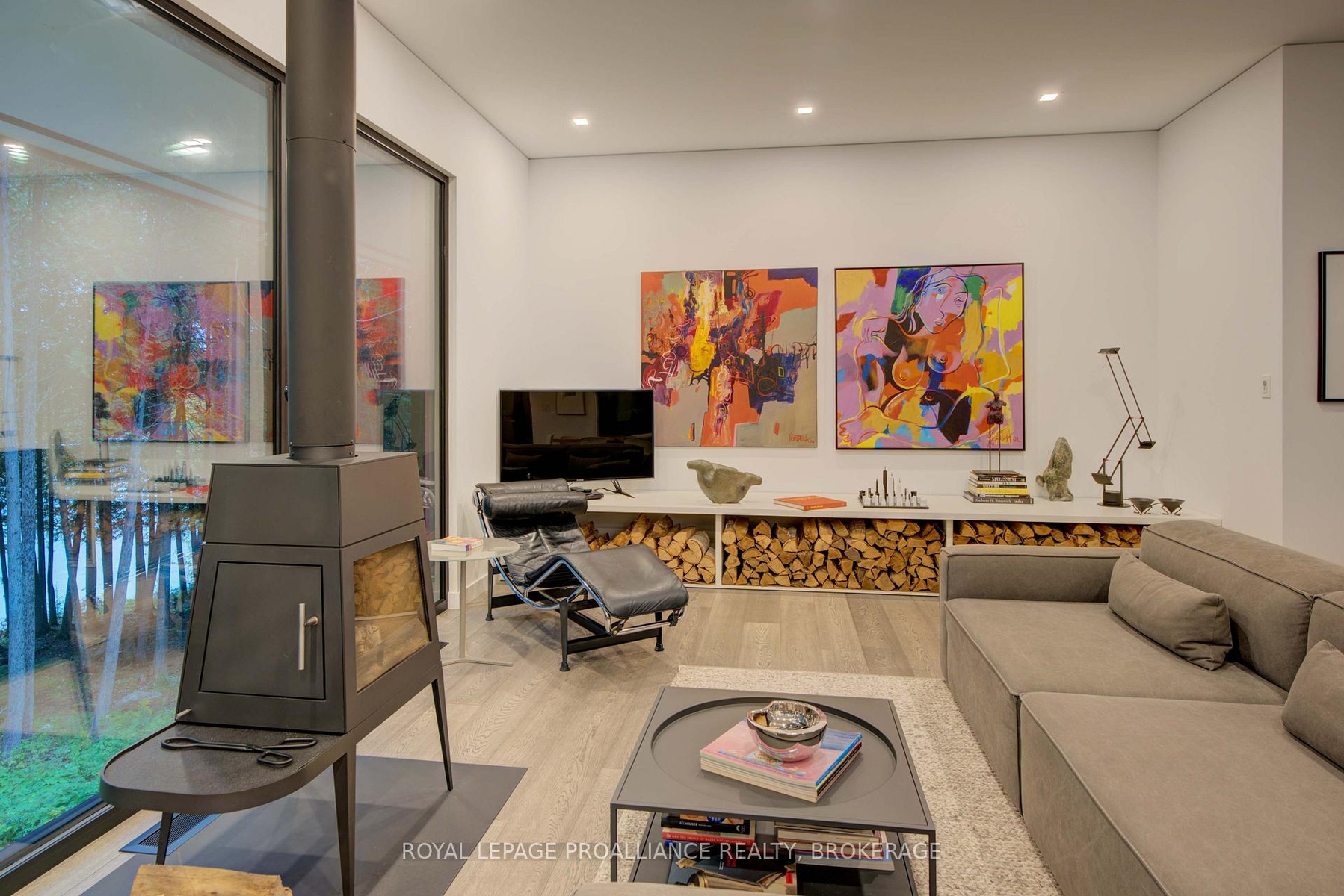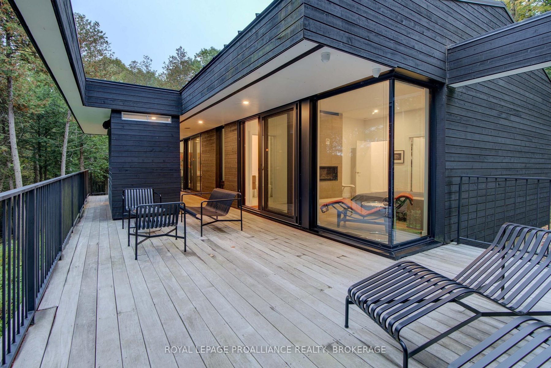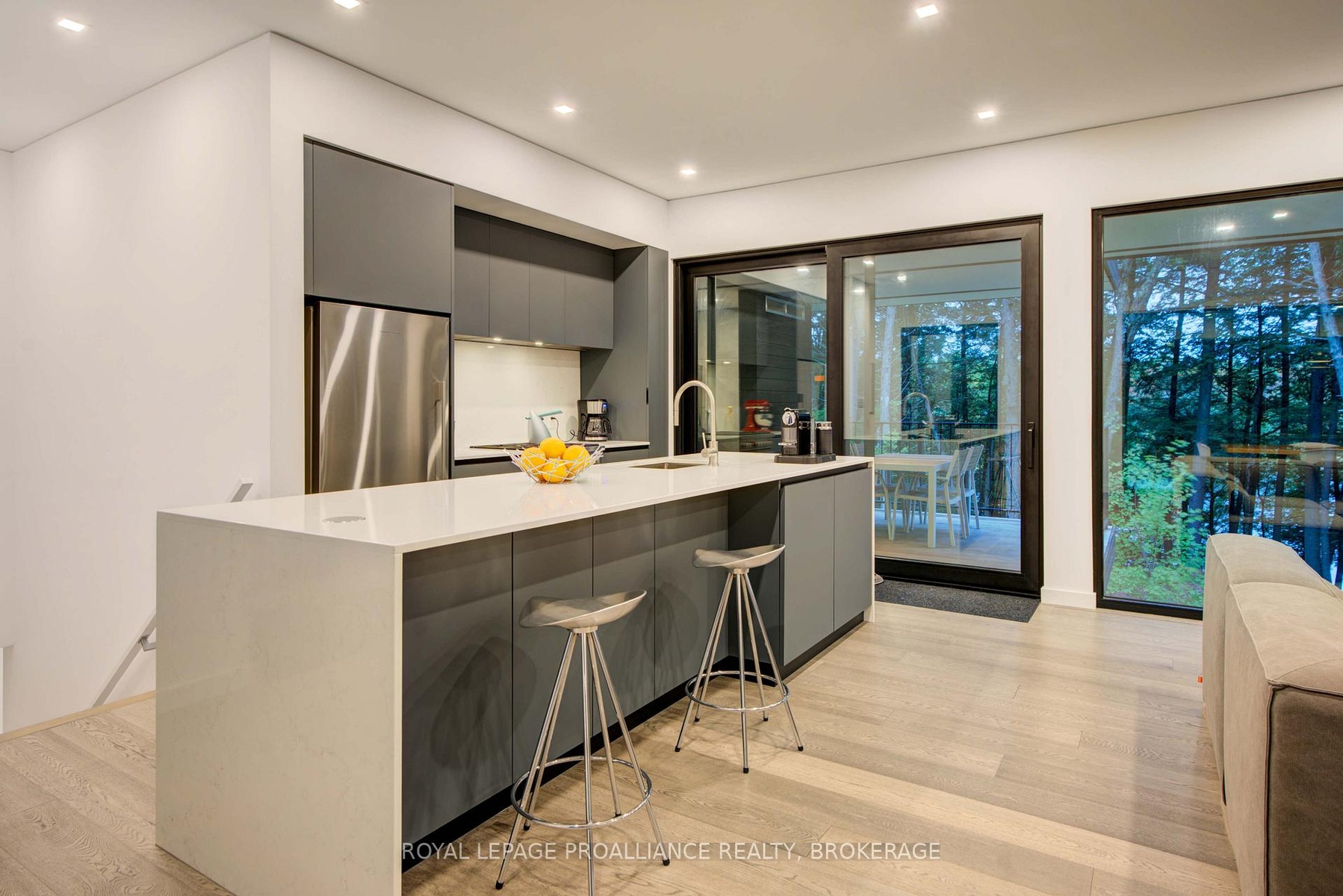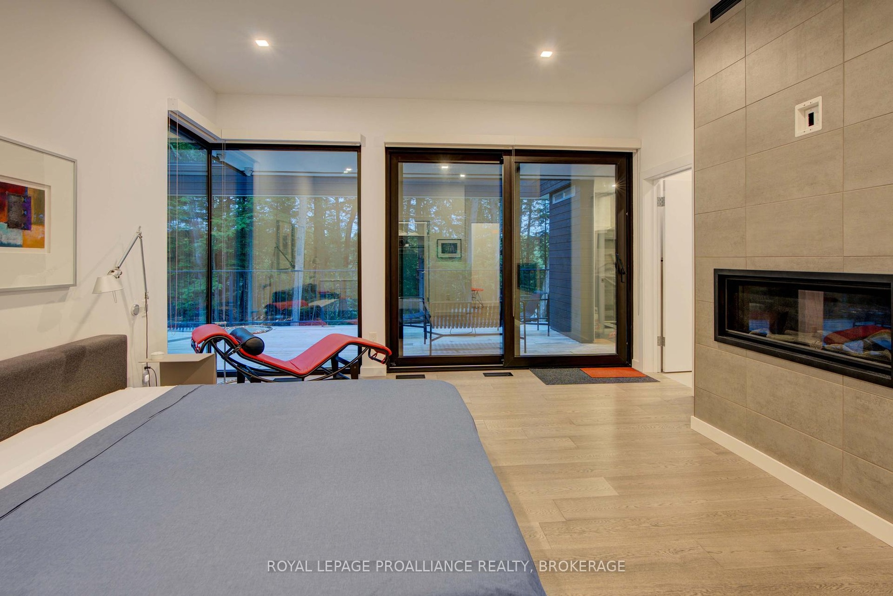 Stunning year-round home in a private and densely wooded setting located on Kennebec Lake. This modern and exceptional home sits on 2.8 acres of dramatic topography with trees, rocks and a gentle slope down to the waterfront with north-westerly views. The shoreline has a gradual entry into the water with a sandy bottom and is deep at the end of the dock for great swimming. The home was built in 2021 and attention to detail is seen throughout the house and outbuildings. Built on the lakeside of a rock ledge, the home has a partially exposed lower level with a level walkout. The main floor features a central common space containing the entry foyer, living room, kitchen and dining areas with the three bedrooms on this level located on either end of this space. The woodstove in the living room provides a warm and inviting atmosphere. There is a large deck that overlooks the lake with an amazing, covered barbecue station in the centre. The lower level features a spacious recreation room, bedroom, bathroom and utility area and a door leads to the lakeside yard. The house is clad in ship-lap western red cedar siding and has been designed with superior energy performance criteria with exceptionally high R-values for the standing seam roof, wall, and slab assemblies and airtightness considerations with the windows and doors Alumilex high-performance triple-glazed aluminum with argon filled IGU units with Dbl- low-E coatings. The 2-car detached garage sits up on the hill behind the house as well as a one-bedroom bunkie for extra guests. No expense has been spared with the design and build of this home. Kennebec Lake is a deep, clean lake located in Central Frontenac Township with easy access from Hwy 7. Fish species in the lake include walleye, pike and bass as well as various pan fish. Located approximately 3 hours from Toronto or 1.5 hours from Ottawa.