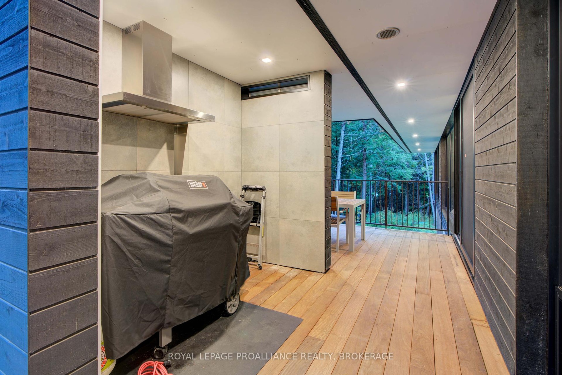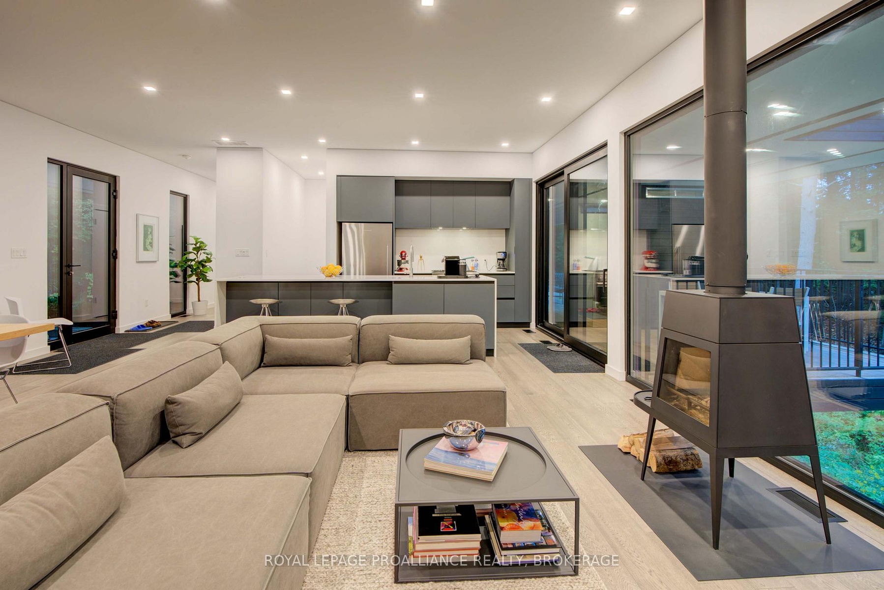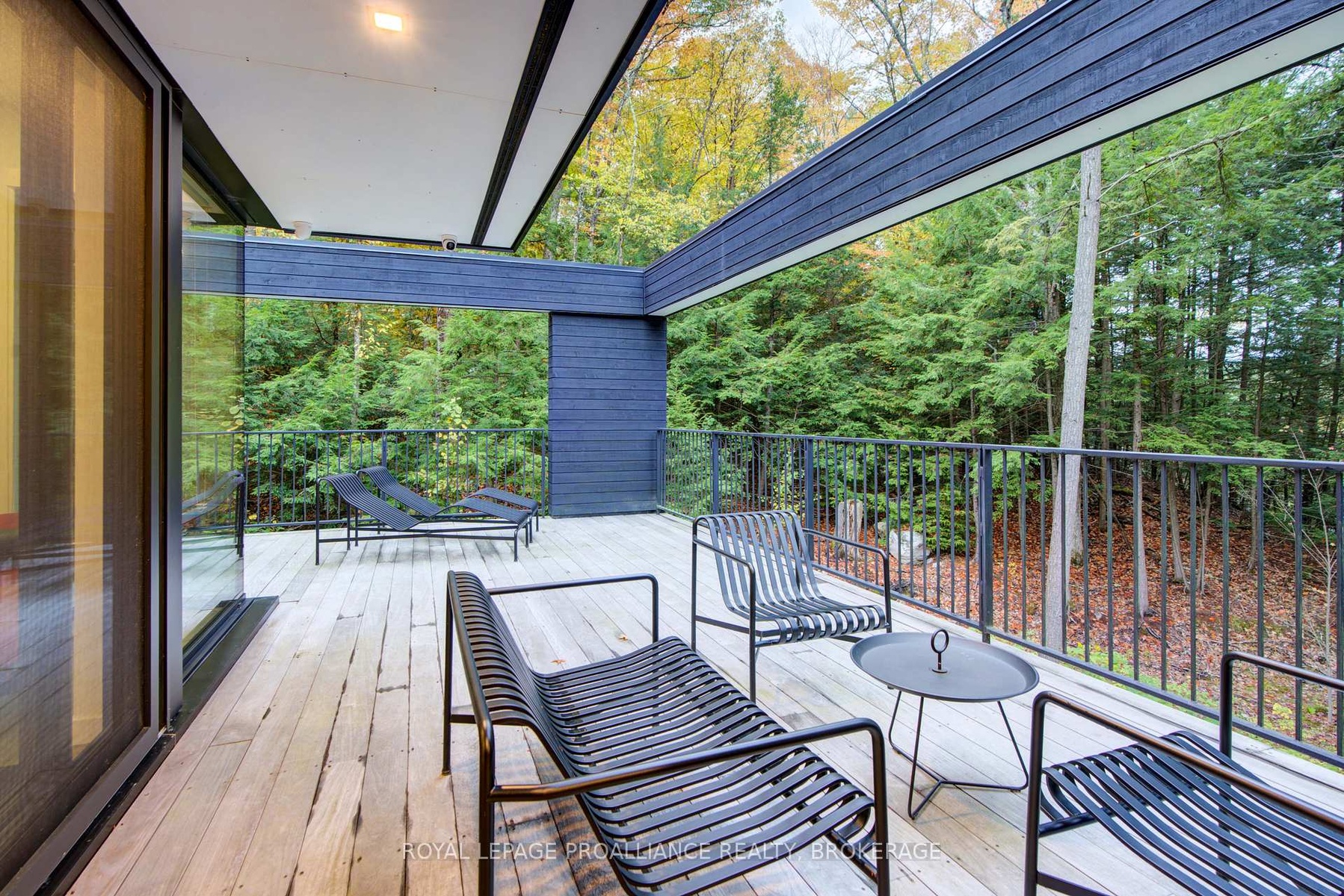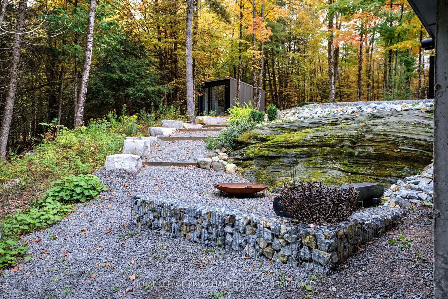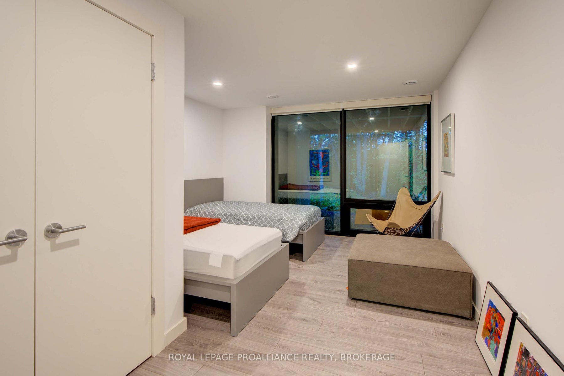 Stunning year-round home in a private and densely wooded setting located on Kennebec Lake. This modern and exceptional home sits on 2.8 acres of dramatic topography with trees, rocks and a gentle slope down to the waterfront with north-westerly views. The shoreline has a gradual entry into the water with a sandy bottom and is deep at the end of the dock for great swimming. The home was built in 2021 and attention to detail is seen throughout the house and outbuildings. Built on the lakeside of a rock ledge, the home has a partially exposed lower level with a level walkout. The main floor features a central common space containing the entry foyer, living room, kitchen and dining areas with the three bedrooms on this level located on either end of this space. The woodstove in the living room provides a warm and inviting atmosphere. There is a large deck that overlooks the lake with an amazing, covered barbecue station in the centre. The lower level features a spacious recreation room, bedroom, bathroom and utility area and a door leads to the lakeside yard. The house is clad in ship-lap western red cedar siding and has been designed with superior energy performance criteria with exceptionally high R-values for the standing seam roof, wall, and slab assemblies and airtightness considerations with the windows and doors Alumilex high-performance triple-glazed aluminum with argon filled IGU units with Dbl- low-E coatings. The 2-car detached garage sits up on the hill behind the house as well as a one-bedroom bunkie for extra guests. No expense has been spared with the design and build of this home. Kennebec Lake is a deep, clean lake located in Central Frontenac Township with easy access from Hwy 7. Fish species in the lake include walleye, pike and bass as well as various pan fish. Located approximately 3 hours from Toronto or 1.5 hours from Ottawa.