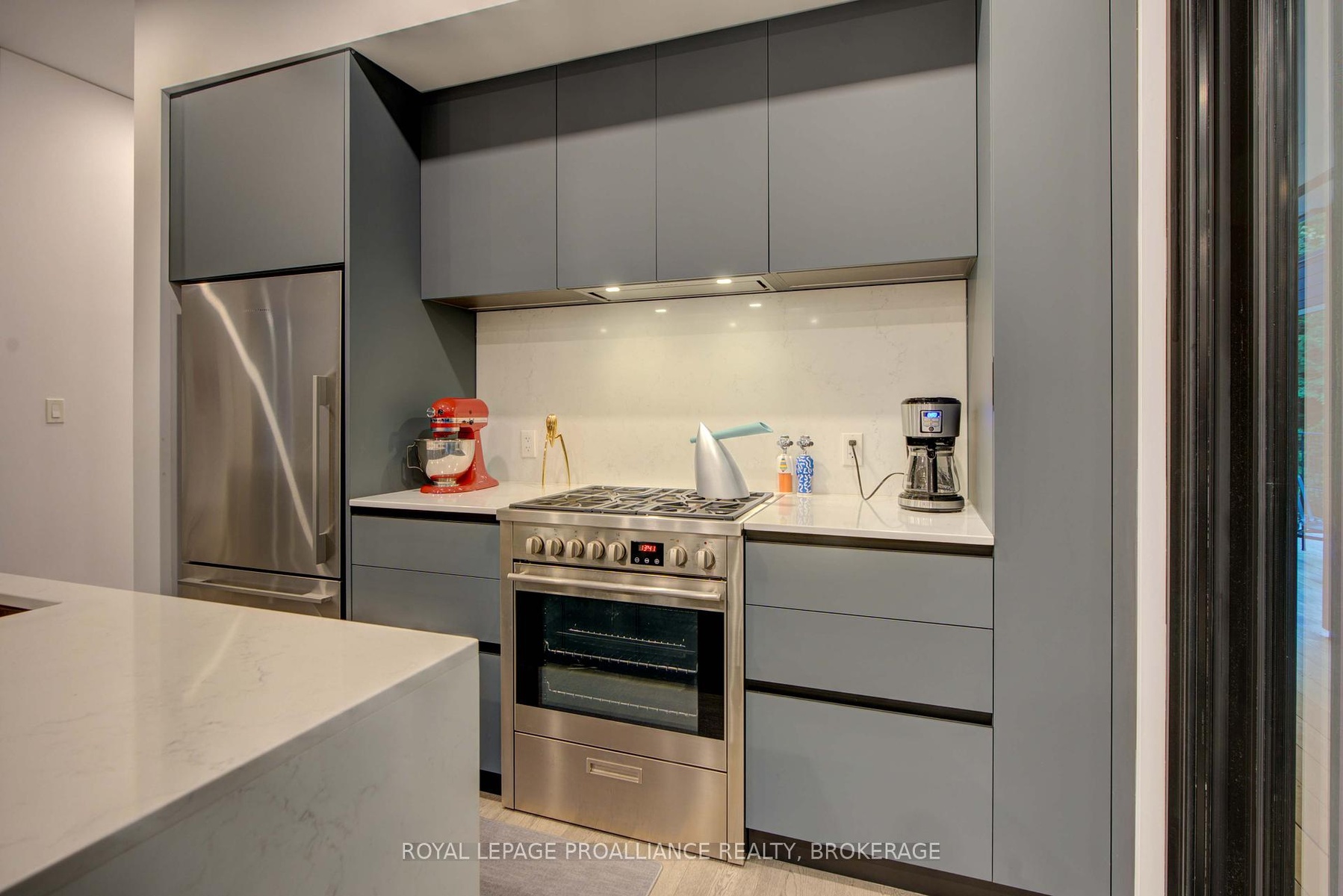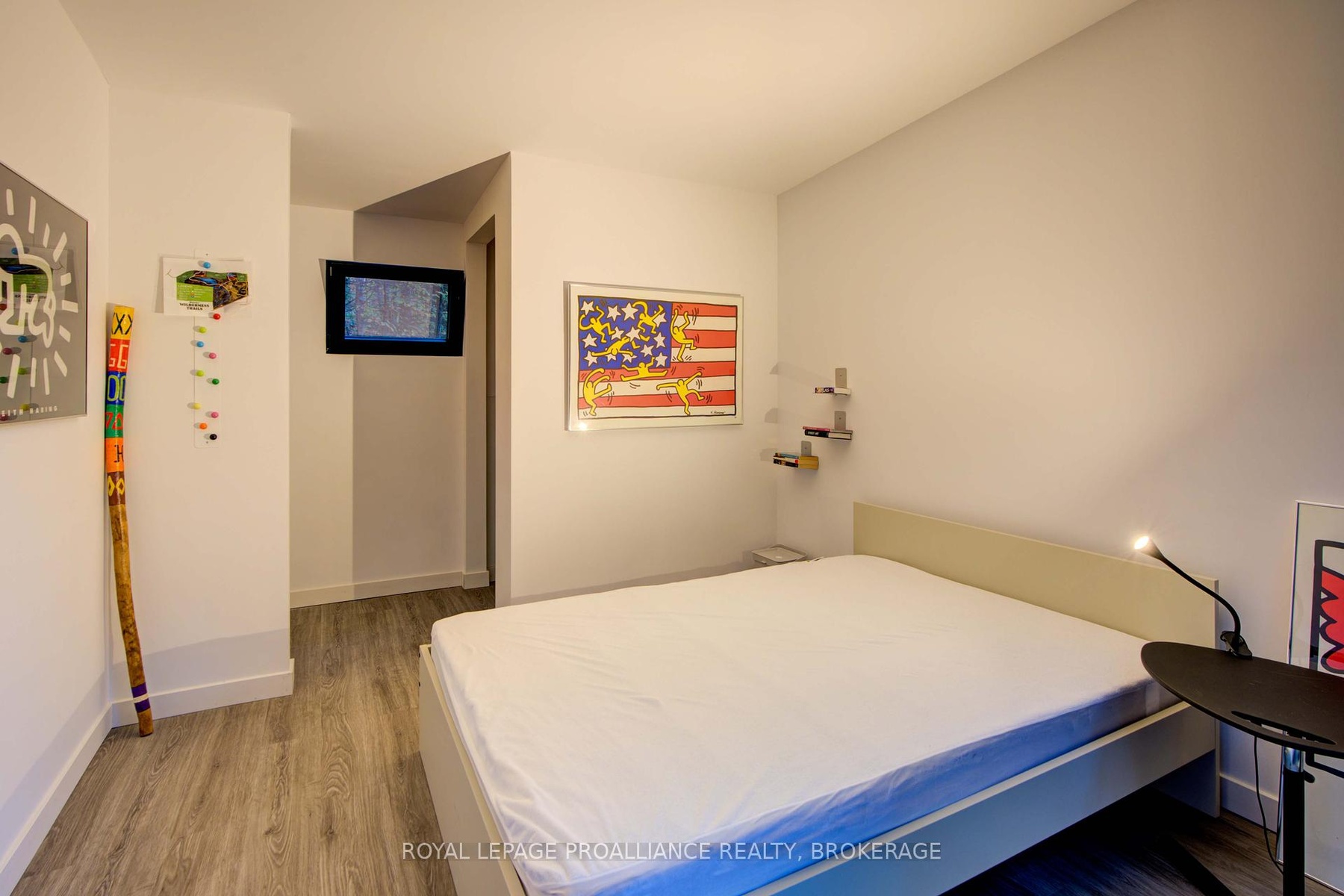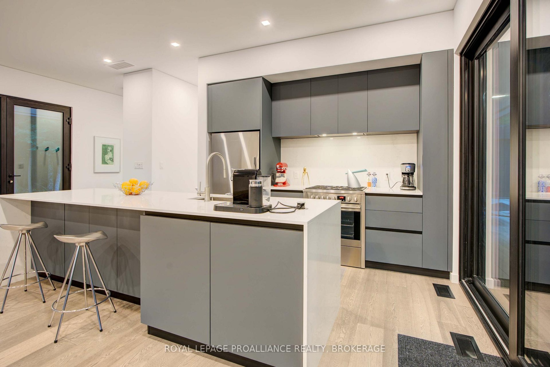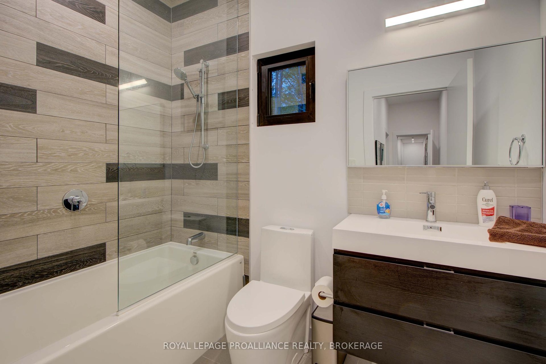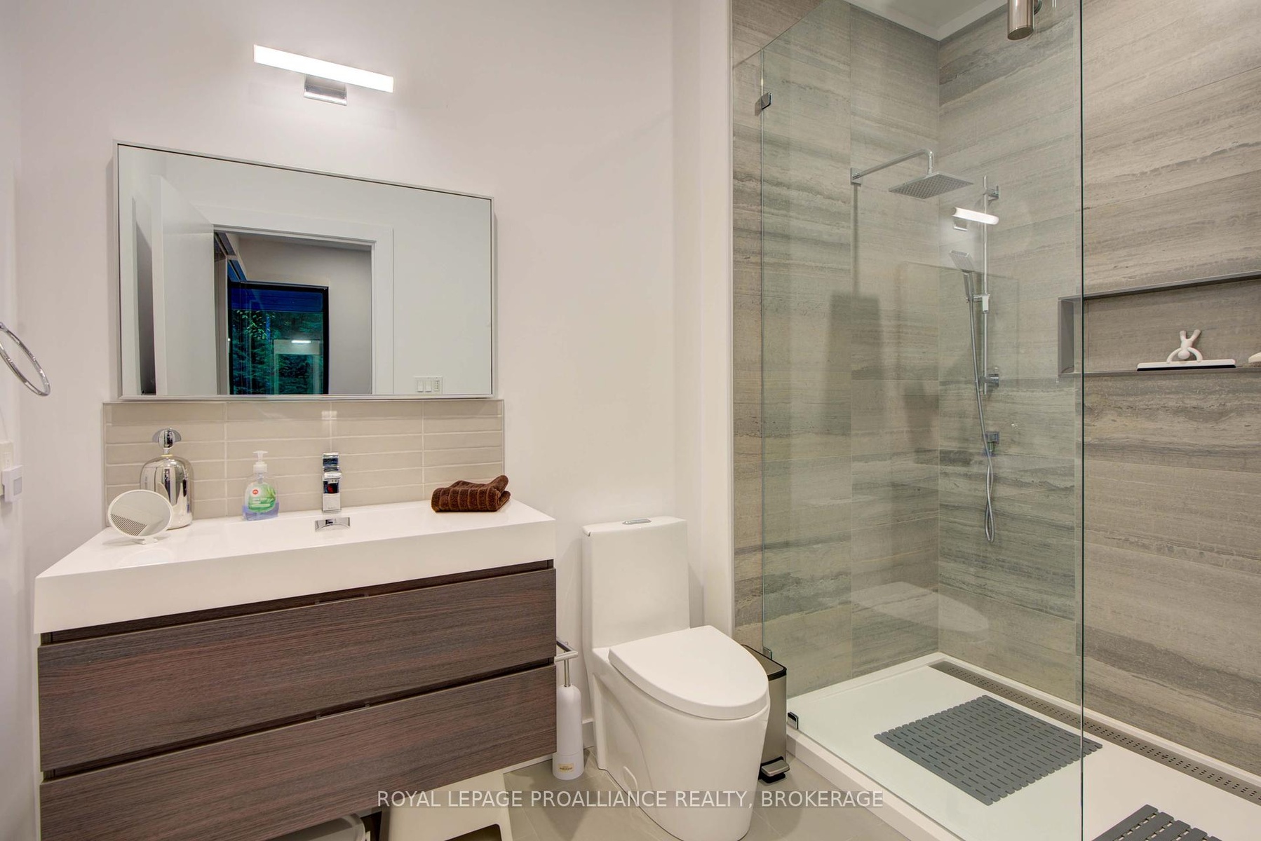 Stunning year-round home in a private and densely wooded setting located on Kennebec Lake. This modern and exceptional home sits on 2.8 acres of dramatic topography with trees, rocks and a gentle slope down to the waterfront with north-westerly views. The shoreline has a gradual entry into the water with a sandy bottom and is deep at the end of the dock for great swimming. The home was built in 2021 and attention to detail is seen throughout the house and outbuildings. Built on the lakeside of a rock ledge, the home has a partially exposed lower level with a level walkout. The main floor features a central common space containing the entry foyer, living room, kitchen and dining areas with the three bedrooms on this level located on either end of this space. The woodstove in the living room provides a warm and inviting atmosphere. There is a large deck that overlooks the lake with an amazing, covered barbecue station in the centre. The lower level features a spacious recreation room, bedroom, bathroom and utility area and a door leads to the lakeside yard. The house is clad in ship-lap western red cedar siding and has been designed with superior energy performance criteria with exceptionally high R-values for the standing seam roof, wall, and slab assemblies and airtightness considerations with the windows and doors Alumilex high-performance triple-glazed aluminum with argon filled IGU units with Dbl- low-E coatings. The 2-car detached garage sits up on the hill behind the house as well as a one-bedroom bunkie for extra guests. No expense has been spared with the design and build of this home. Kennebec Lake is a deep, clean lake located in Central Frontenac Township with easy access from Hwy 7. Fish species in the lake include walleye, pike and bass as well as various pan fish. Located approximately 3 hours from Toronto or 1.5 hours from Ottawa.